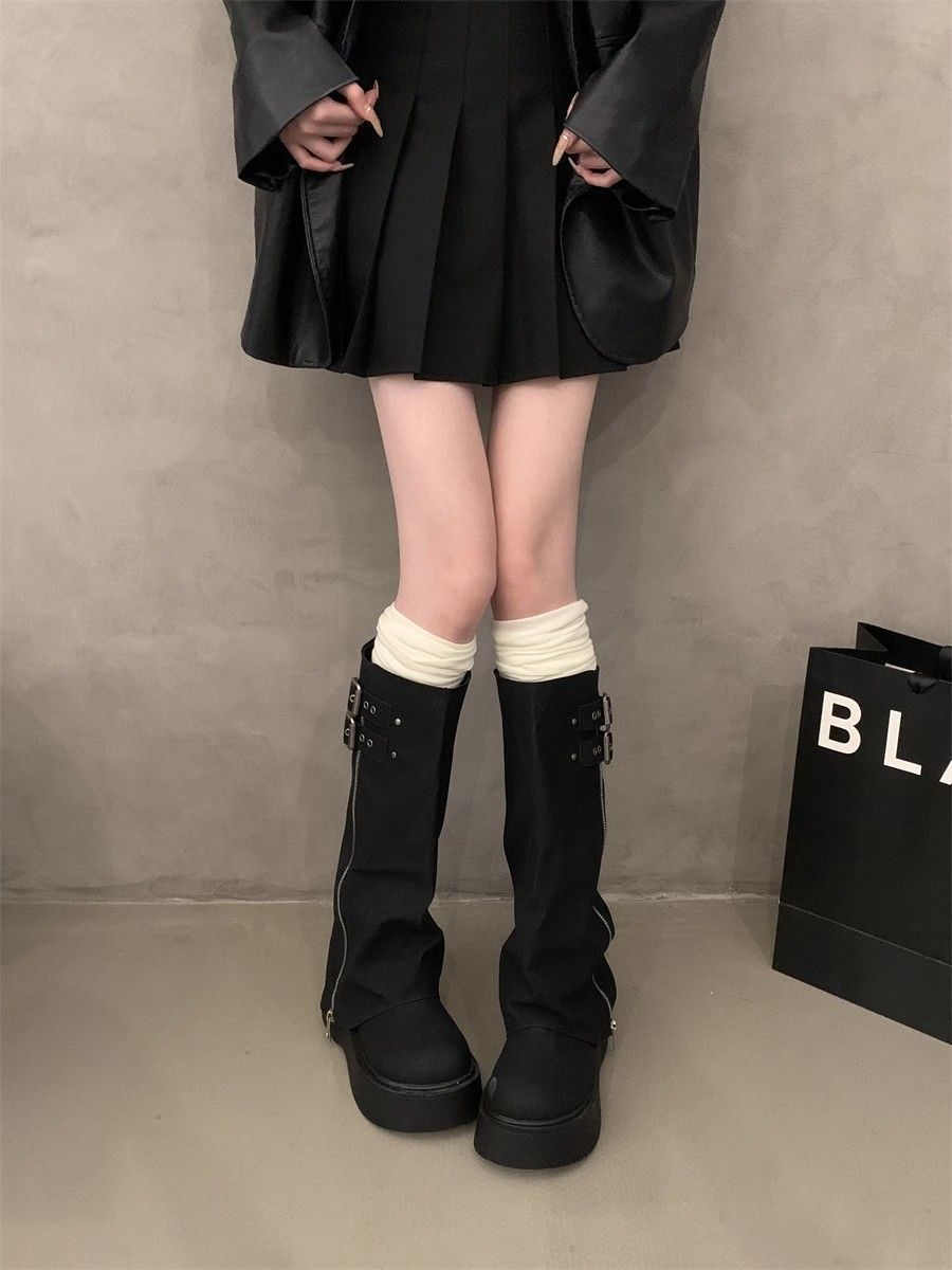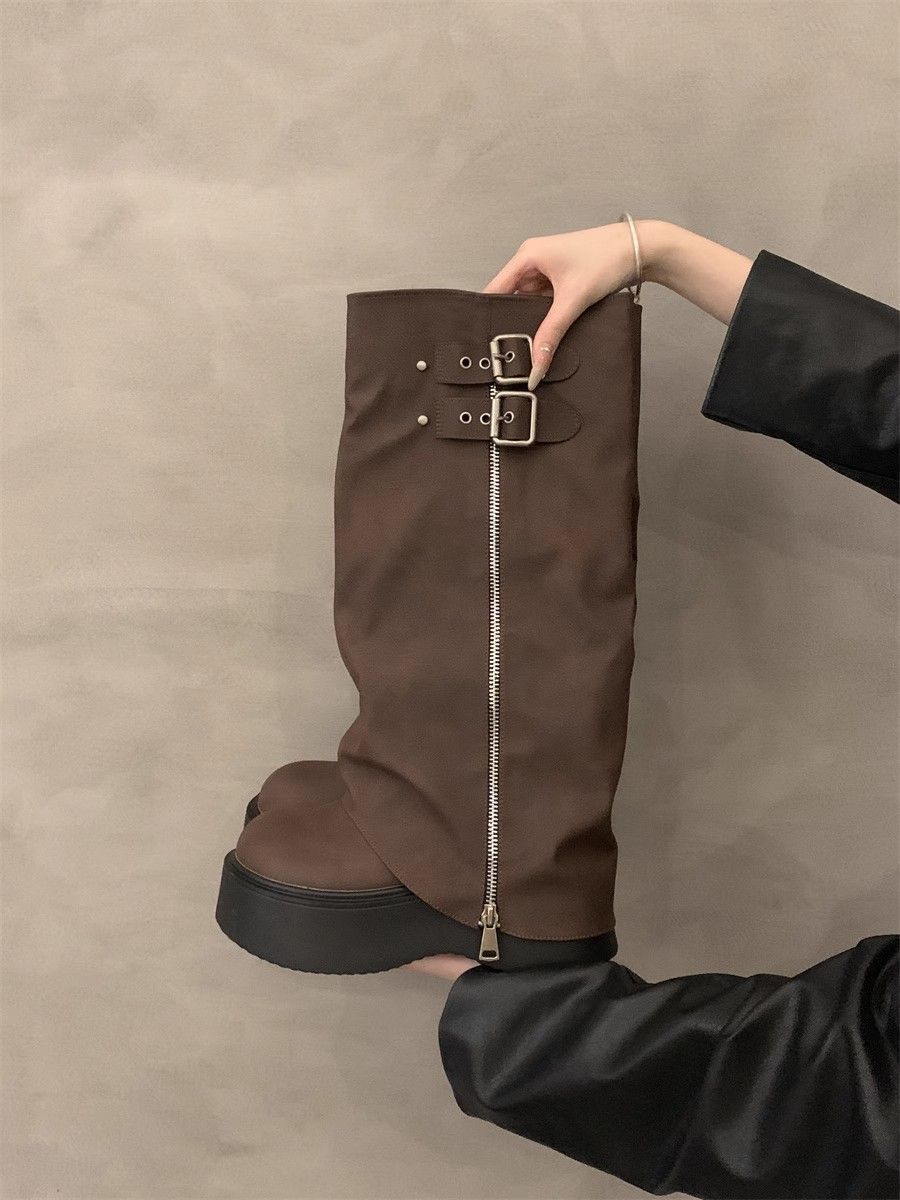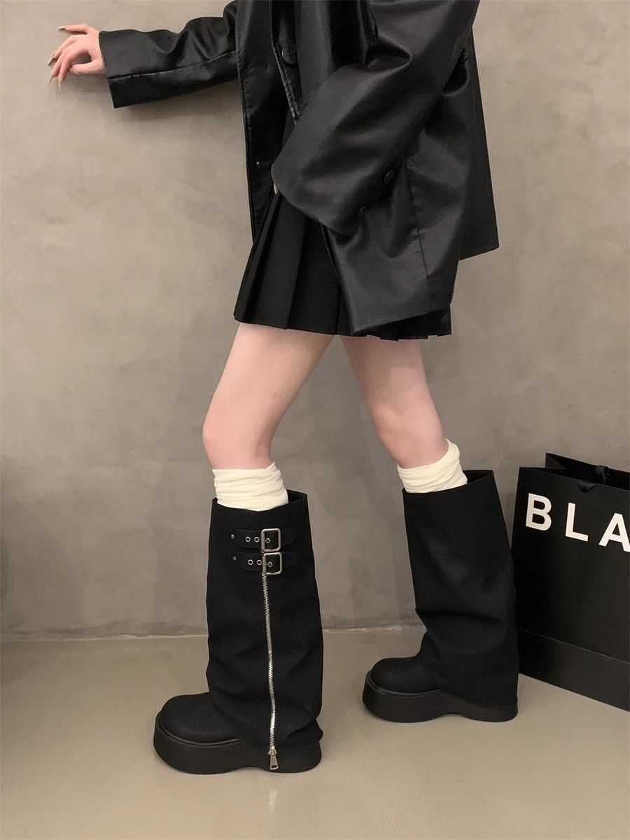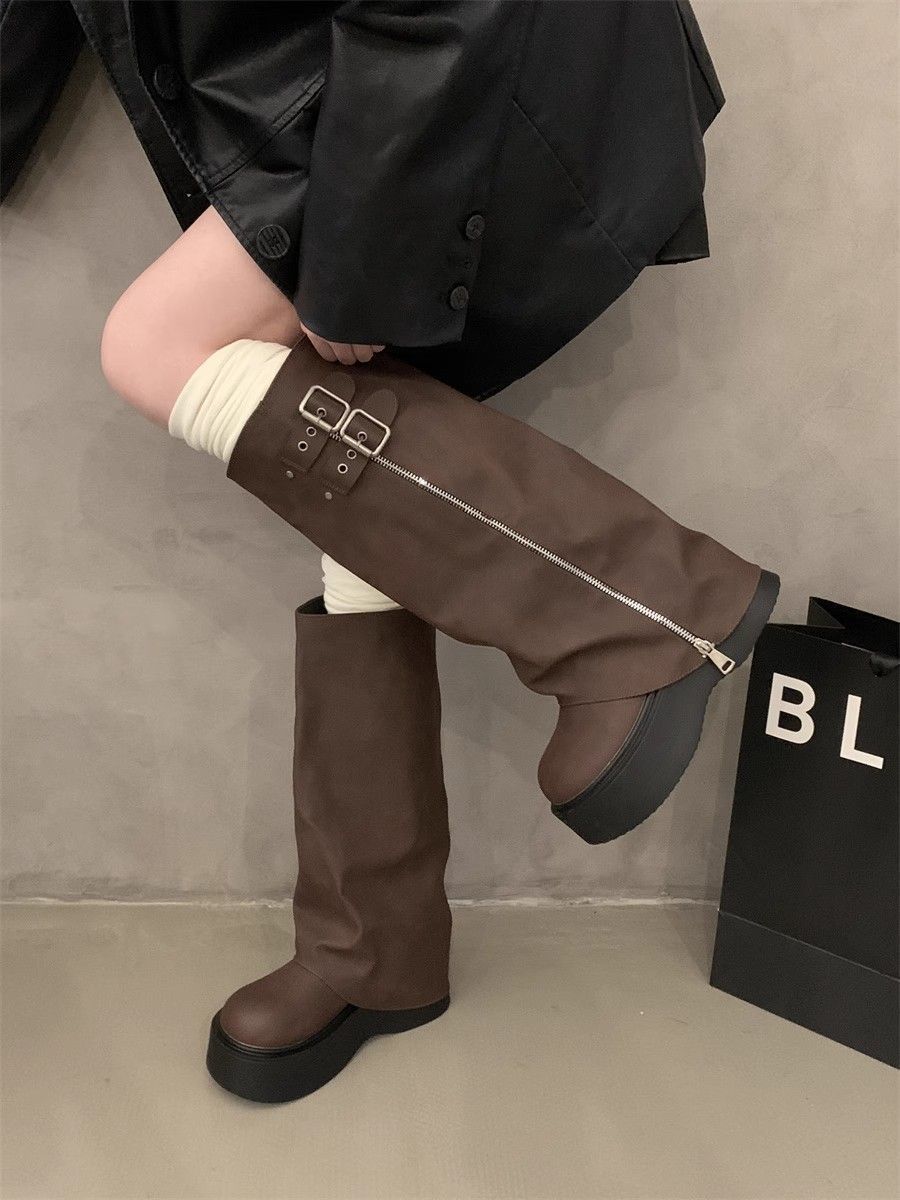 Otoño 2025 Nuevo Temperamento Versátil Botas de Pantalón de Suela Gruesa para Aumentar la Altura Chica Hot Americanas Punta Grande Hasta la Rodilla Mujer