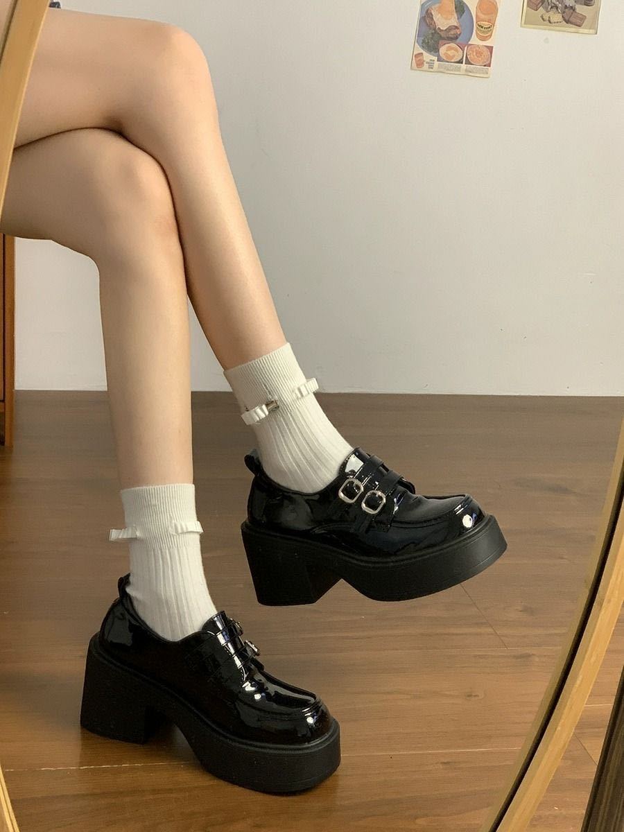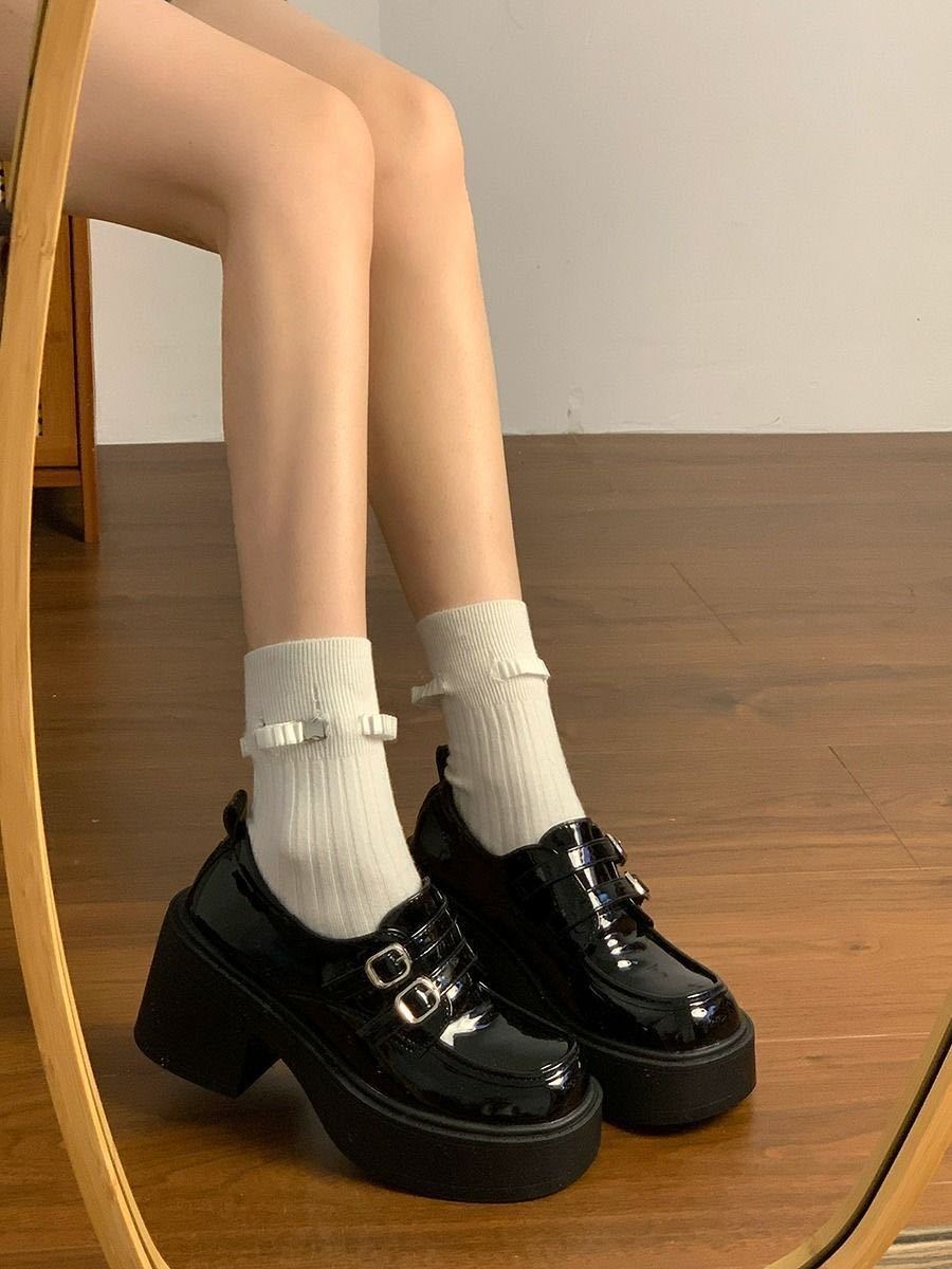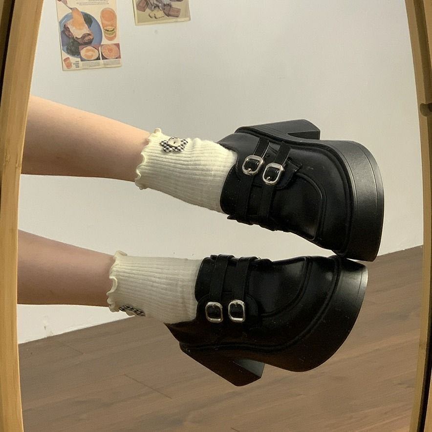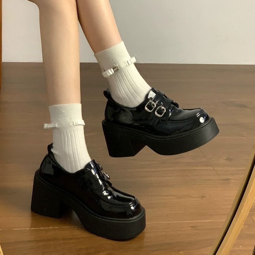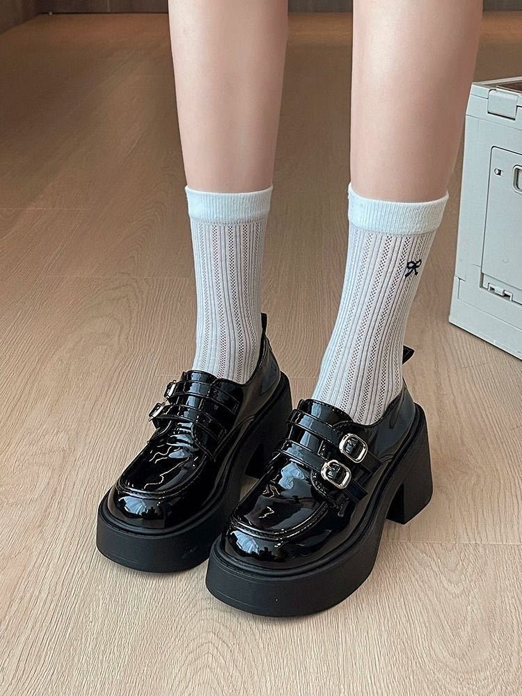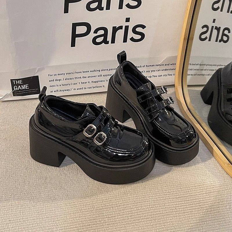 Hebilla de Cinturón Estilo Británico Ins Zapatos Pequeños de Cuero 2025 Primavera Nuevo Estilo Caliente Tacón Super Alto Suela Gruesa Estilo Caliente Mocasines