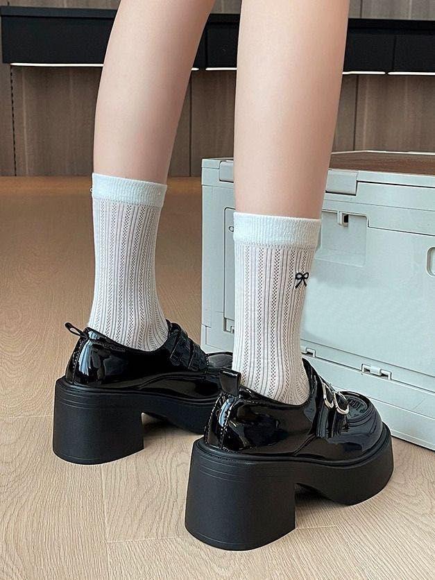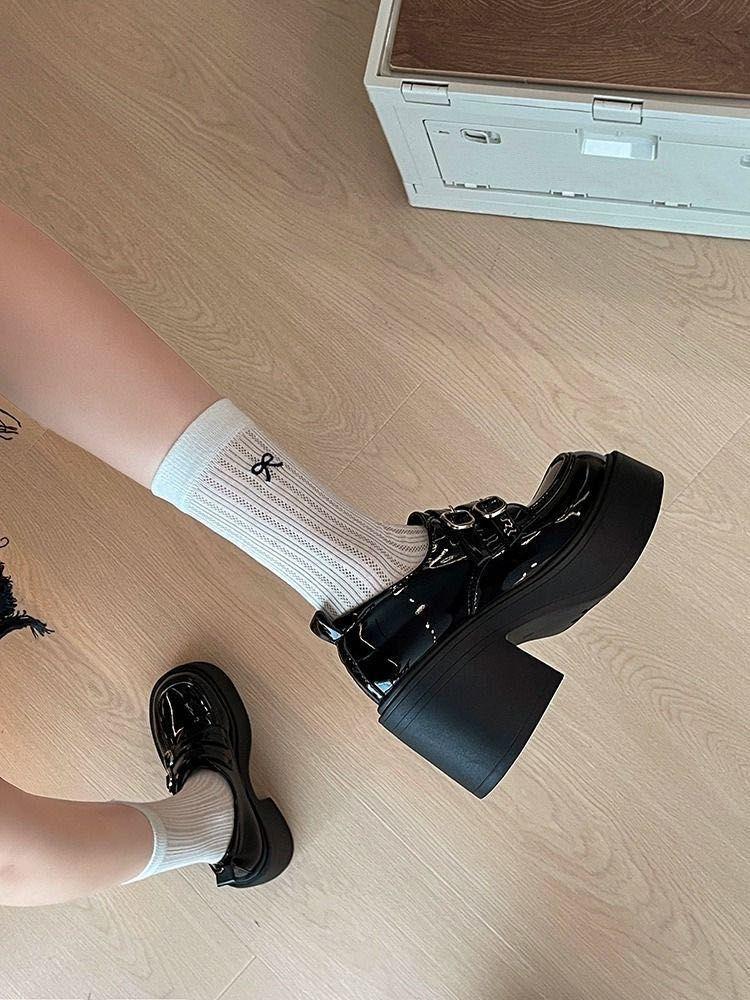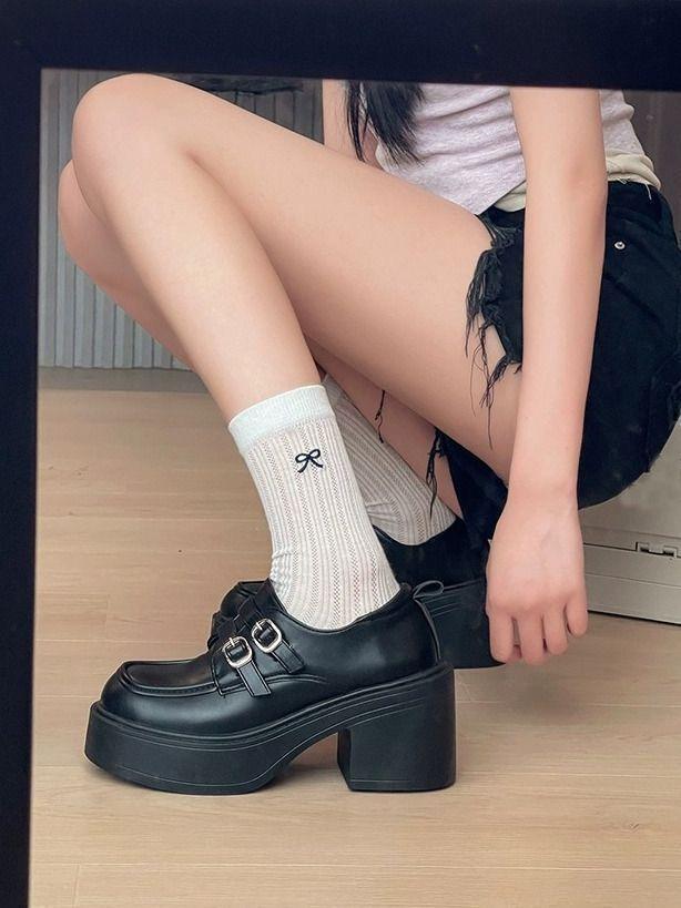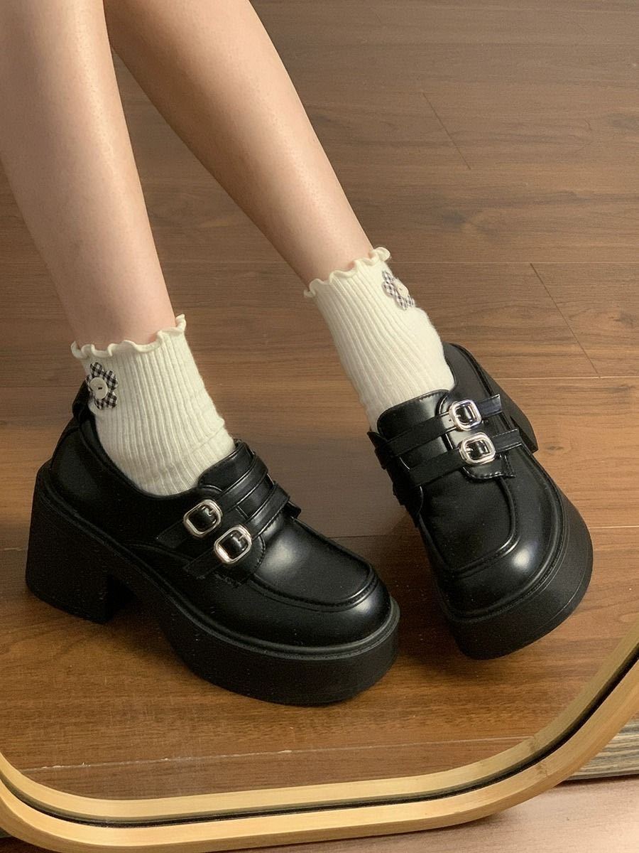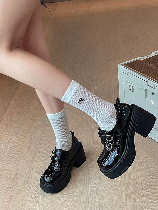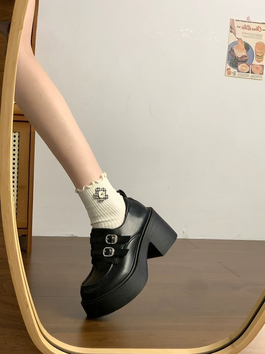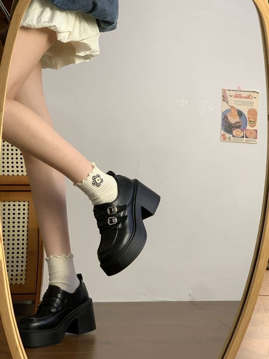 Hebilla de Cinturón Estilo Británico Ins Zapatos Pequeños de Cuero 2025 Primavera Nuevo Estilo Caliente Tacón Super Alto Suela Gruesa Estilo Caliente Mocasines