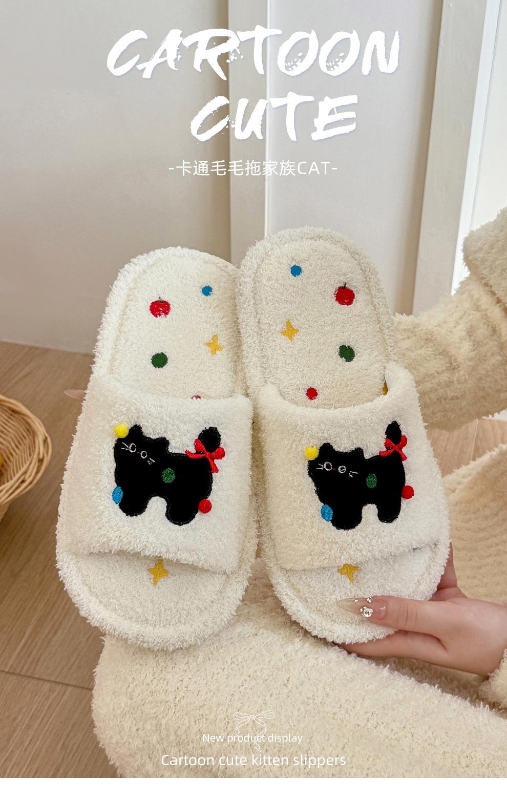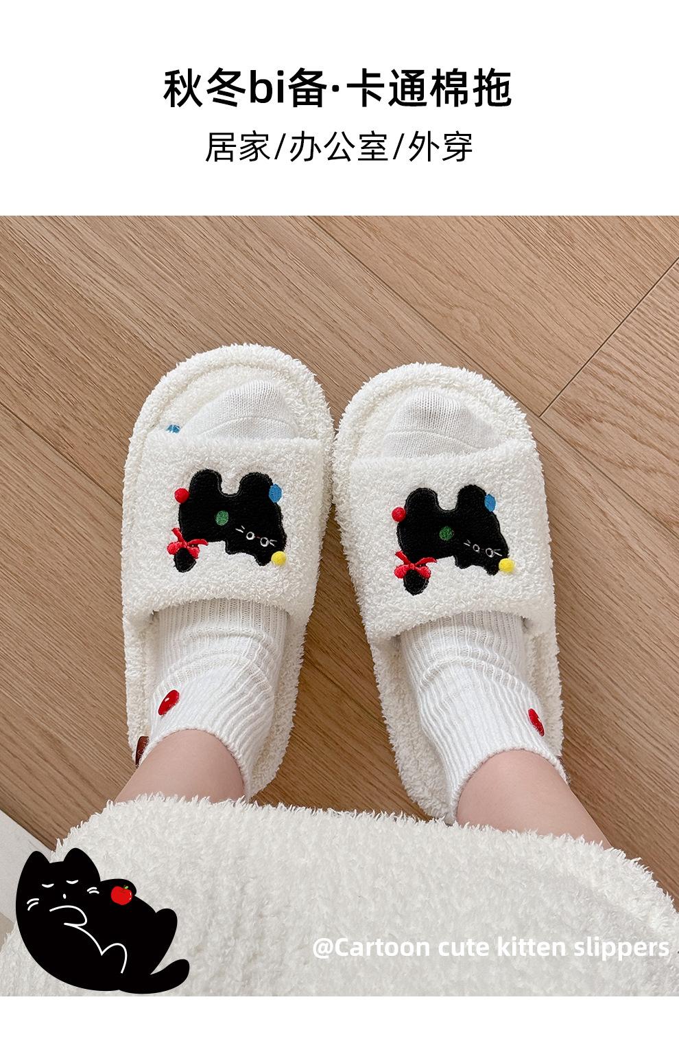 Pantuflas de Algodón para Mujer Otoño e Invierno 2025 Nuevas Lindas Gatito Hogar Interior Antideslizantes Felpa Cálidas Pantuflas de Piso Mujer