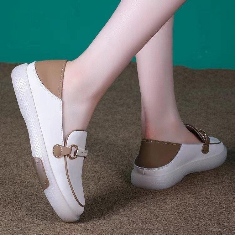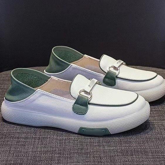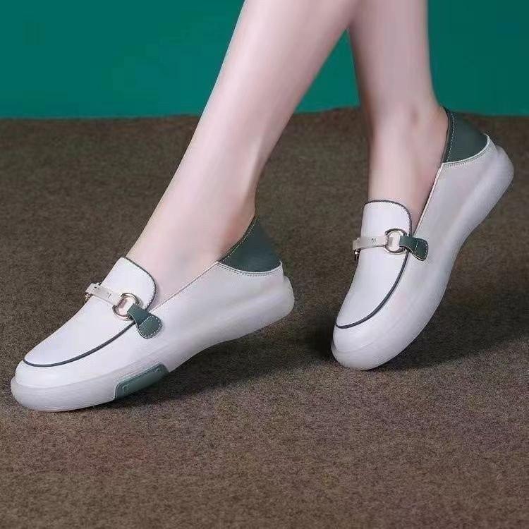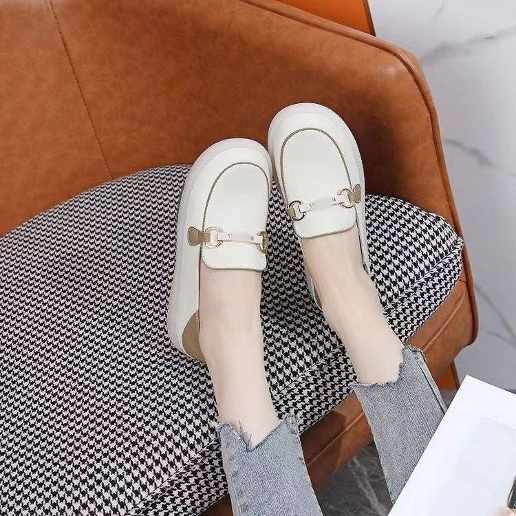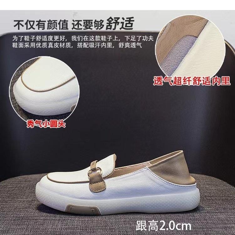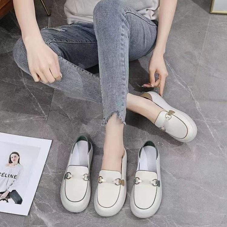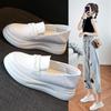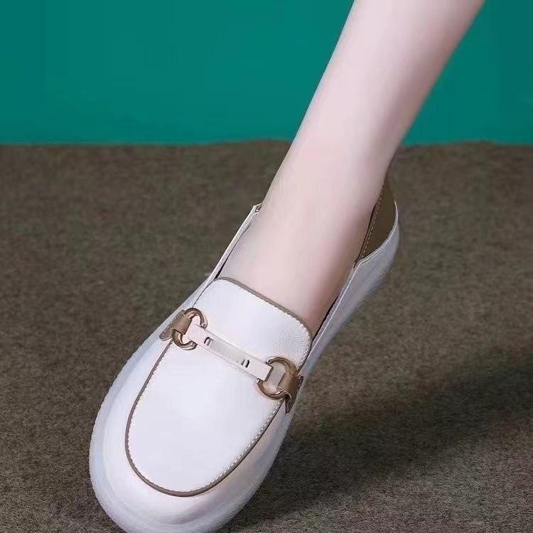 Zapatos individuales holgazanes sin cordones para mujer 2025 nuevos de punta redonda suela plana zapatos casuales versátiles de otoño suela gruesa suave zapatos blancos pequeños