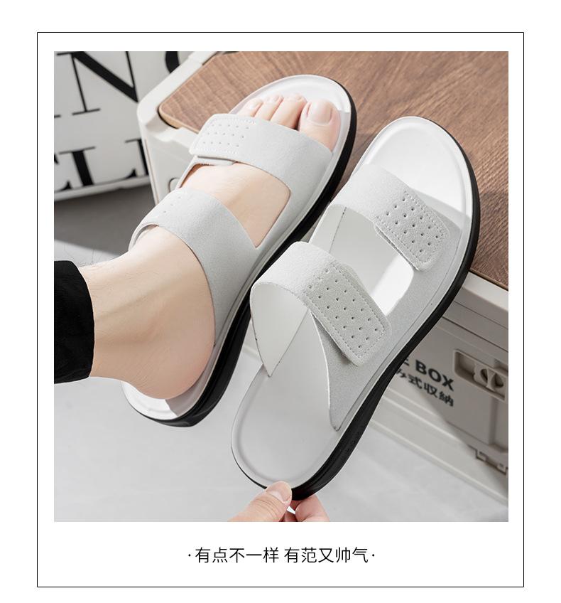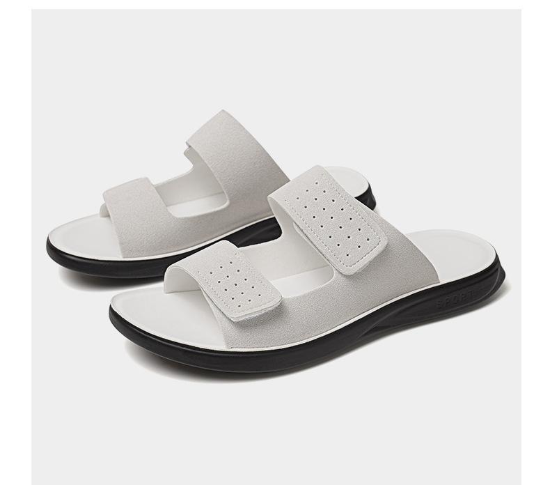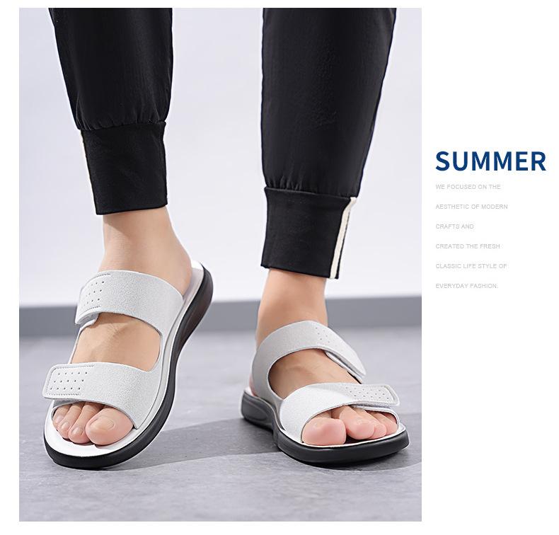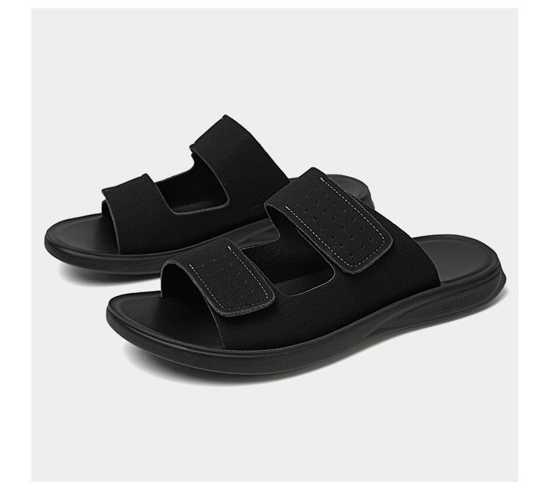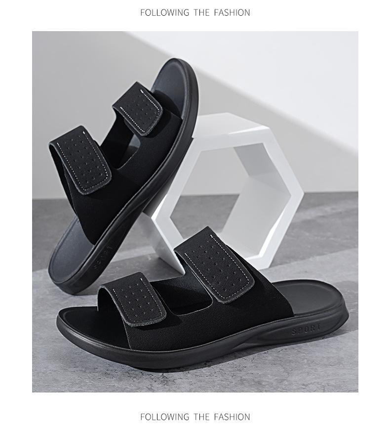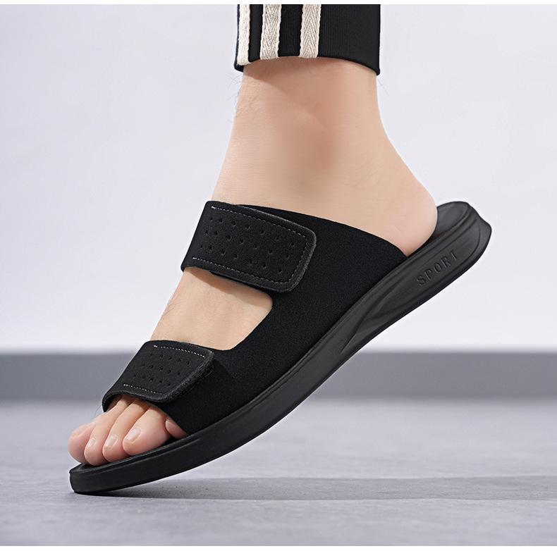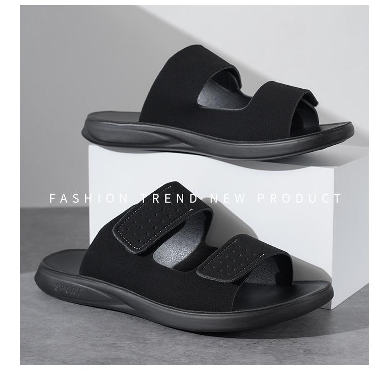 Pantuflas de Hombre de Talla Grande Transfronterizas Verano Nuevas Suela Blanda Antideslizante Sandalias Cómodas Diseño de Velcro Sandalias para Exterior