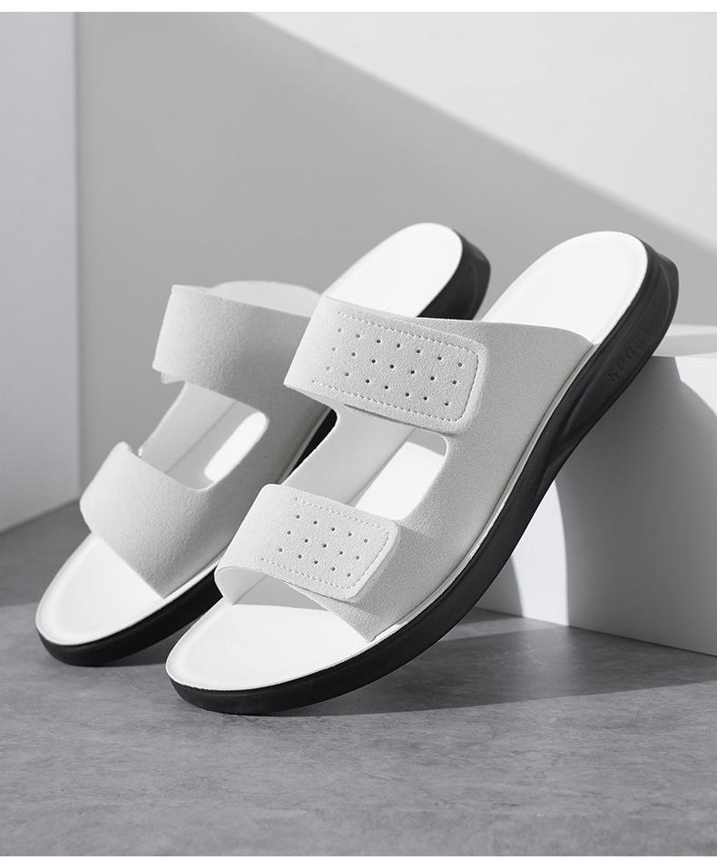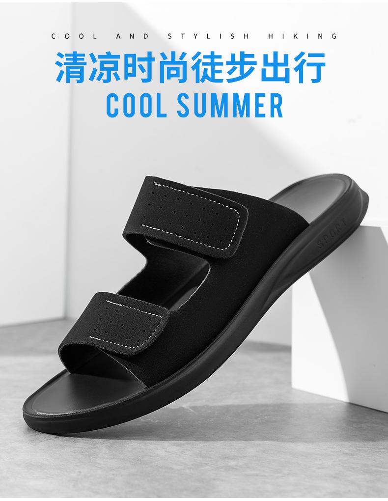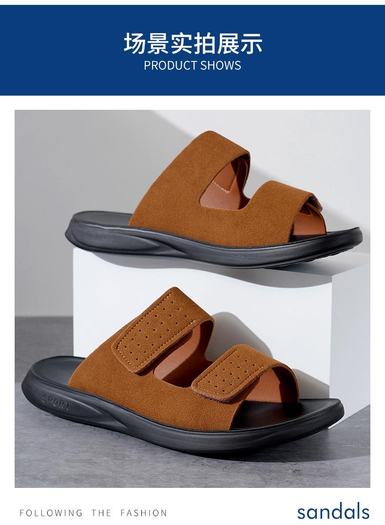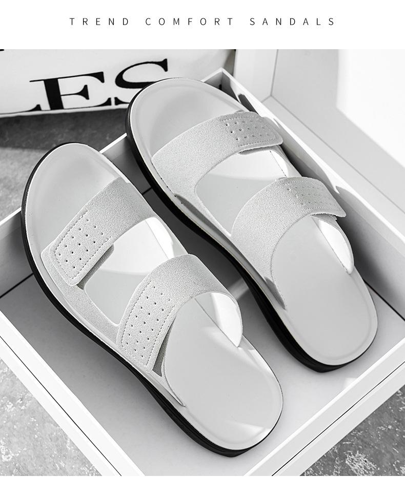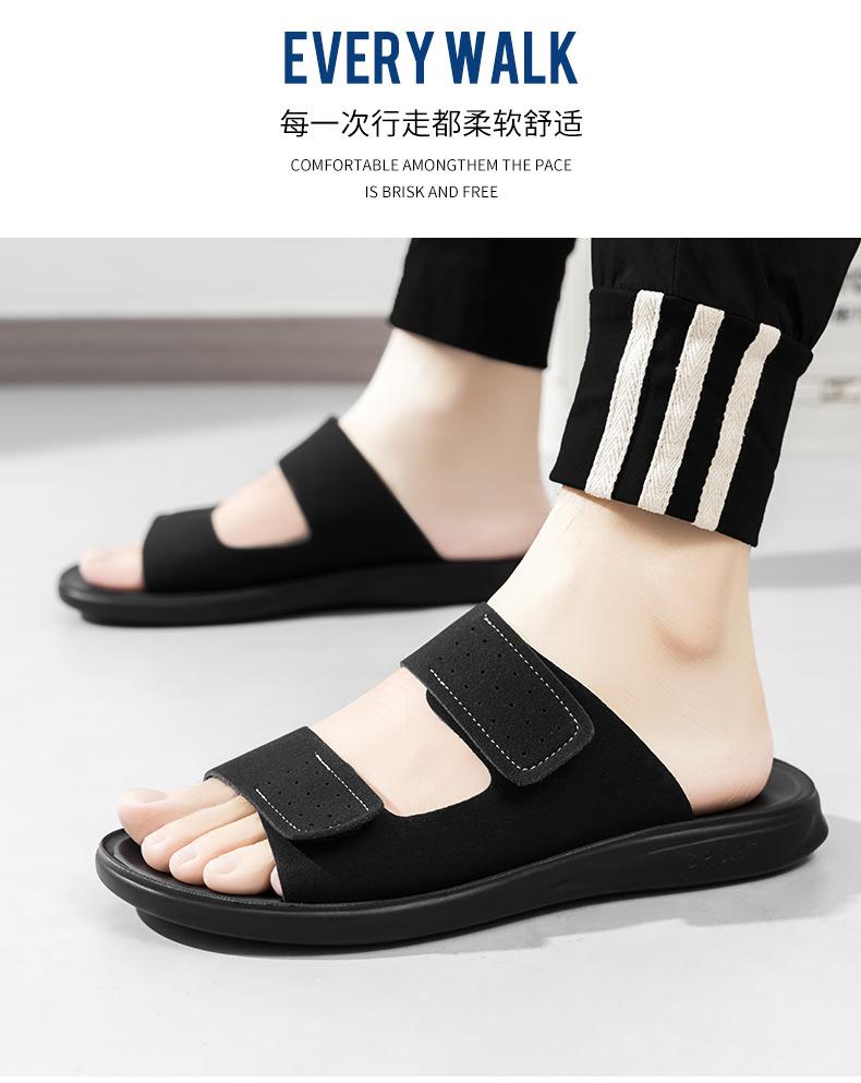 Pantuflas de Hombre de Talla Grande Transfronterizas Verano Nuevas Suela Blanda Antideslizante Sandalias Cómodas Diseño de Velcro Sandalias para Exterior
