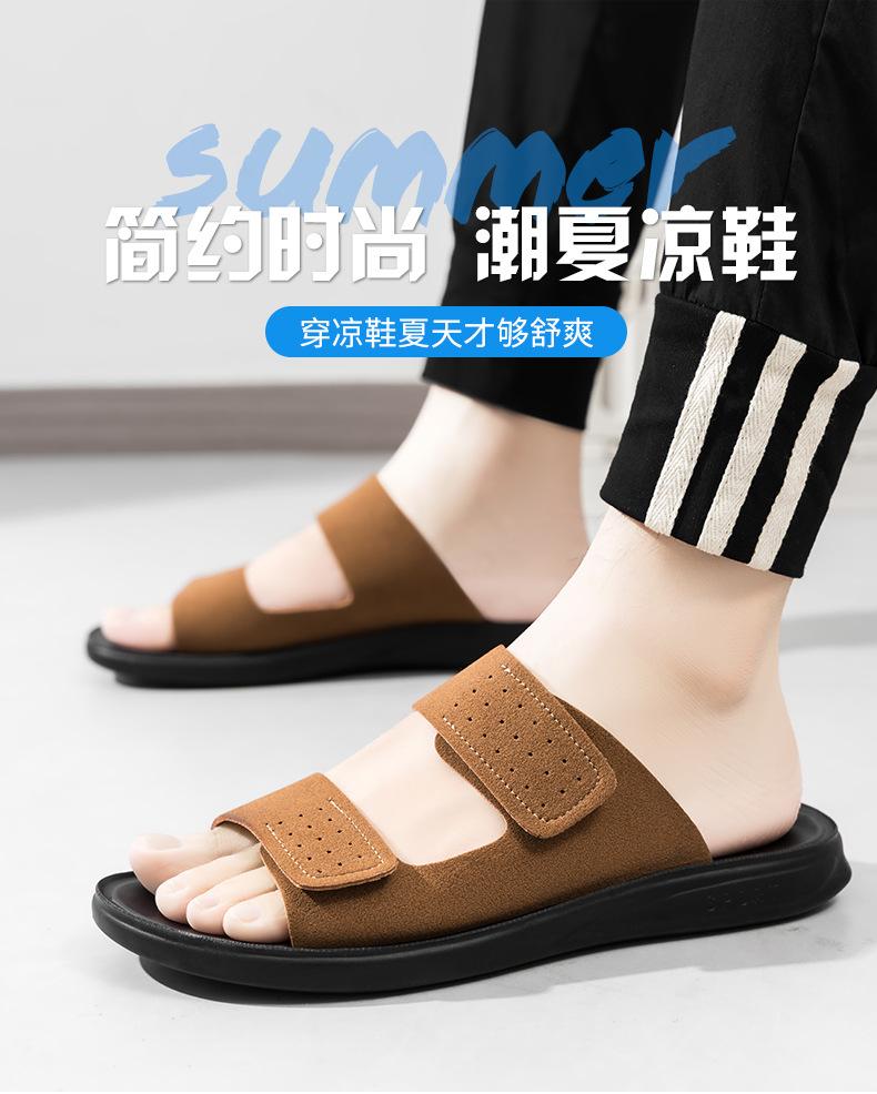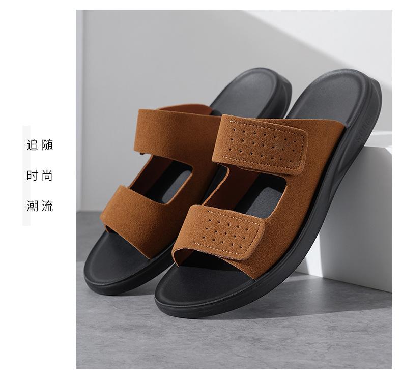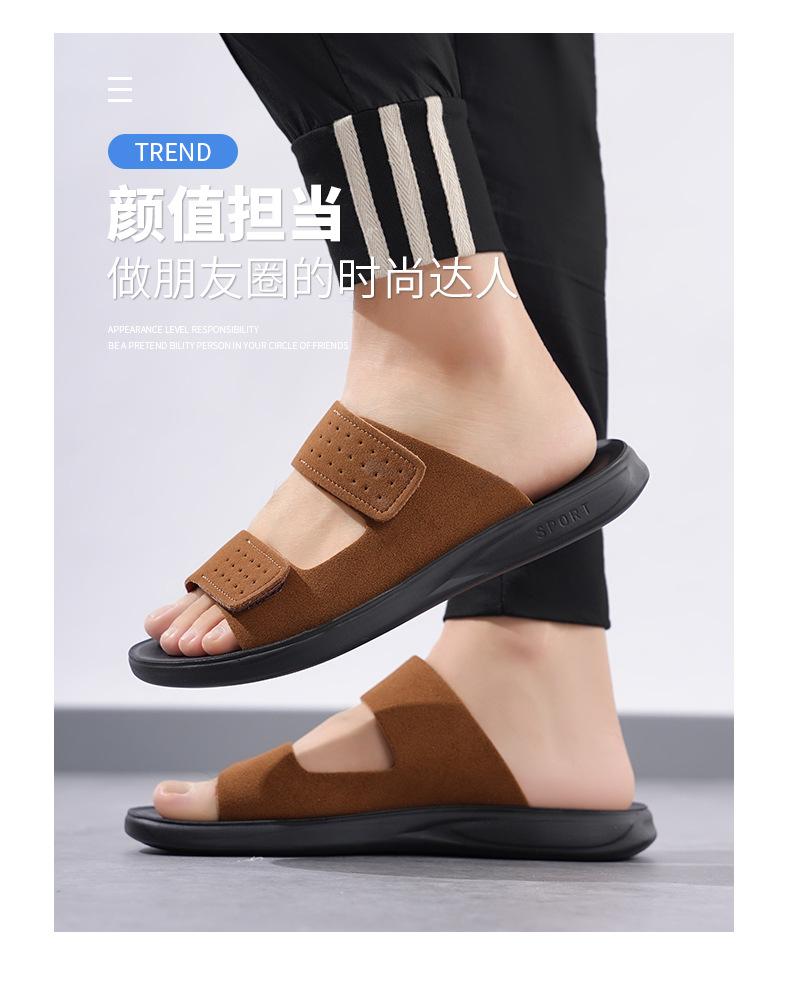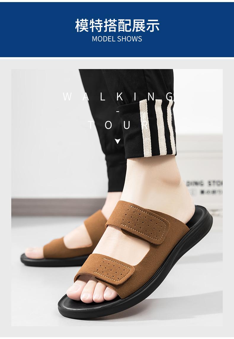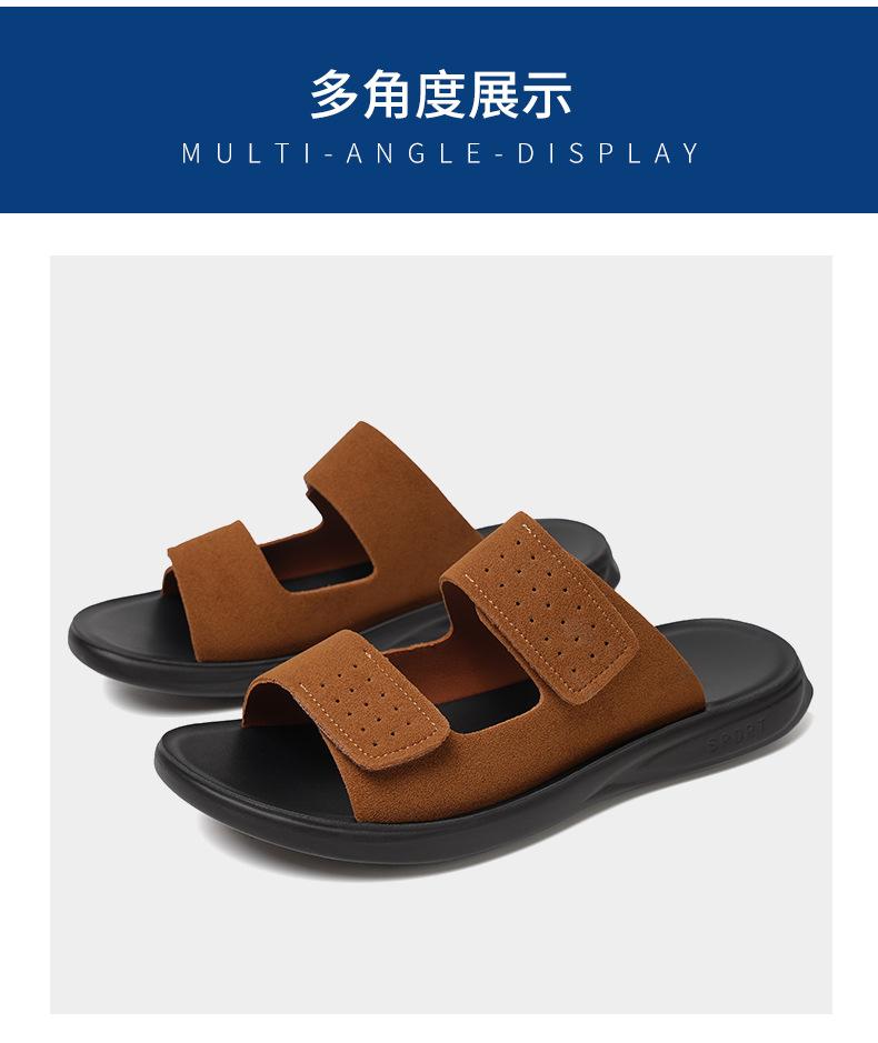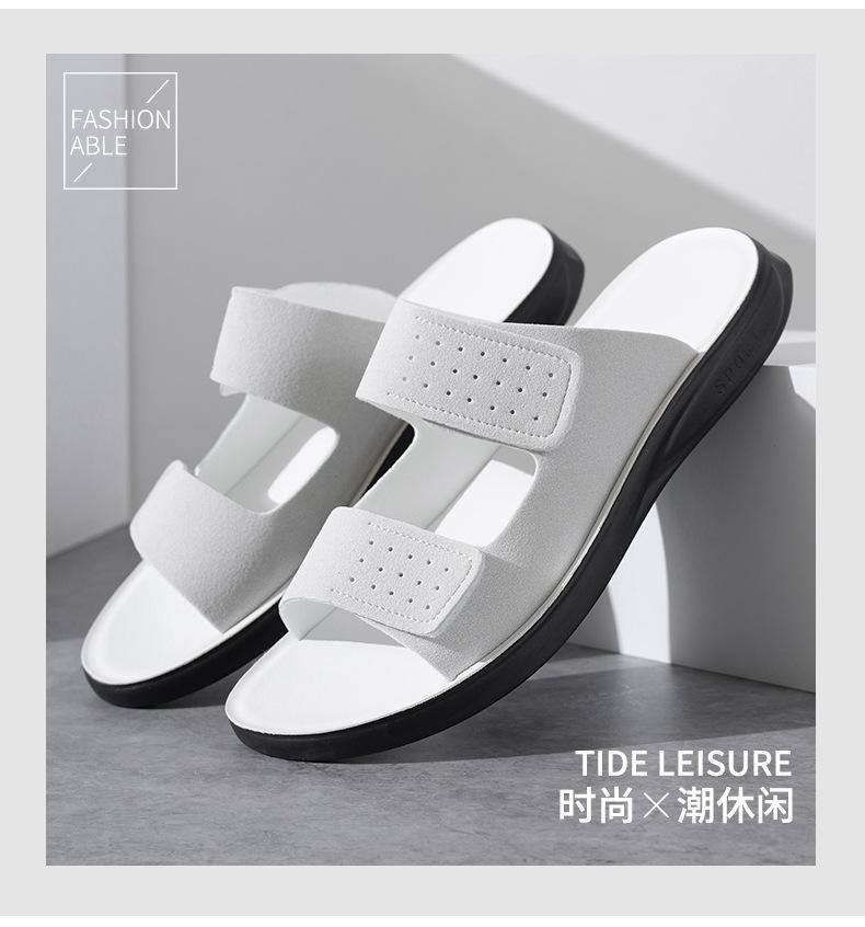 Pantuflas de Hombre de Talla Grande Transfronterizas Verano Nuevas Suela Blanda Antideslizante Sandalias Cómodas Diseño de Velcro Sandalias para Exterior