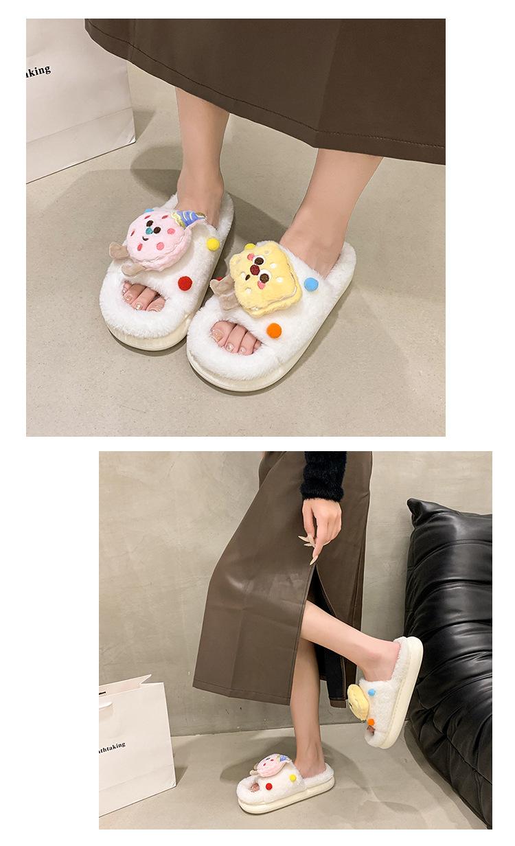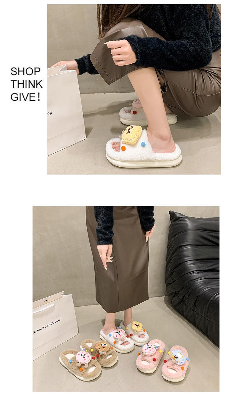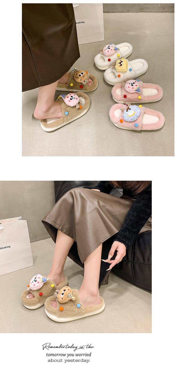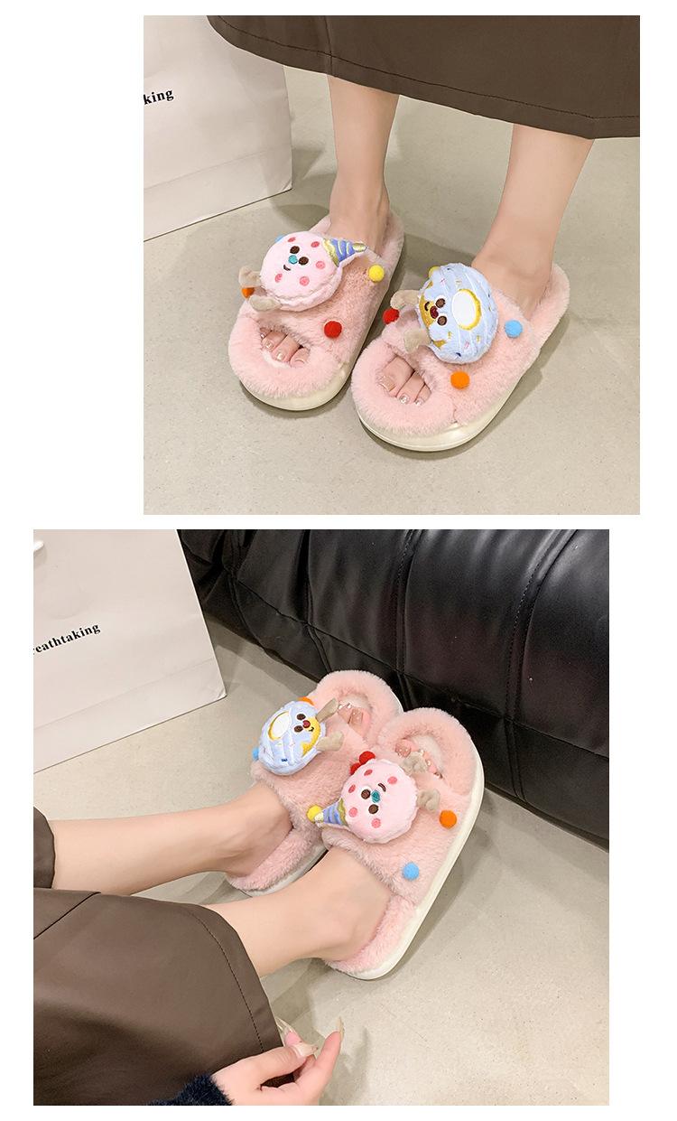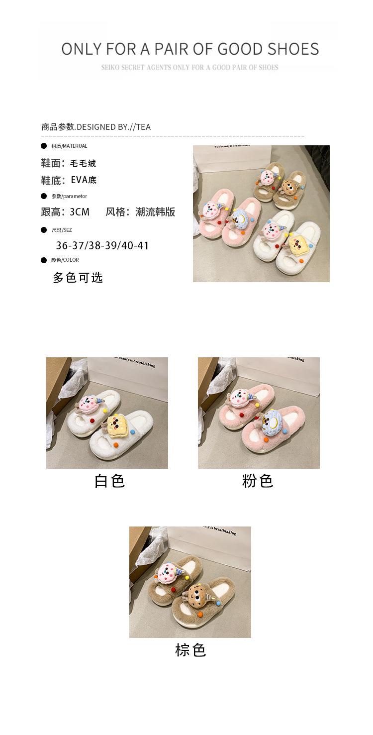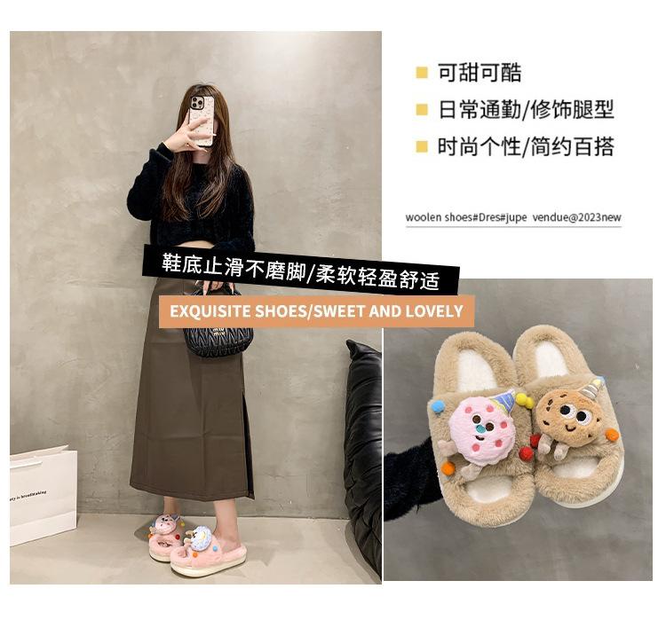 Pantuflas Peludas de Dibujos Animados Lindas para Mujer para Exterior 2025 Otoño/Invierno Nuevas Moda Celebridad de Internet Versátiles Casuales de Algodón