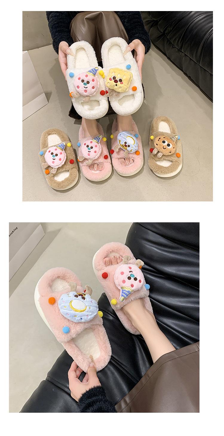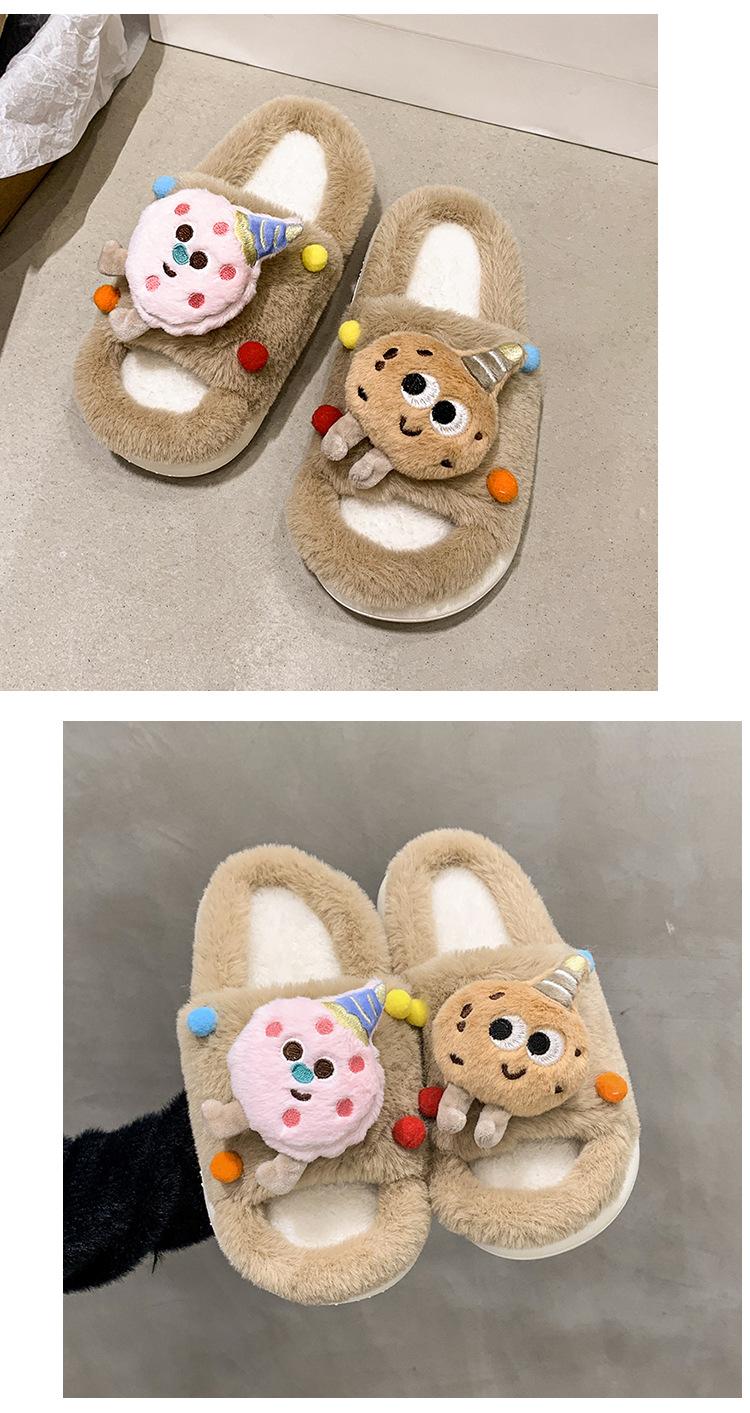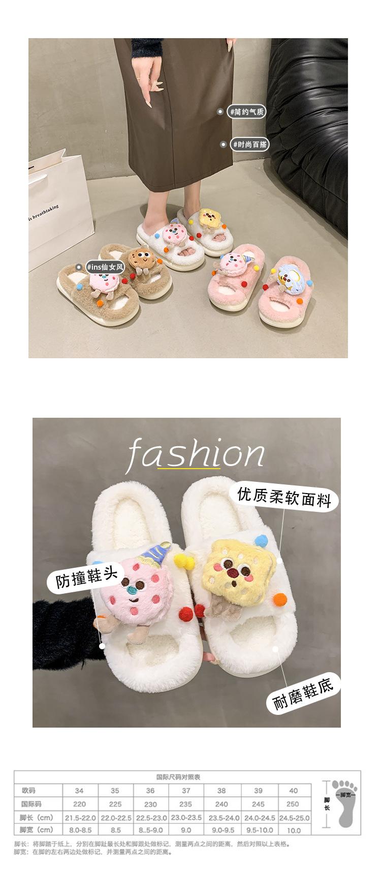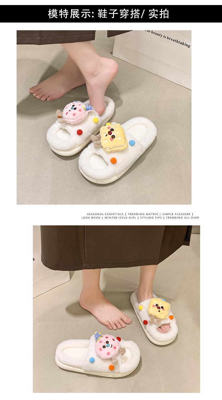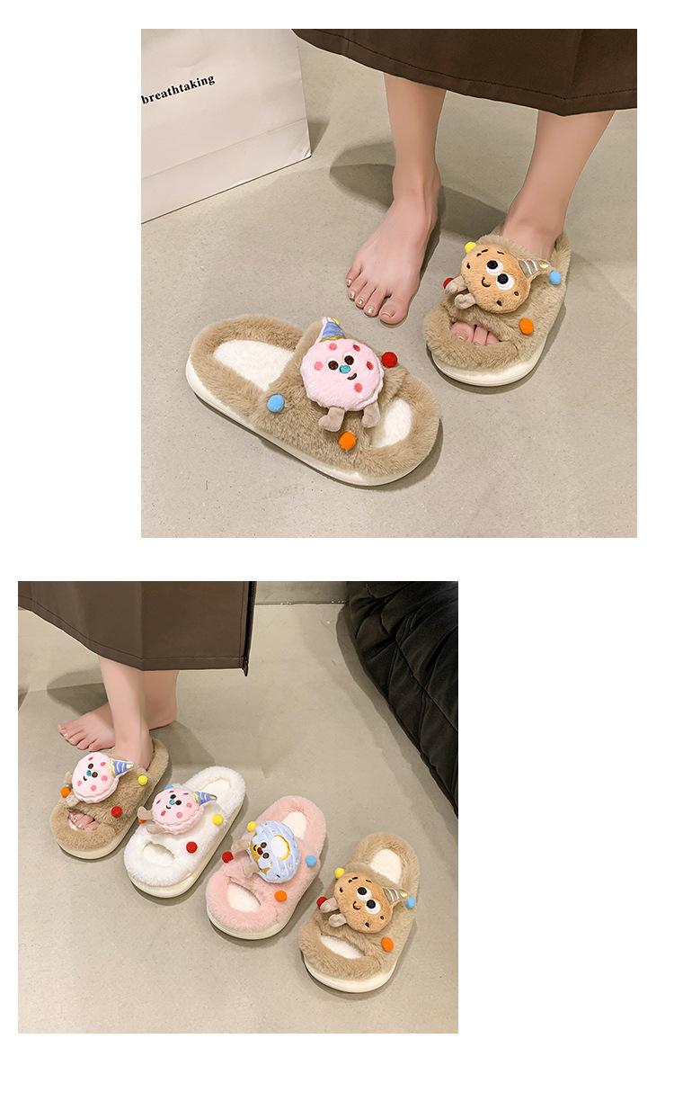 Pantuflas Peludas de Dibujos Animados Lindas para Mujer para Exterior 2025 Otoño/Invierno Nuevas Moda Celebridad de Internet Versátiles Casuales de Algodón