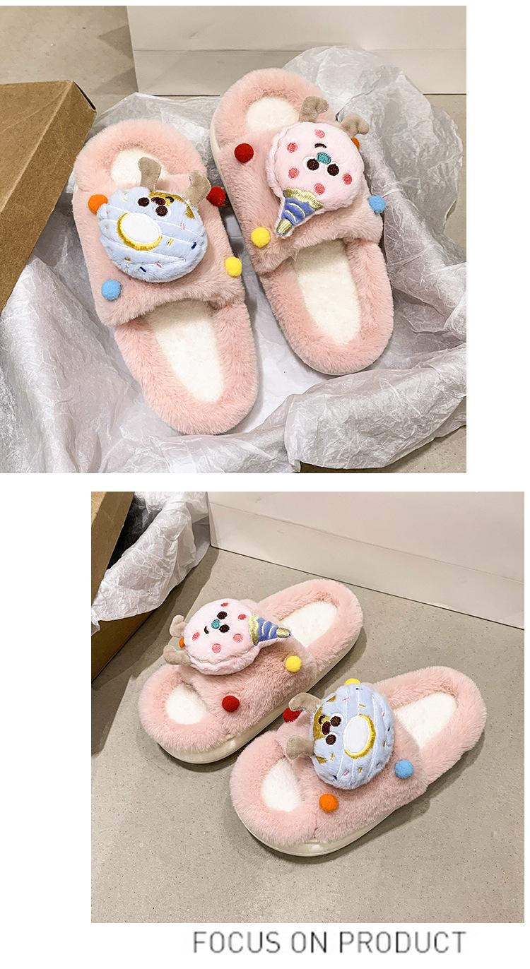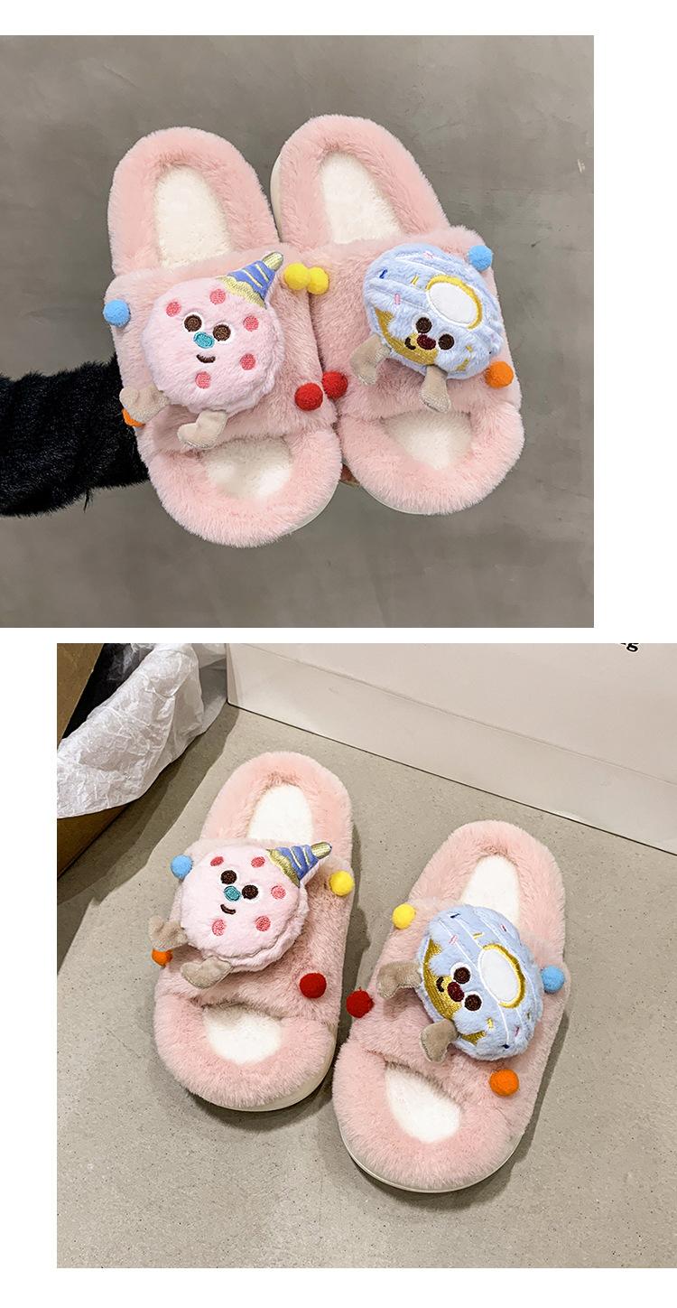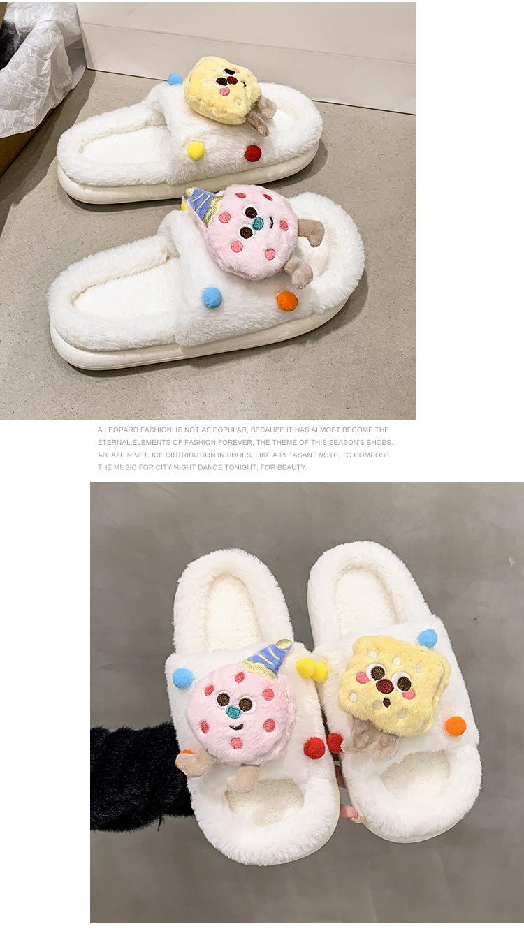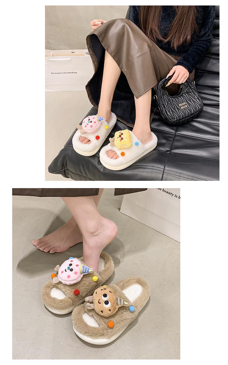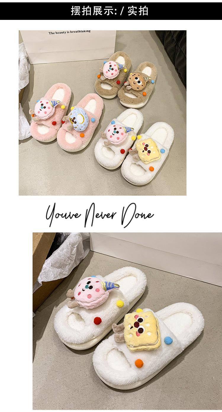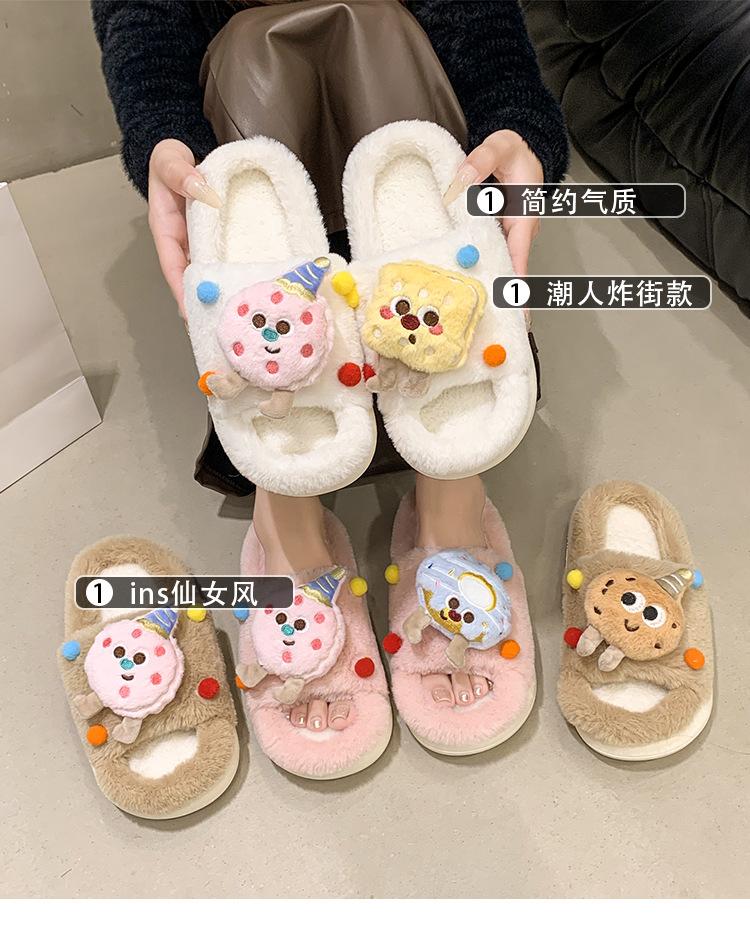 Pantuflas Peludas de Dibujos Animados Lindas para Mujer para Exterior 2025 Otoño/Invierno Nuevas Moda Celebridad de Internet Versátiles Casuales de Algodón