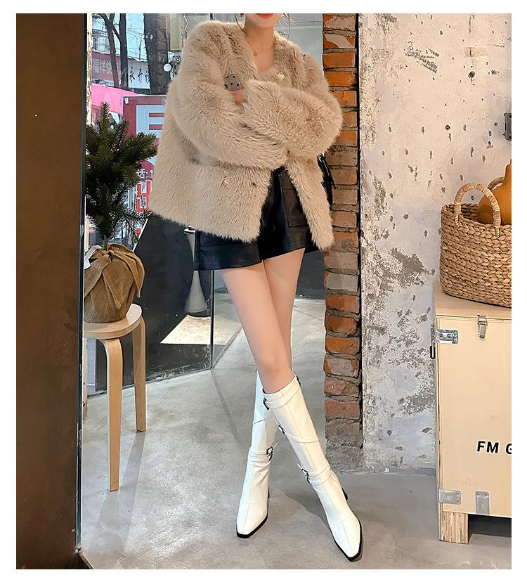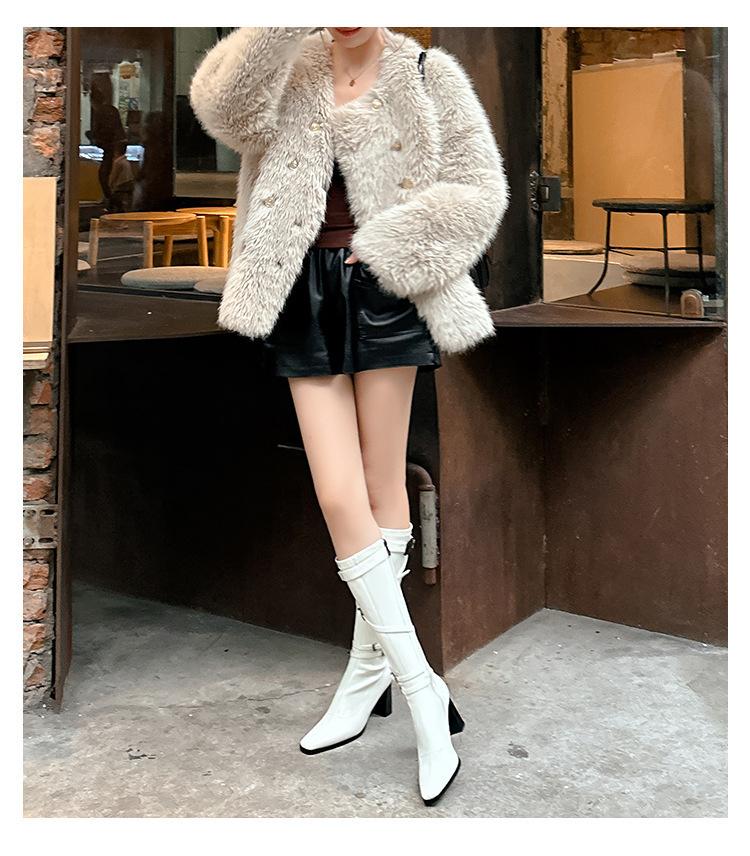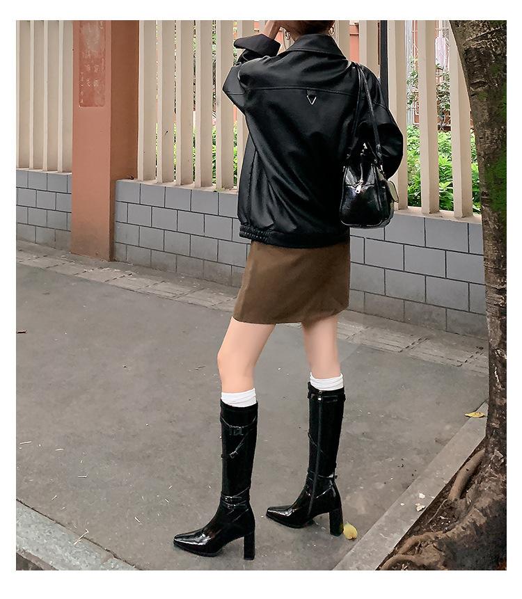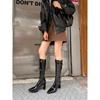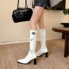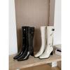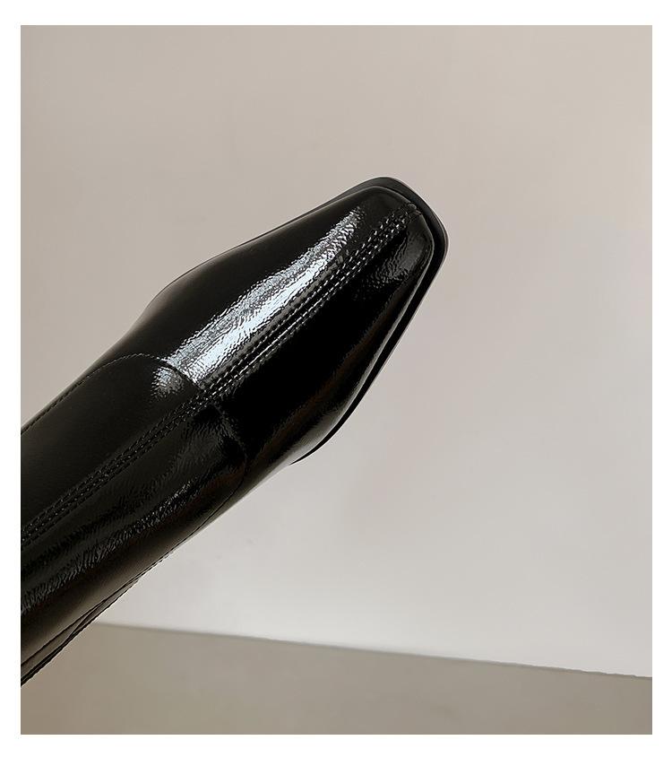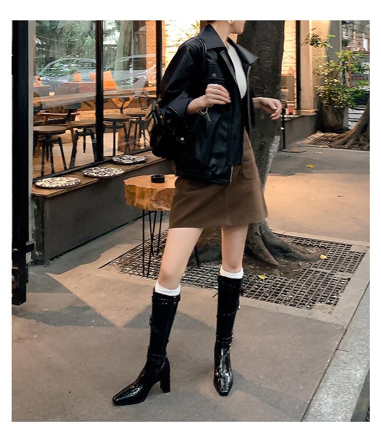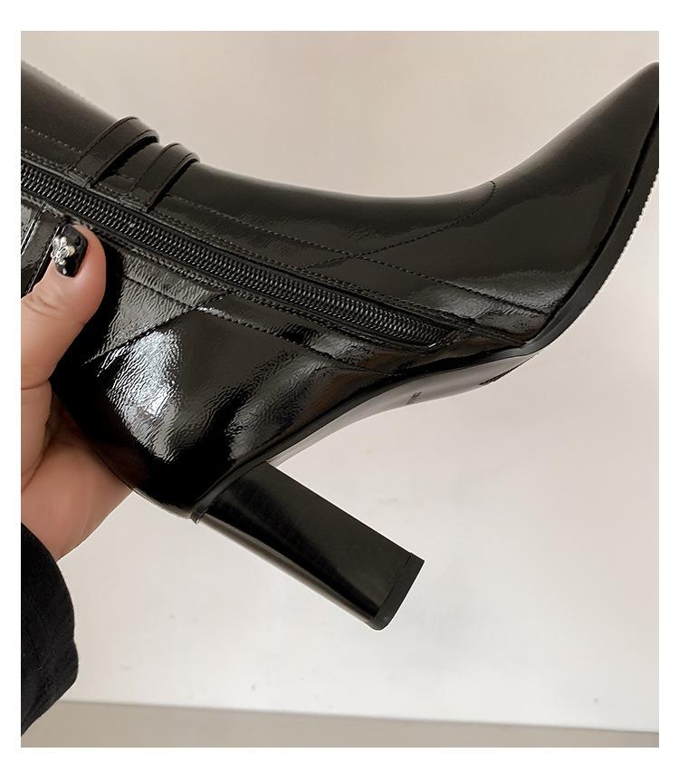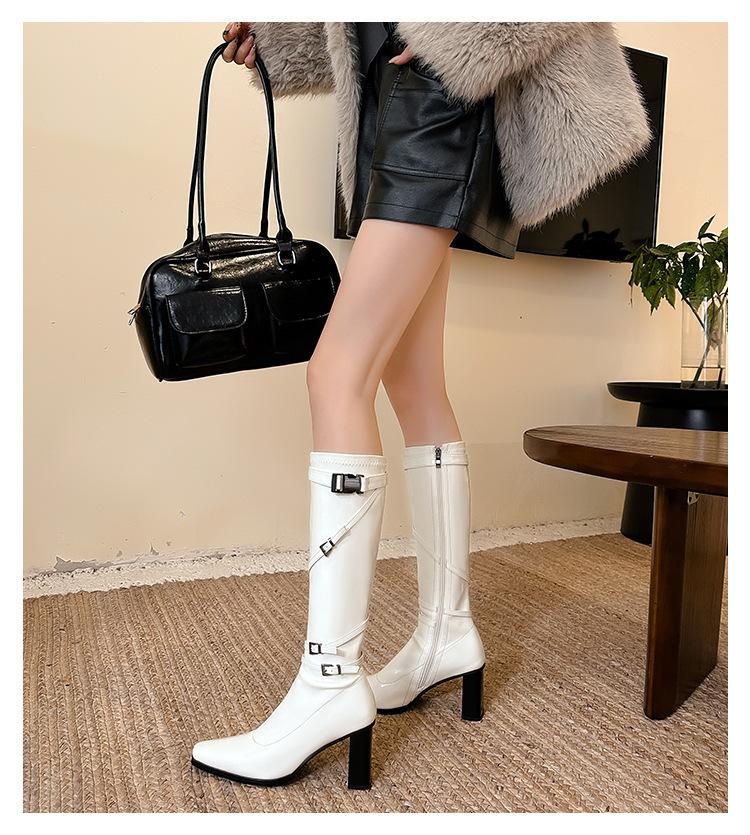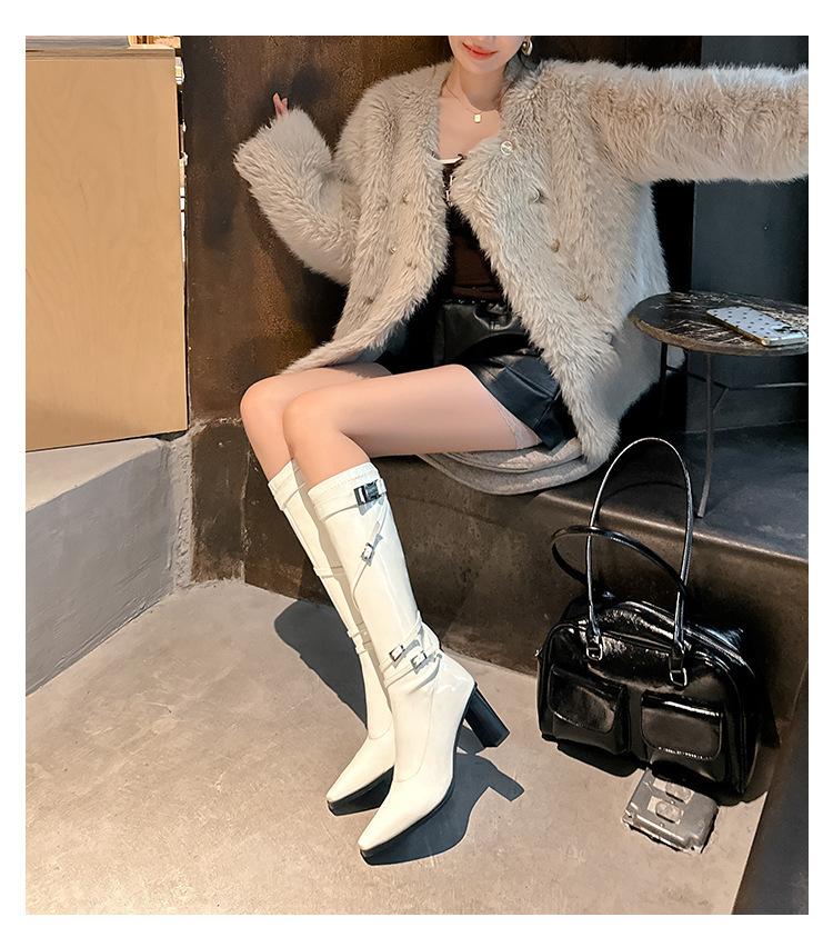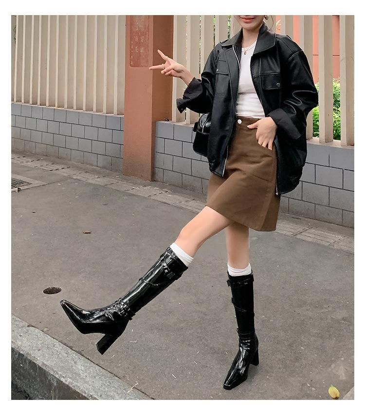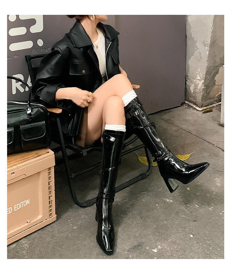 Botas de Tacón Alto hasta el Muslo para Mujer Europeas y Americanas de Charol Tacón Grueso Punta Cuadrada Hebilla Botas de Caballero por Encima de la Rodilla Botas de Moda