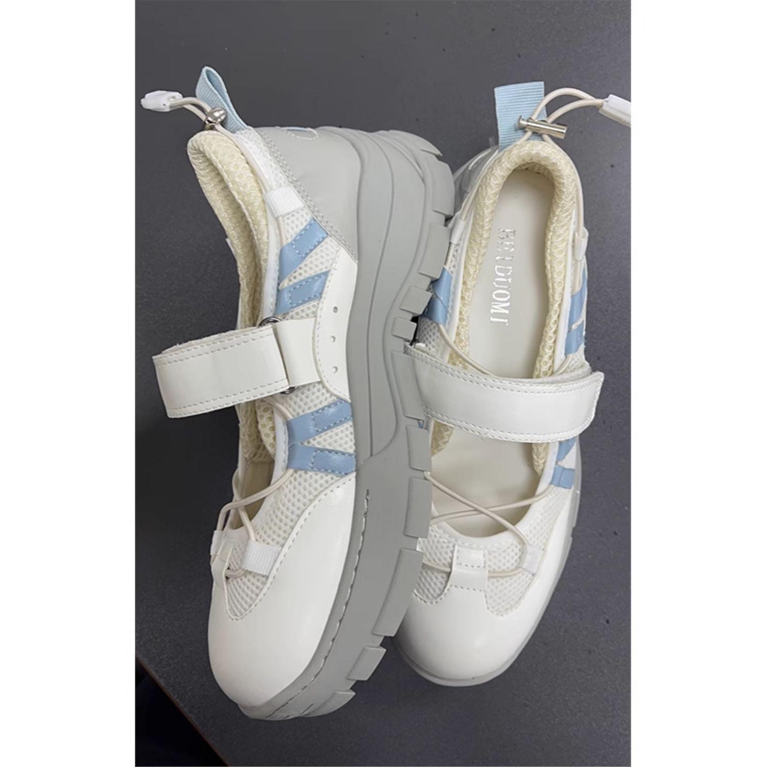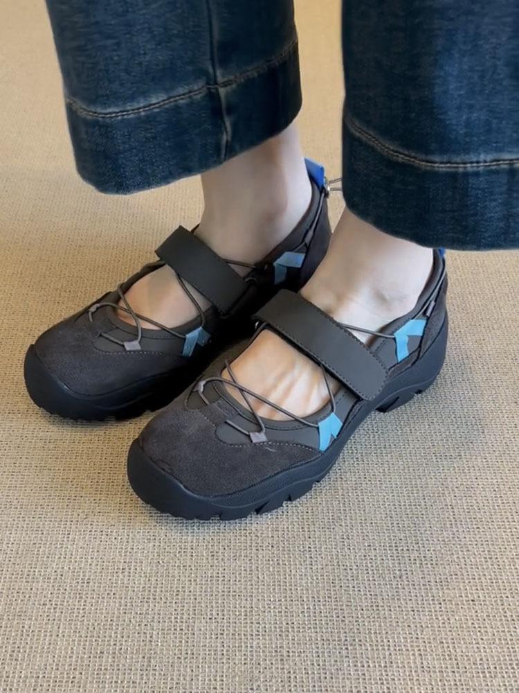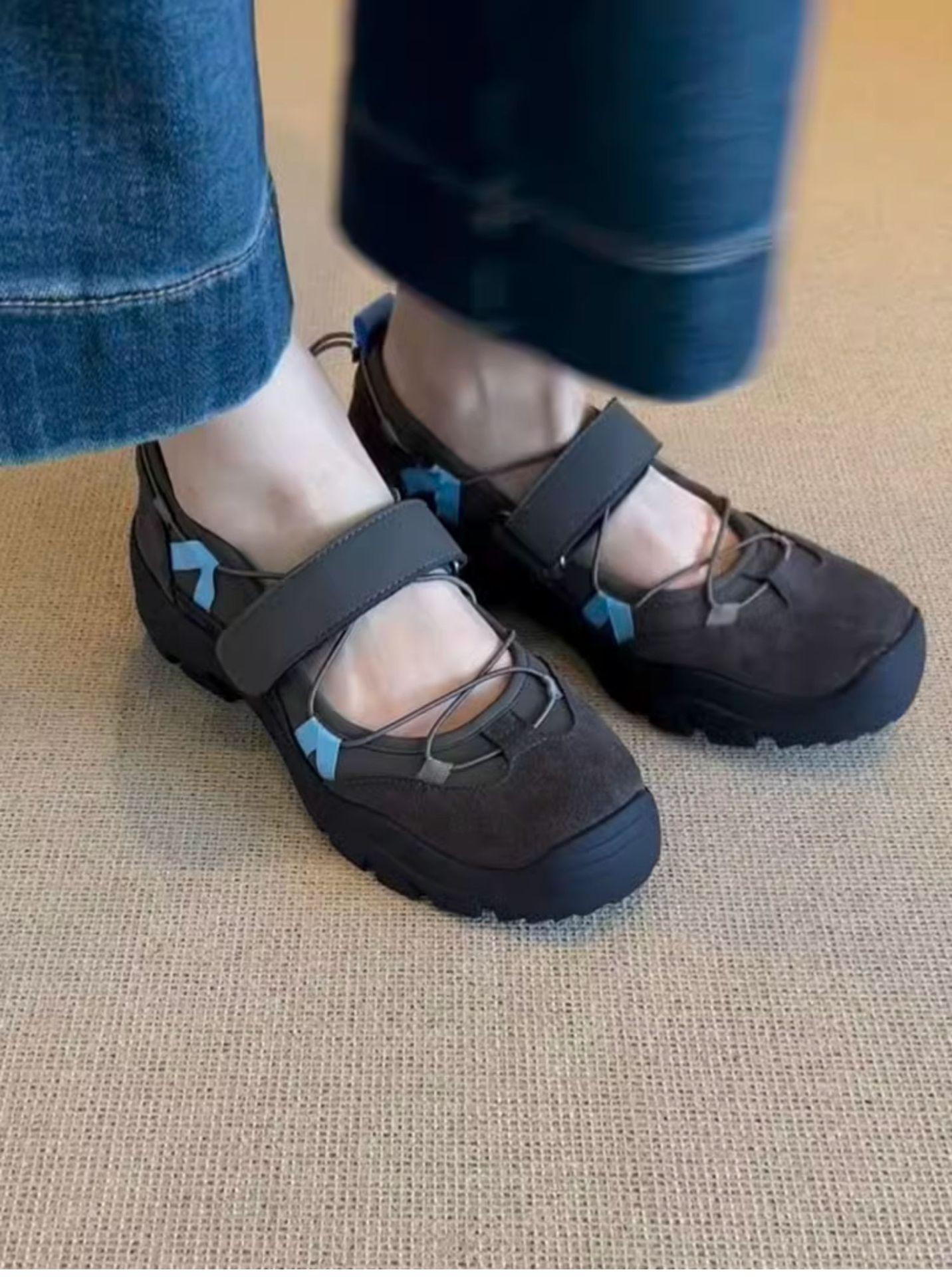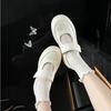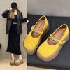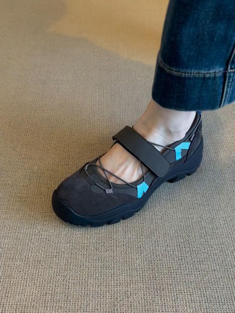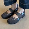 Versión de piel de vaca~Estilo funcional de suela gruesa Zapatos de papá versión coreana para mujer Nuevas zapatillas de ballet con velcro Zapatos Mary Jane