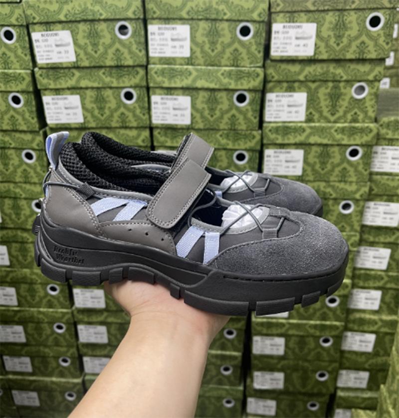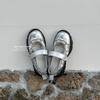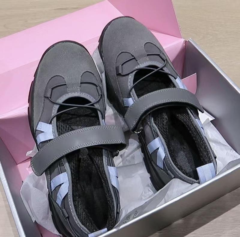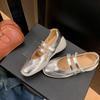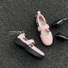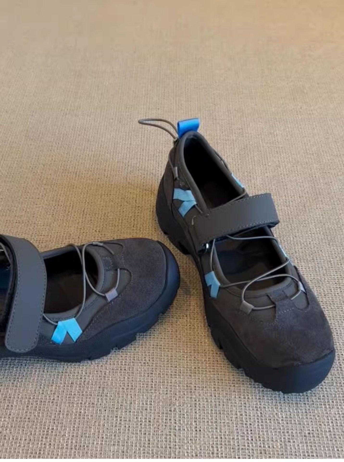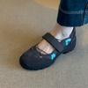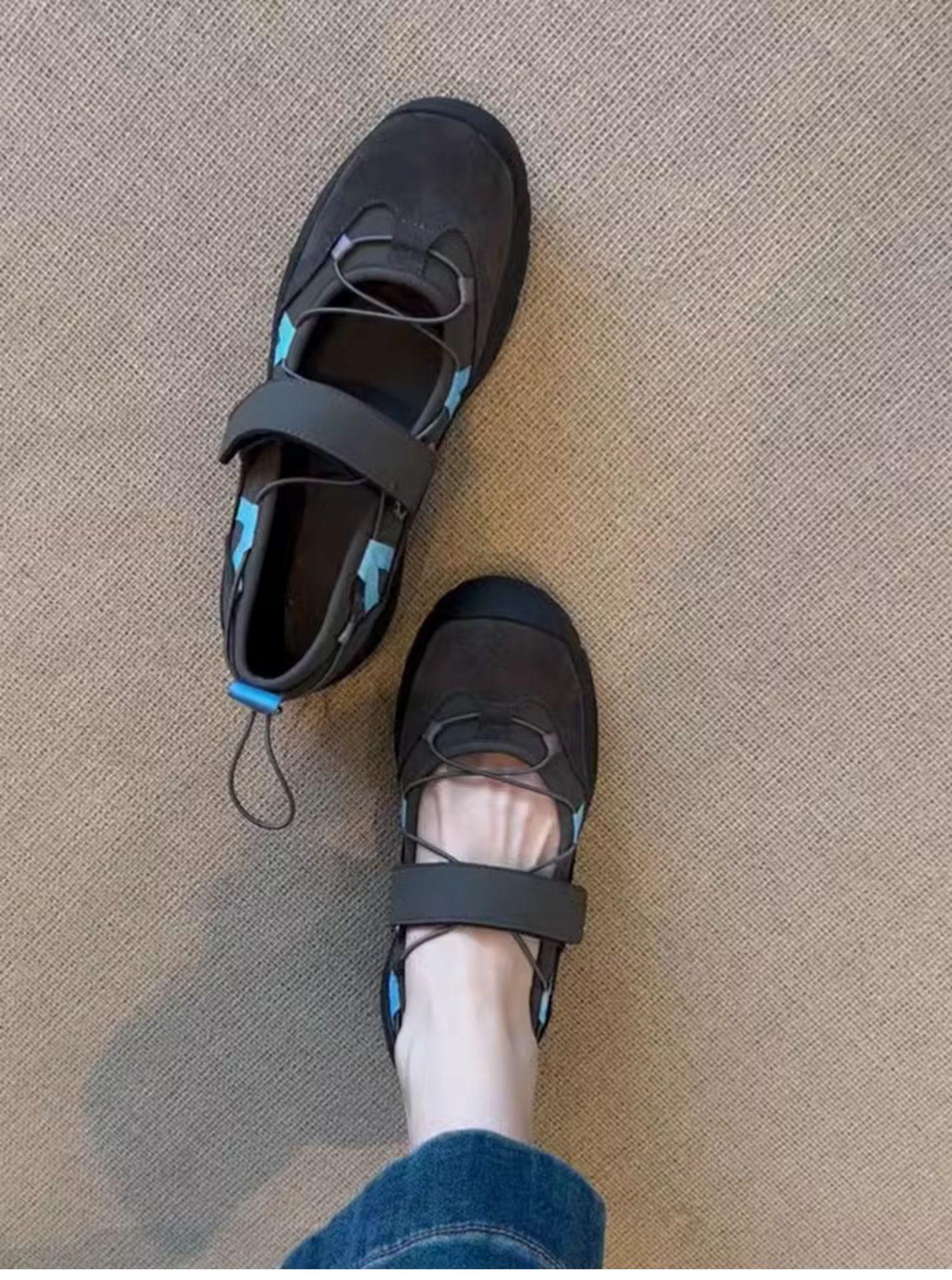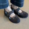 Versión de piel de vaca~Estilo funcional de suela gruesa Zapatos de papá versión coreana para mujer Nuevas zapatillas de ballet con velcro Zapatos Mary Jane