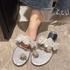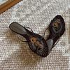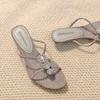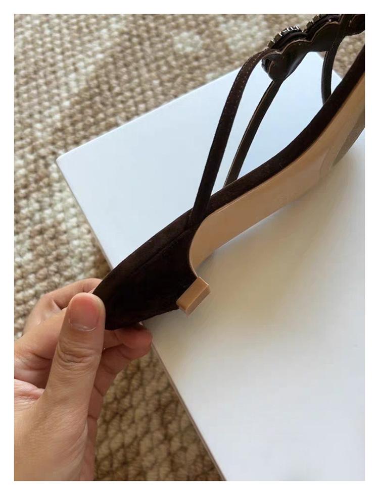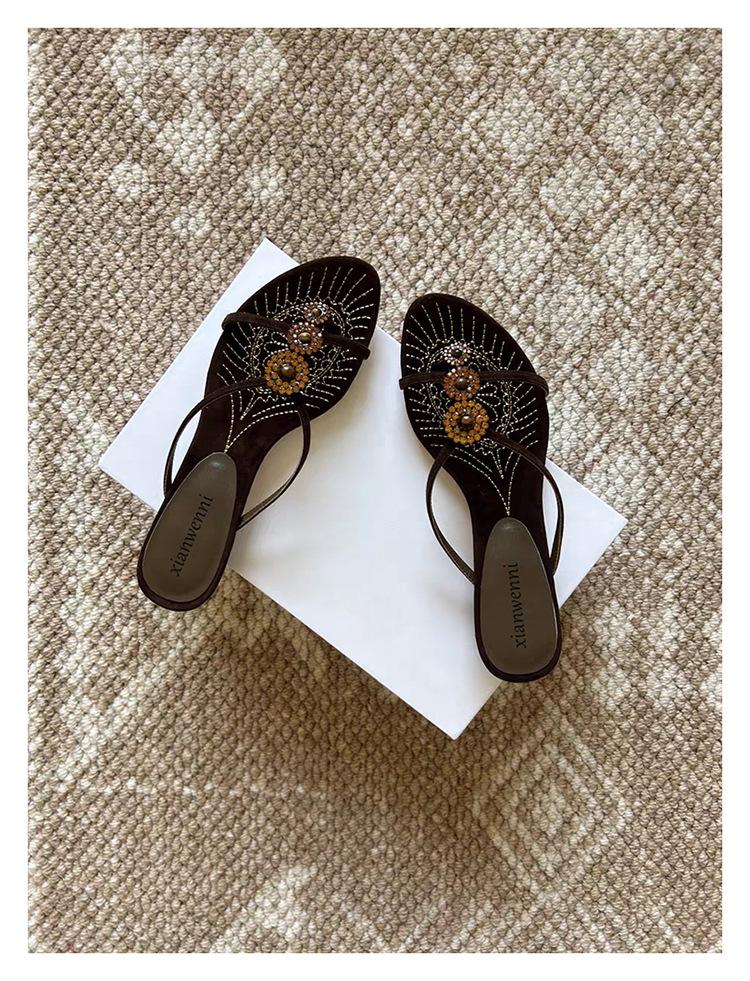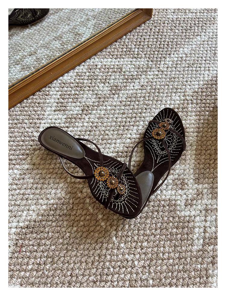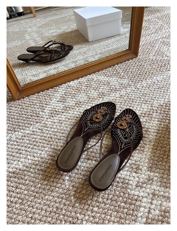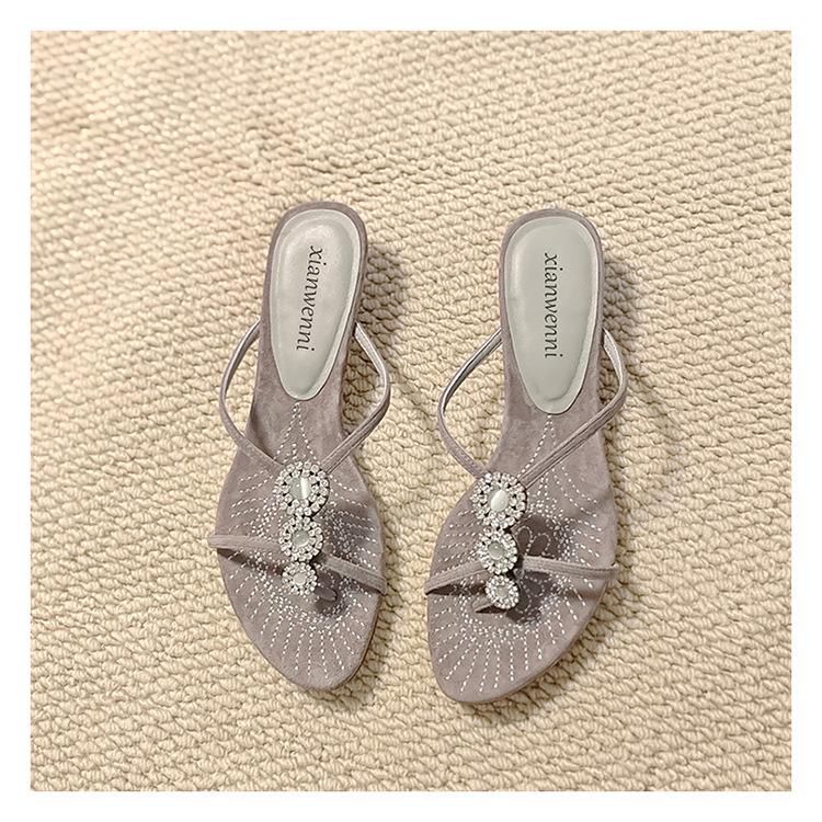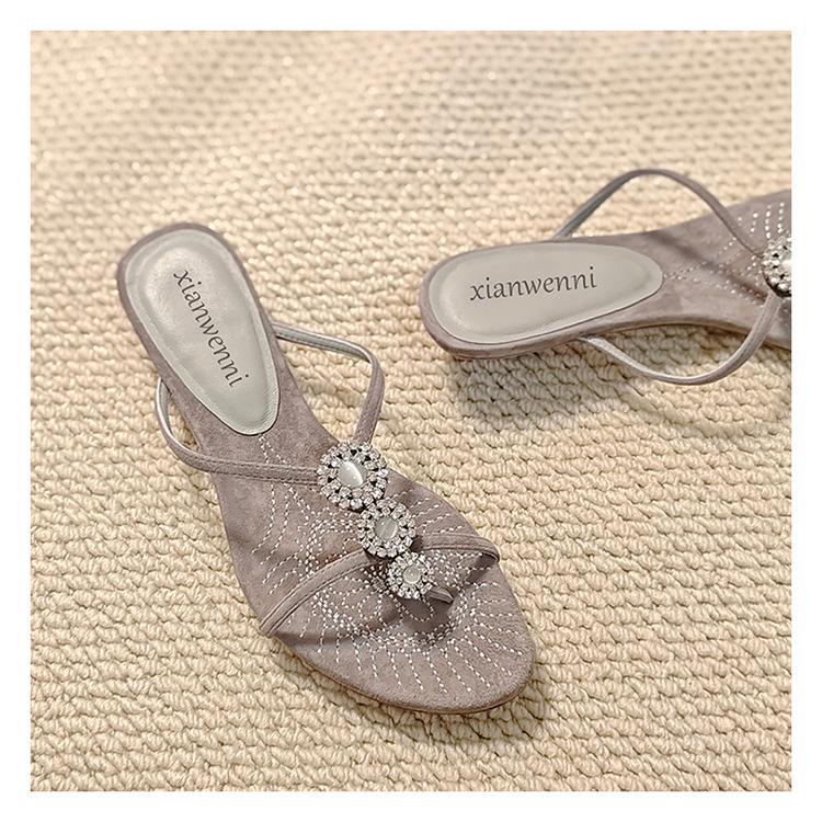 Verano 2025 Nuevo Diseño Nicho Sandalias Tipo Tanga Exterior de Mujer Vacaciones Tacón Kitten Pedrería Clip Dedo Sandalias