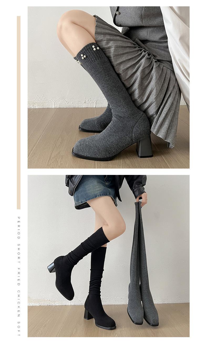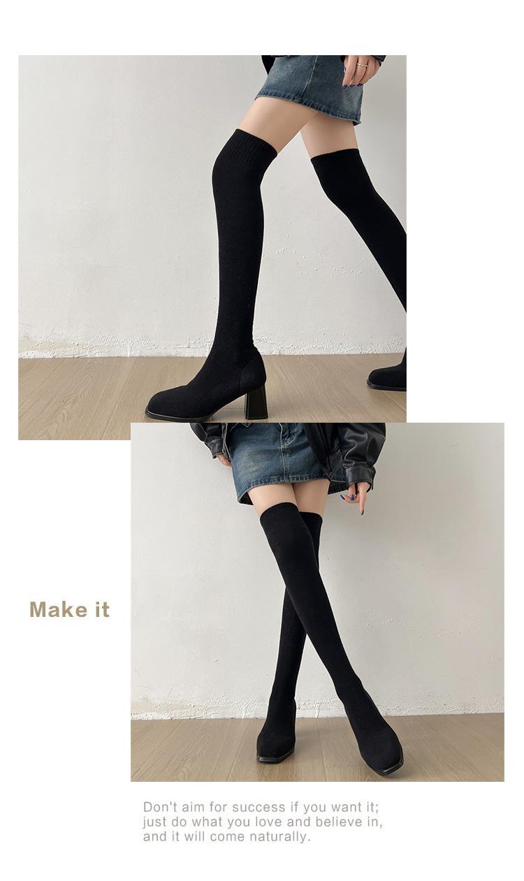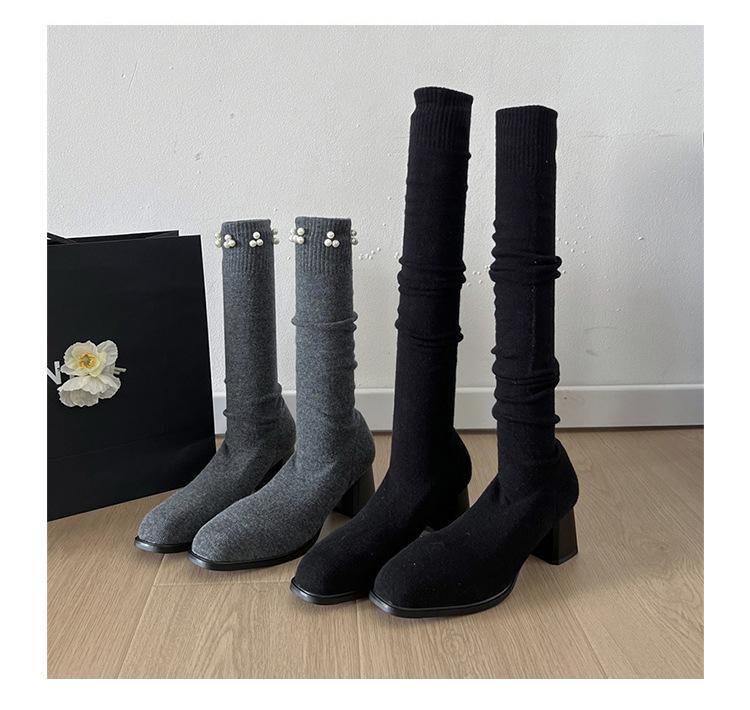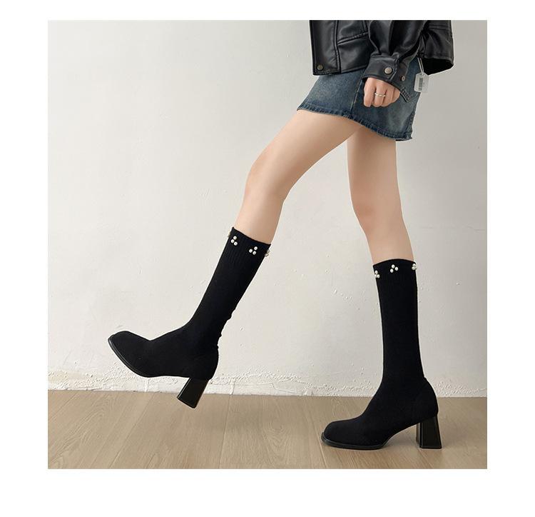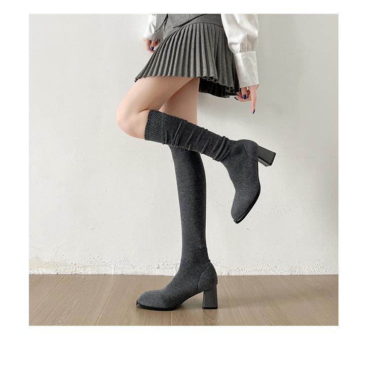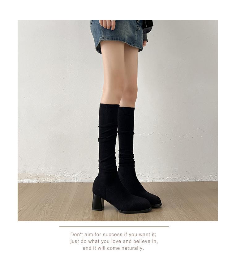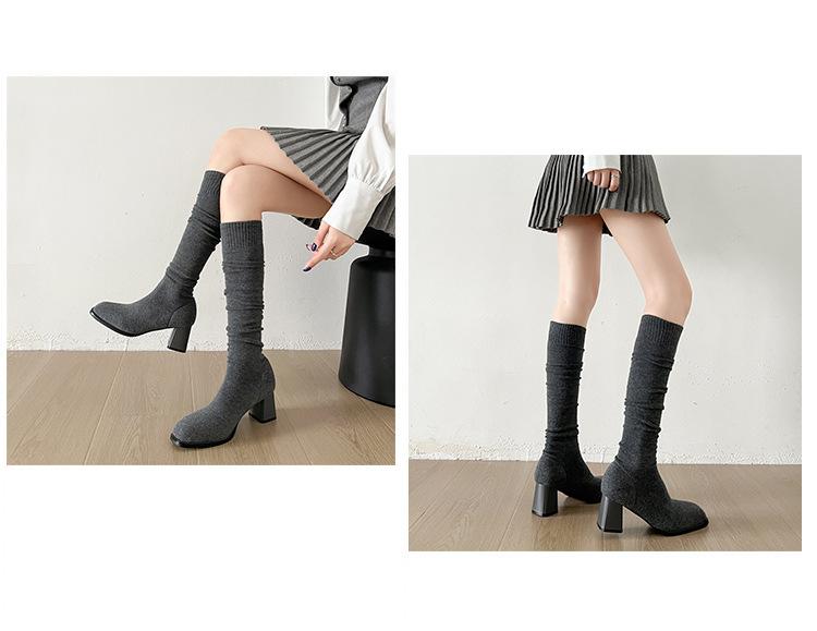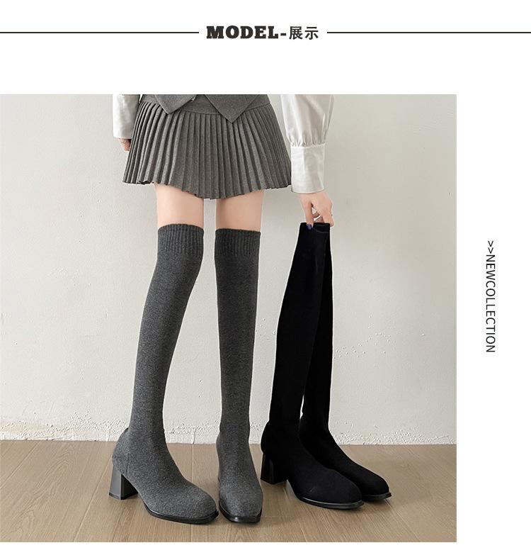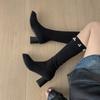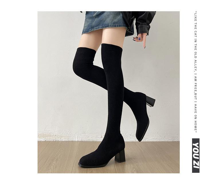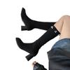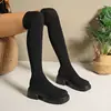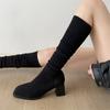 Botas de punto con tacón grueso, punta redonda pequeña, ajuste ceñido, otoño 2025, nuevas, de suela gruesa, casuales, versátiles, botas por encima de la rodilla, botas calcetín elásticas
