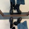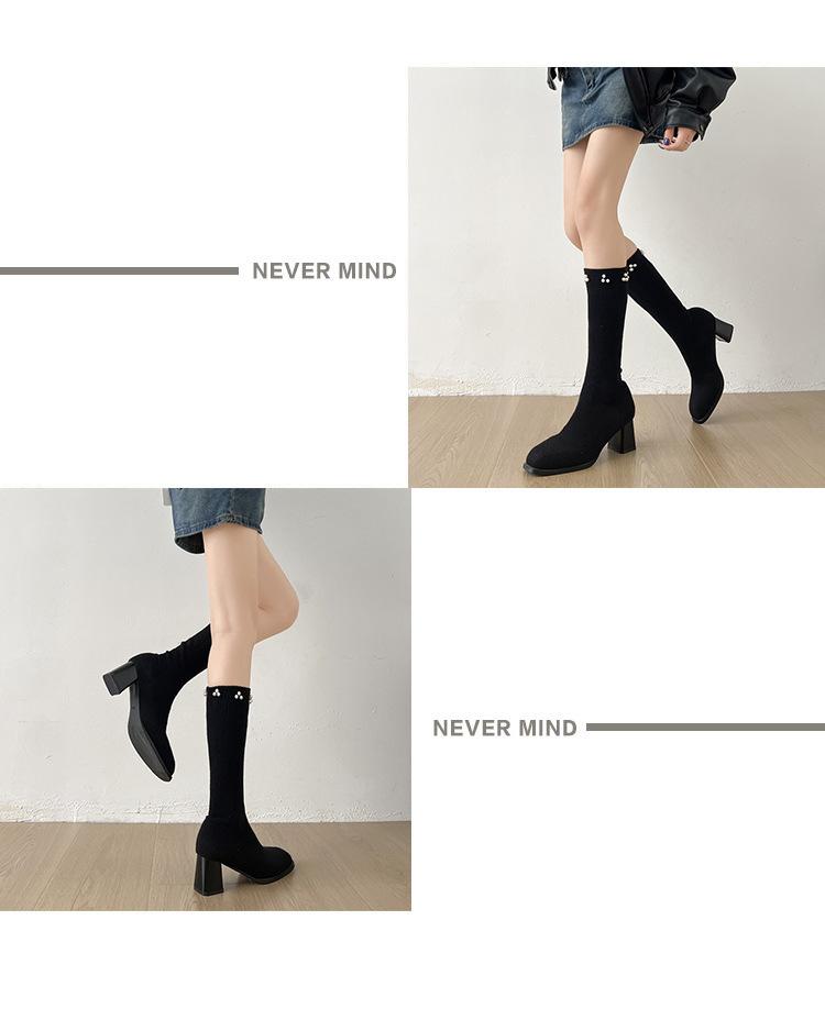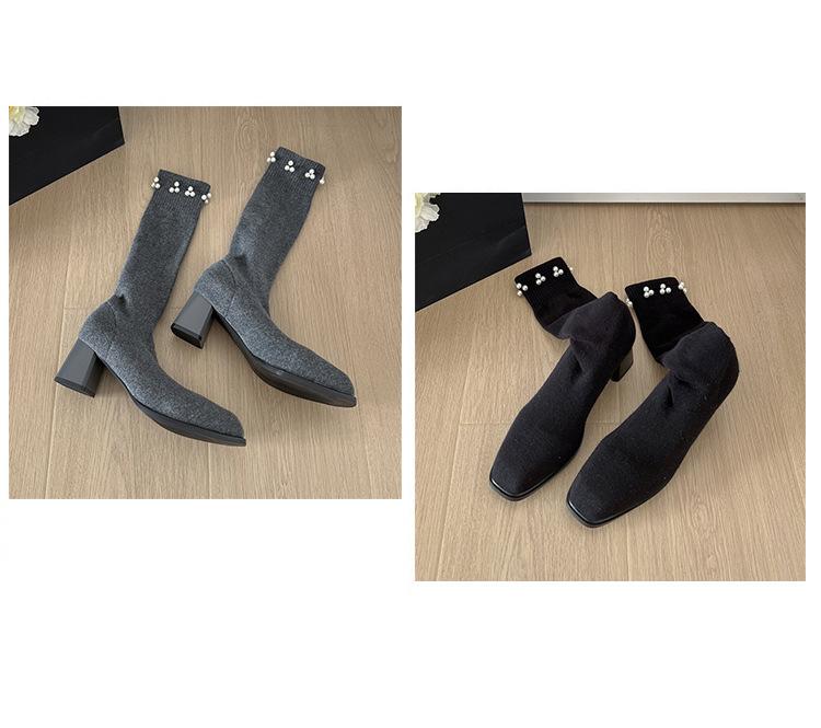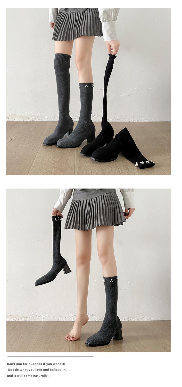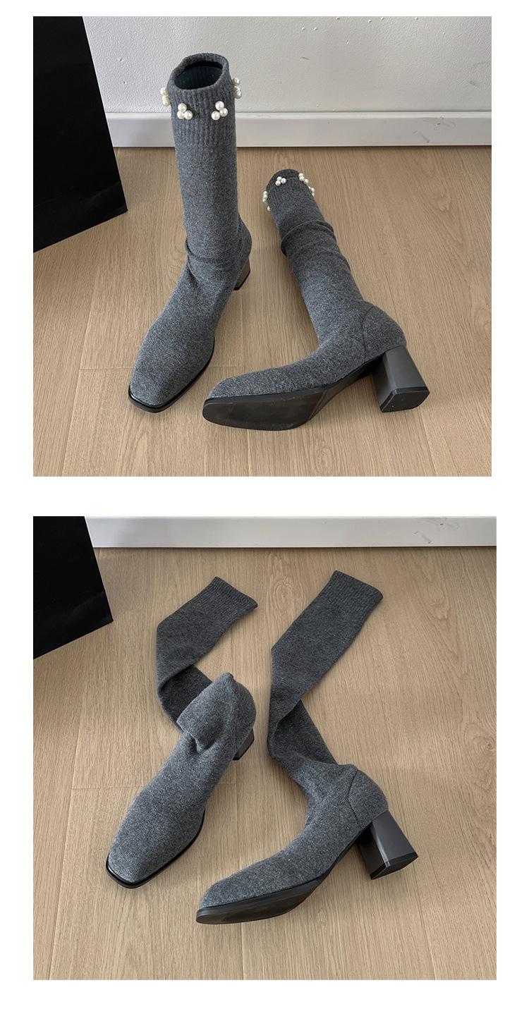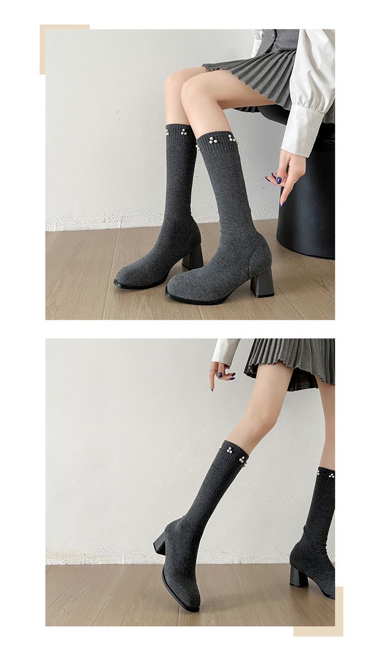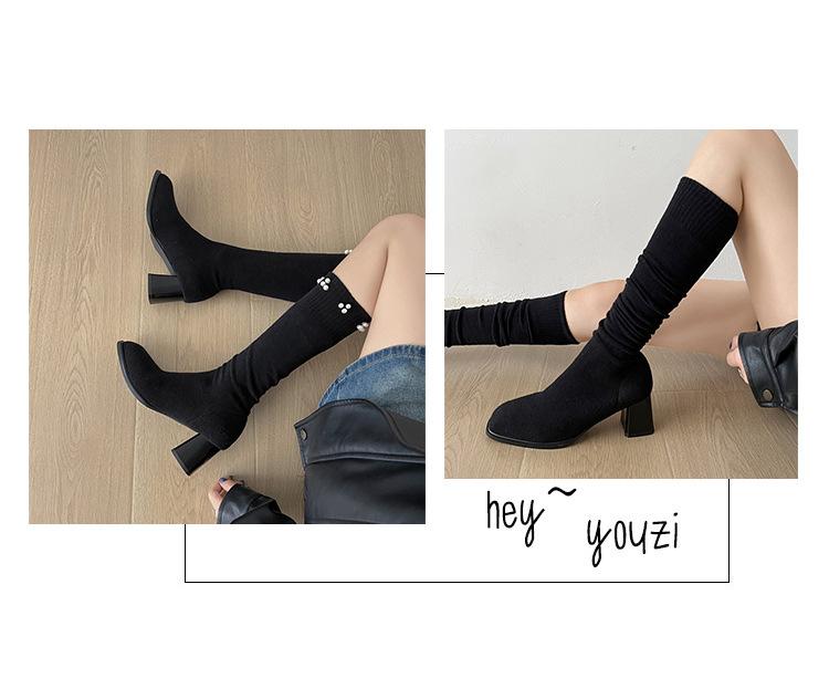 Botas de punto con tacón grueso, punta redonda pequeña, ajuste ceñido, otoño 2025, nuevas, de suela gruesa, casuales, versátiles, botas por encima de la rodilla, botas calcetín elásticas