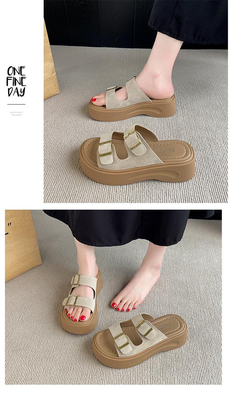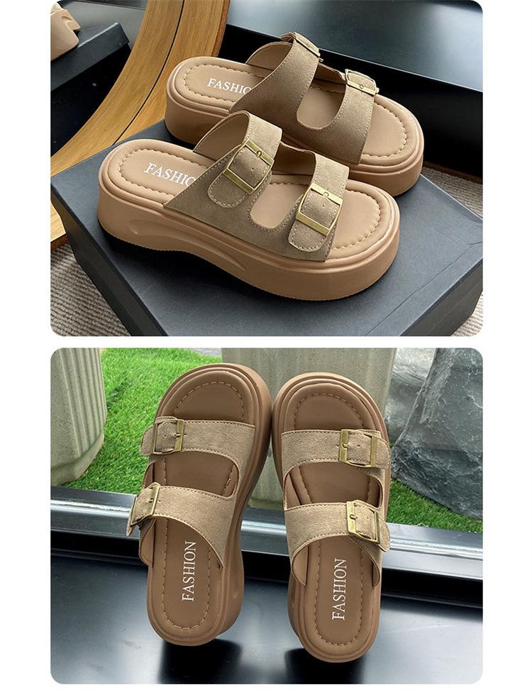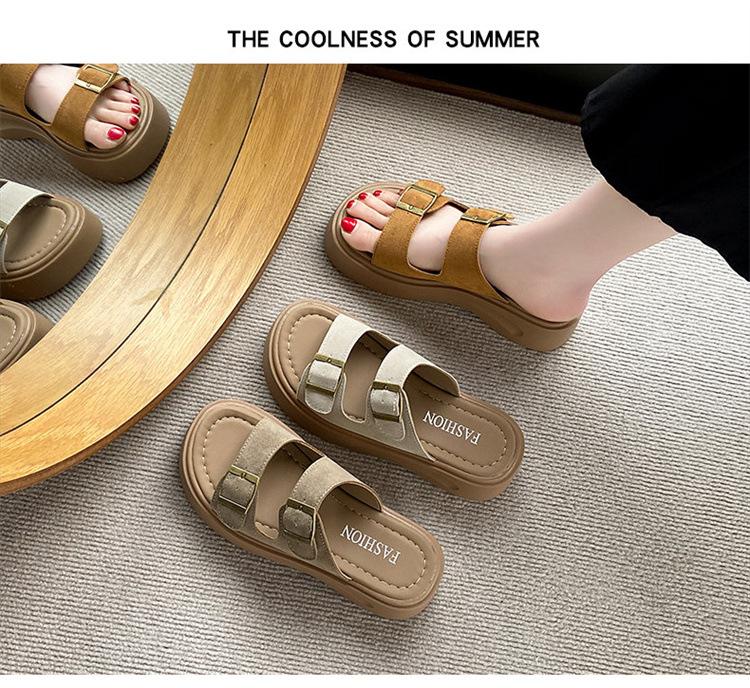 Sandalias y pantuflas de suela gruesa zapatos de mujer verano para exterior 2025 nuevo estilo con falda vacaciones playa pantuflas Birkenn para mujer