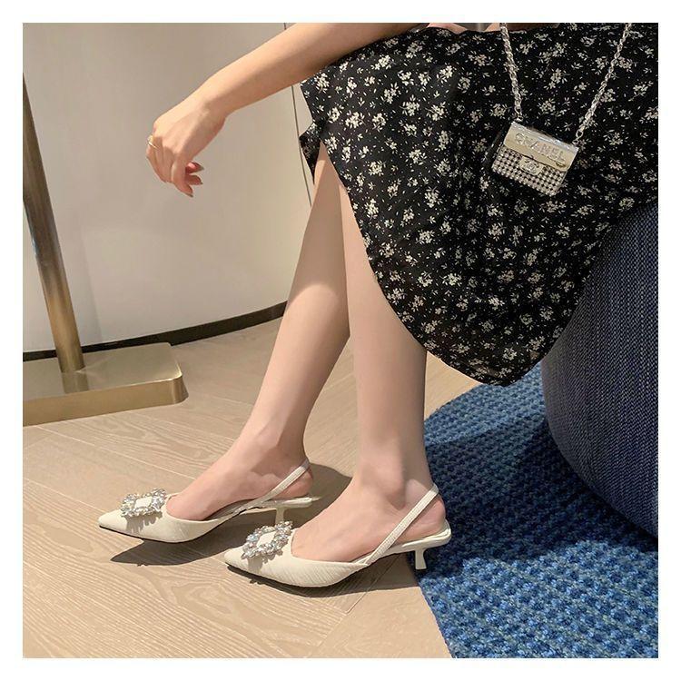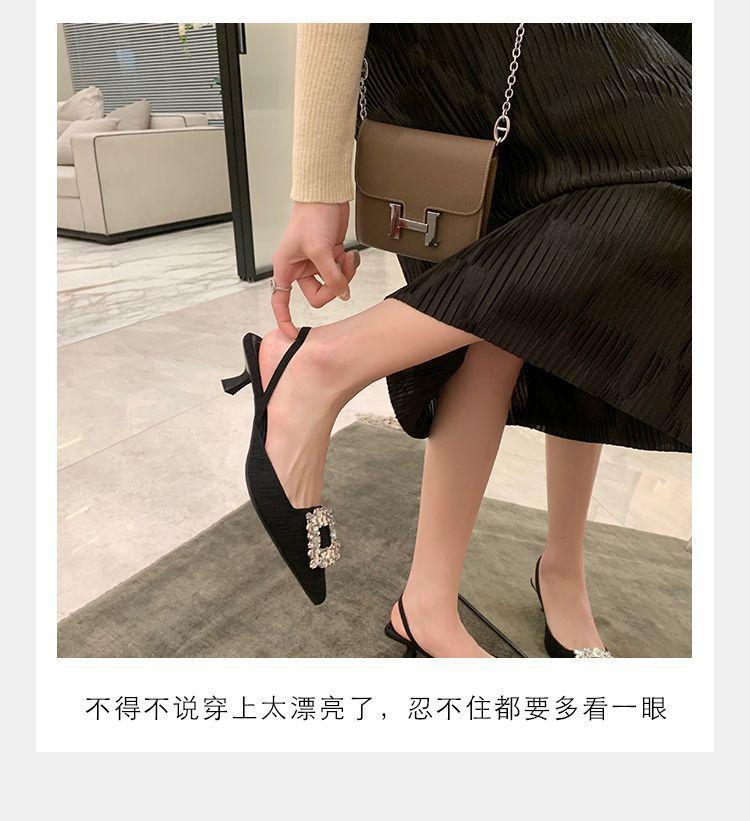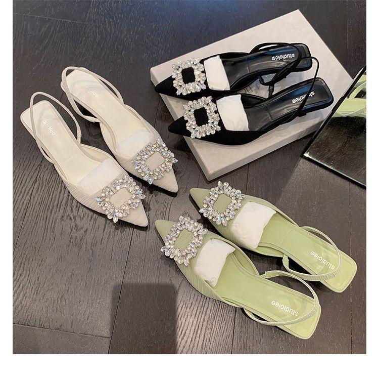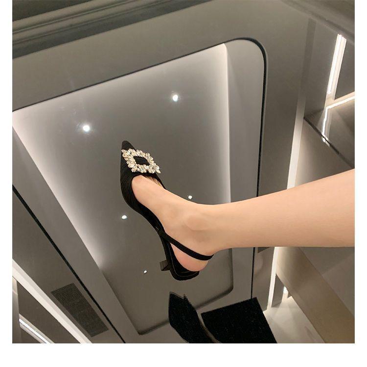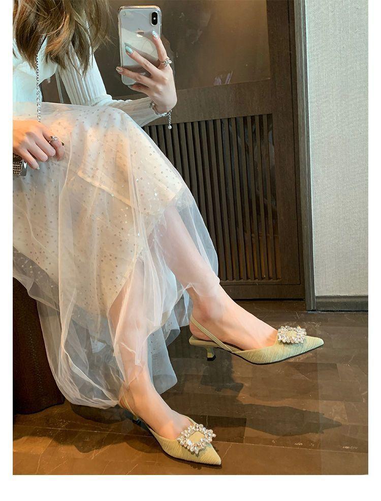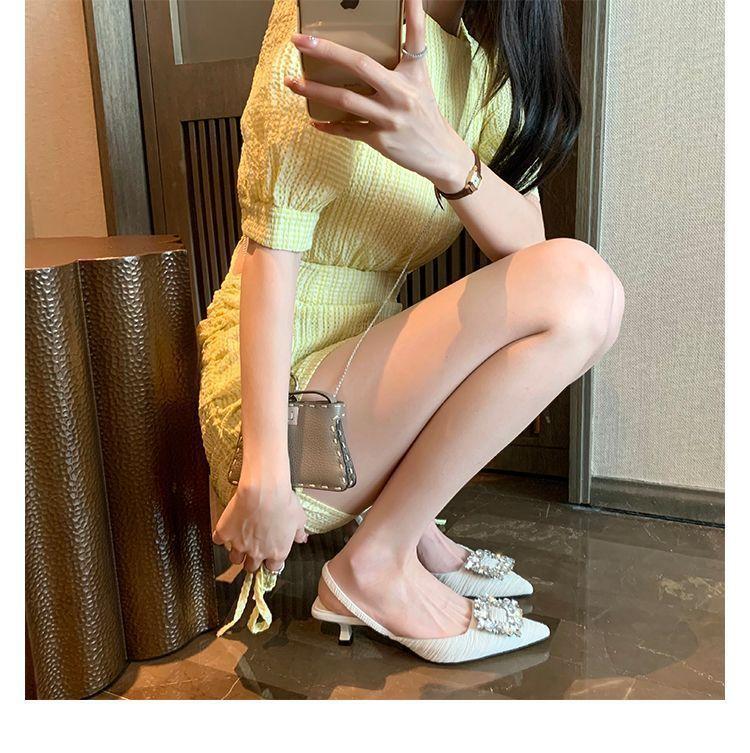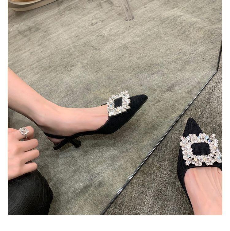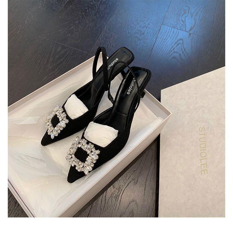 Zapatos de Nicho Baotou Franceses de Tacón Alto 2025 Nuevo Primavera y Verano Stiletto Tacón Medio Sandalias de Pedrería Zapatos de Mujer