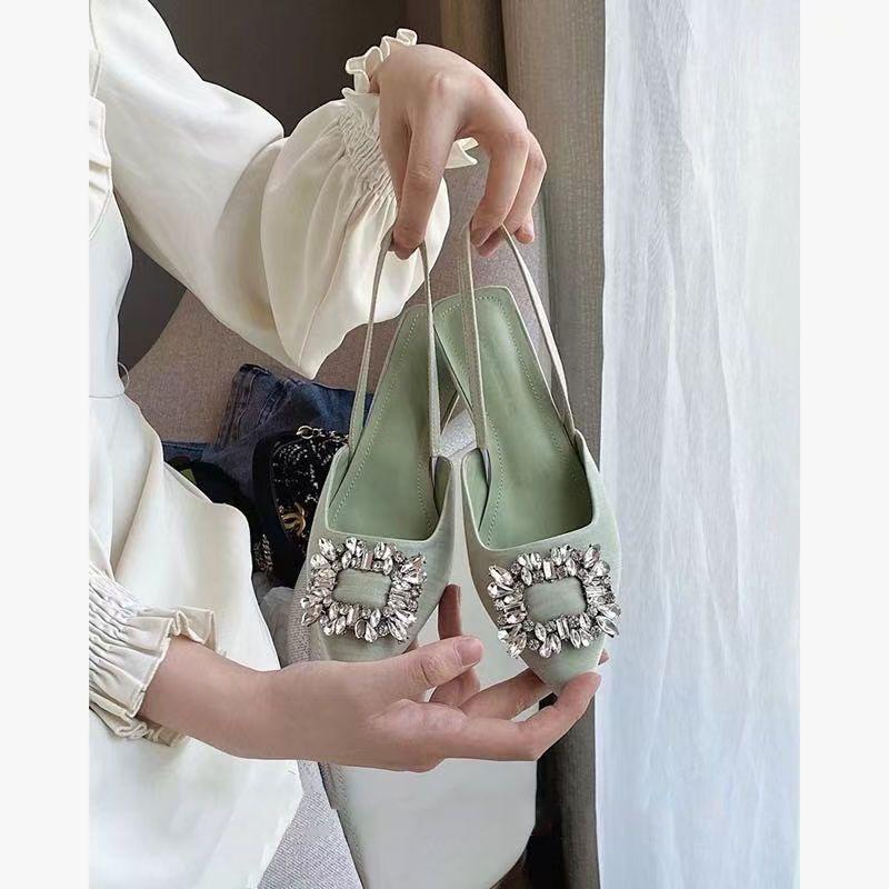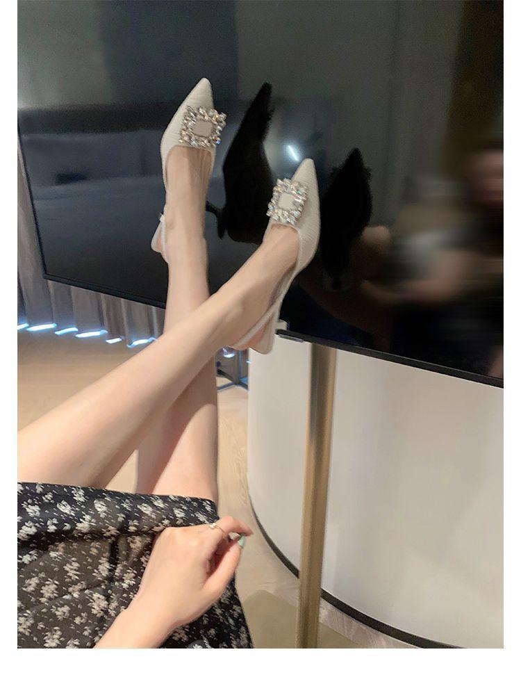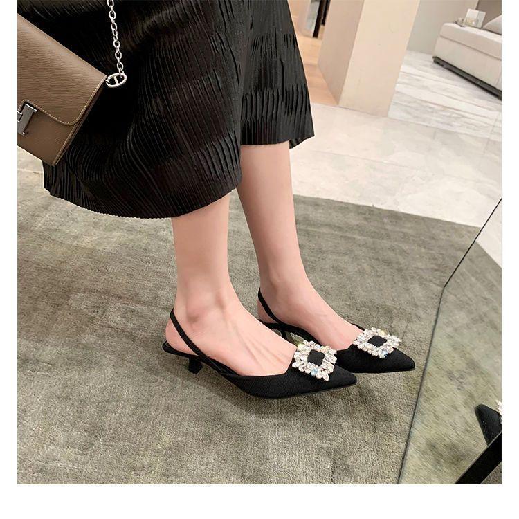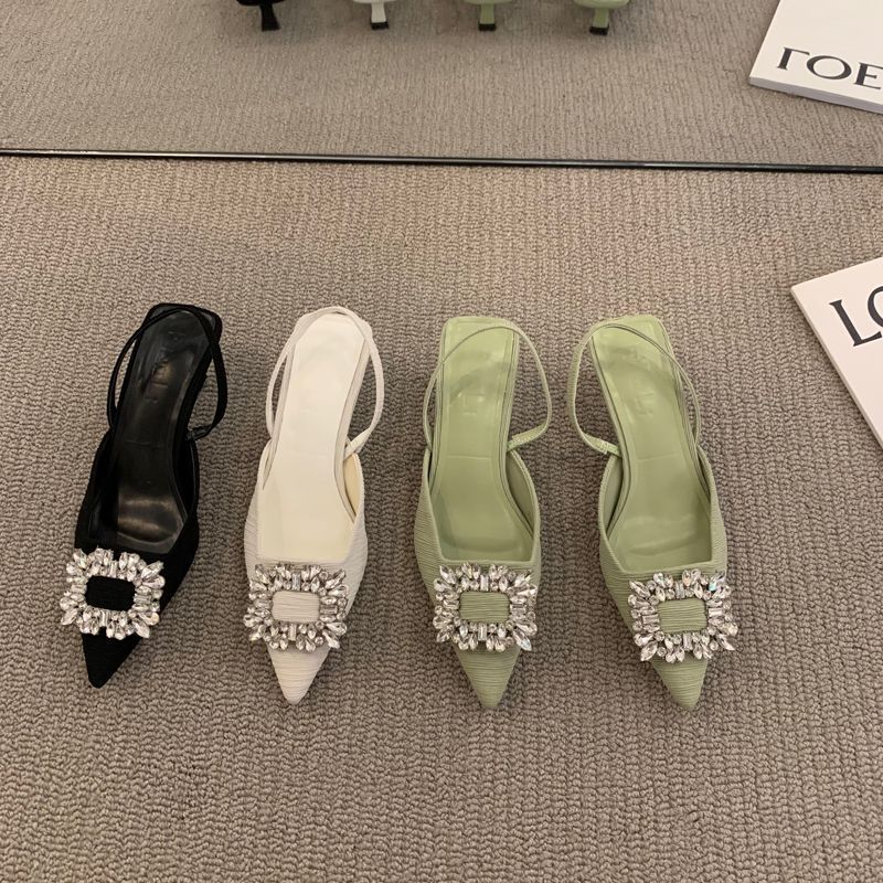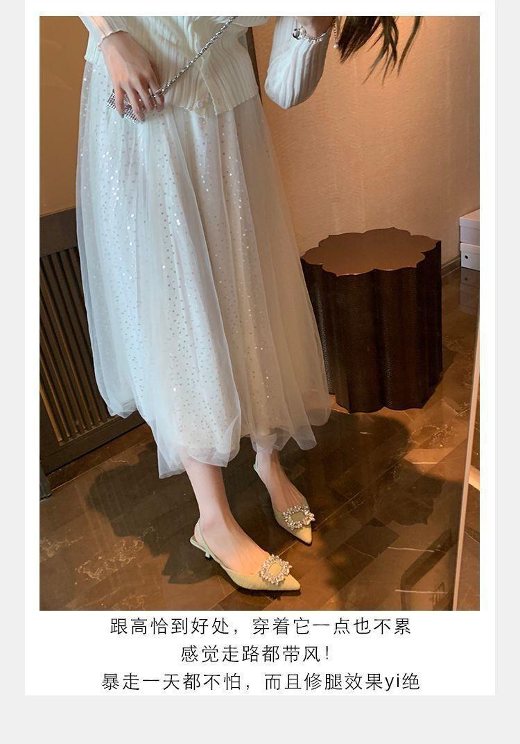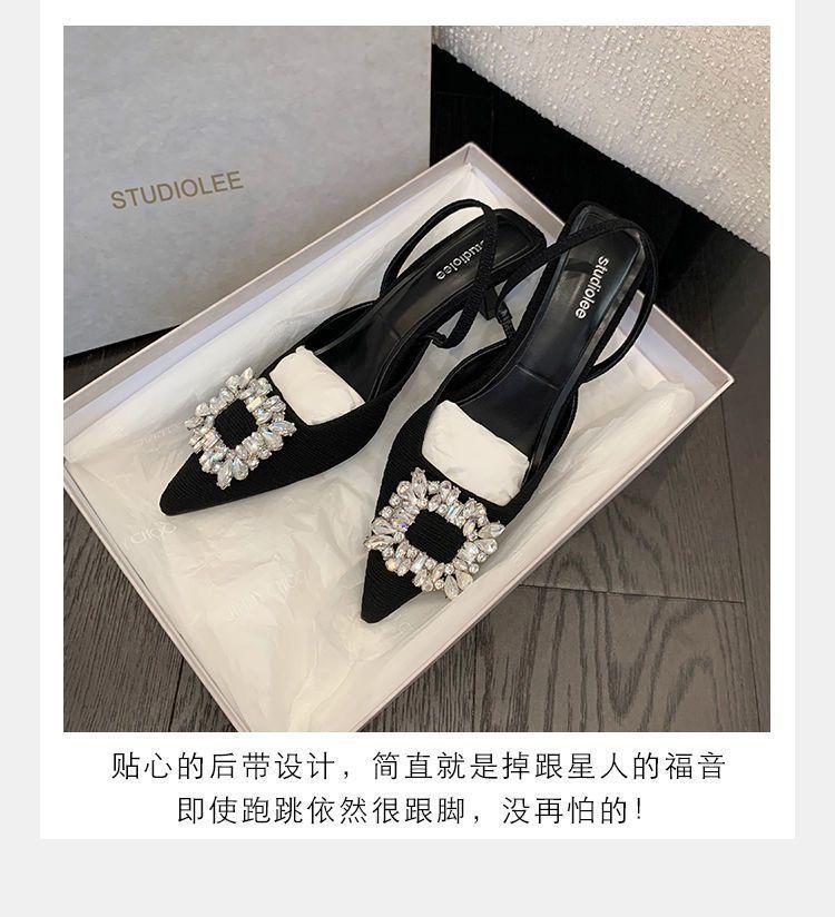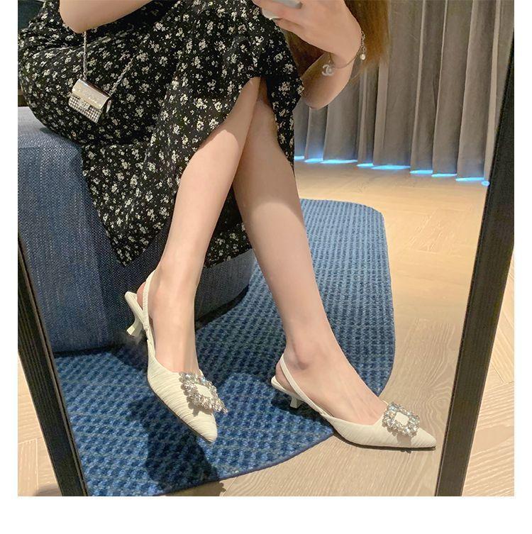 Zapatos de Nicho Baotou Franceses de Tacón Alto 2025 Nuevo Primavera y Verano Stiletto Tacón Medio Sandalias de Pedrería Zapatos de Mujer