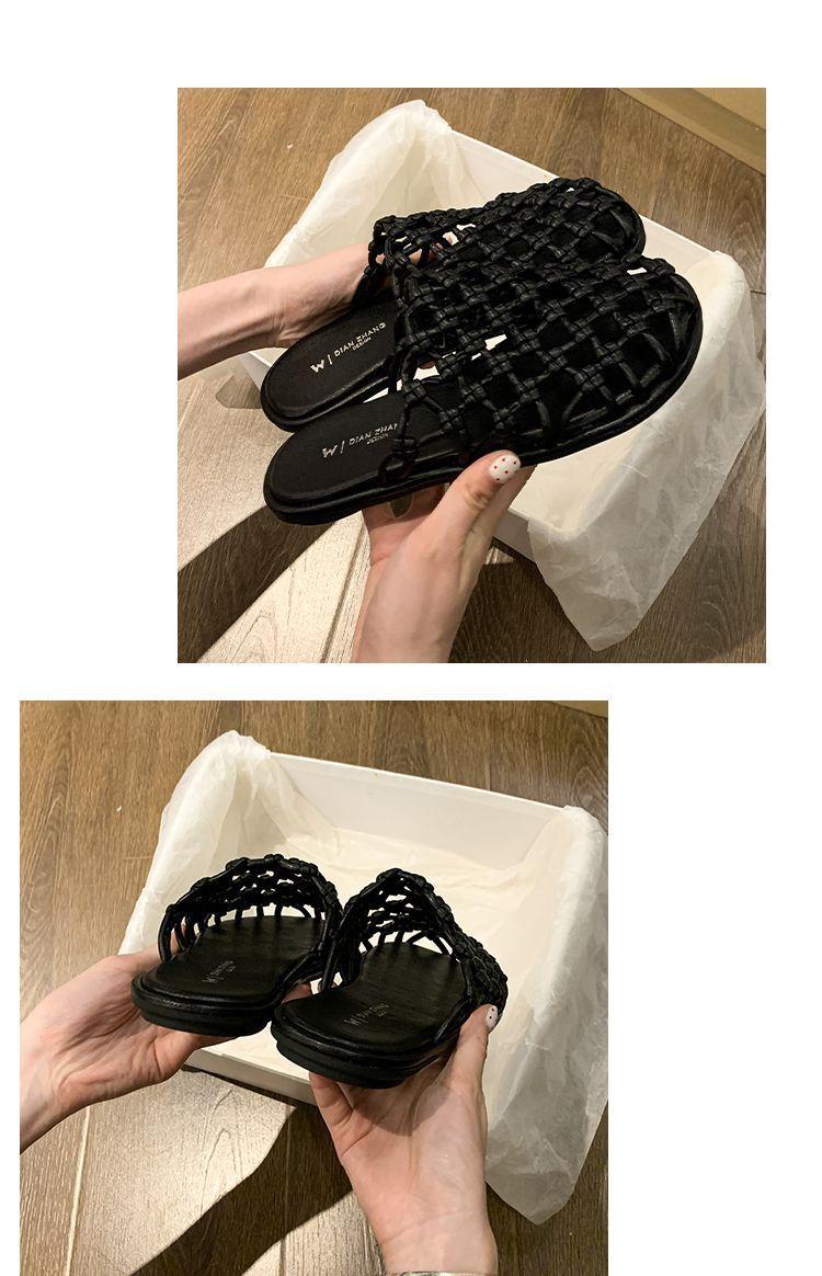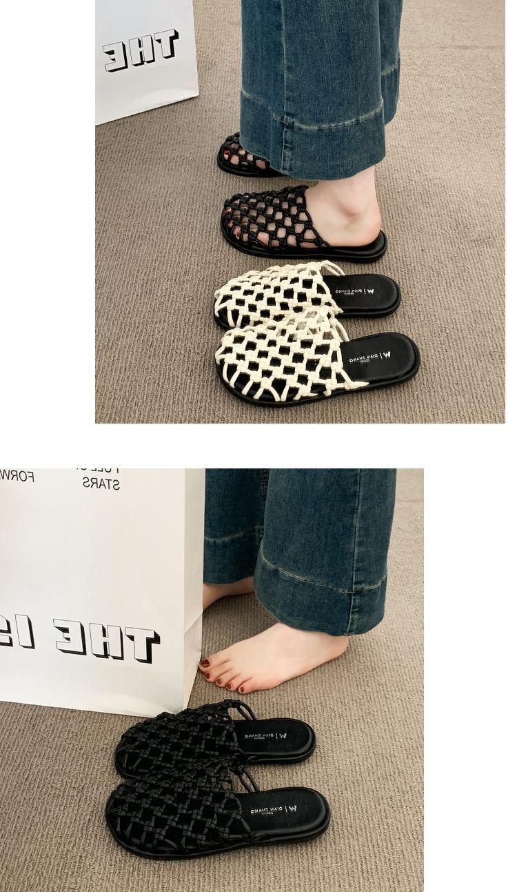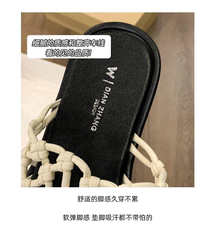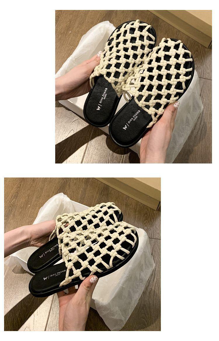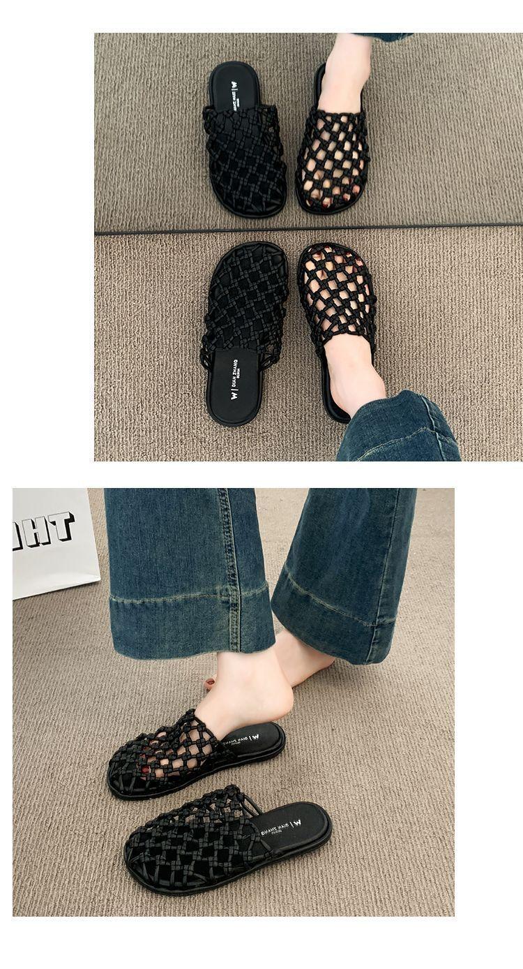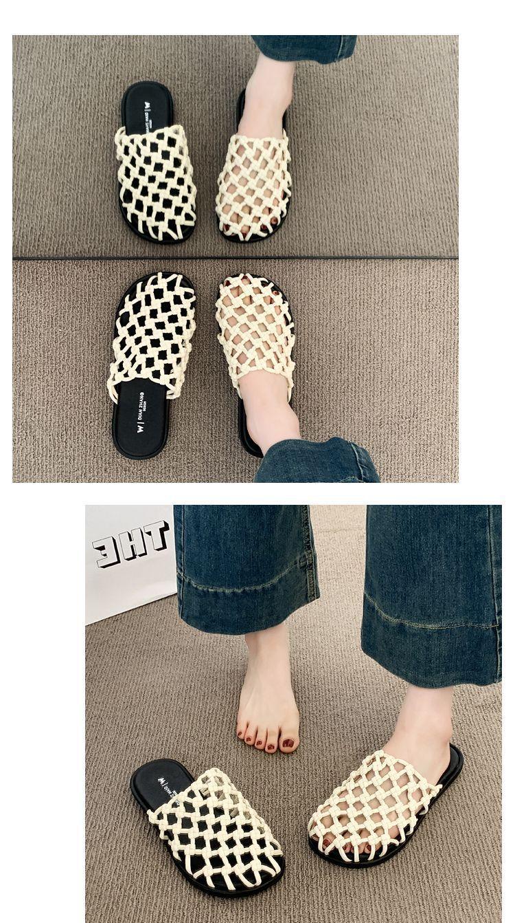 Sandalias Casuales de Punta Plana Transpirable para Mujer 2025 Nuevo Popular Nicho Tejidas Huecas Sandalias para Mujer Verano para Exterior