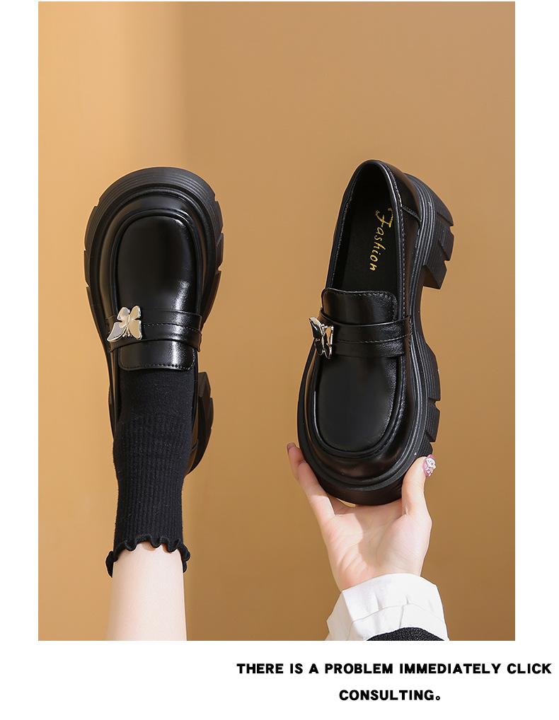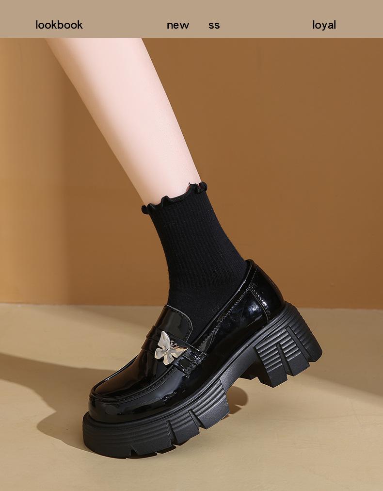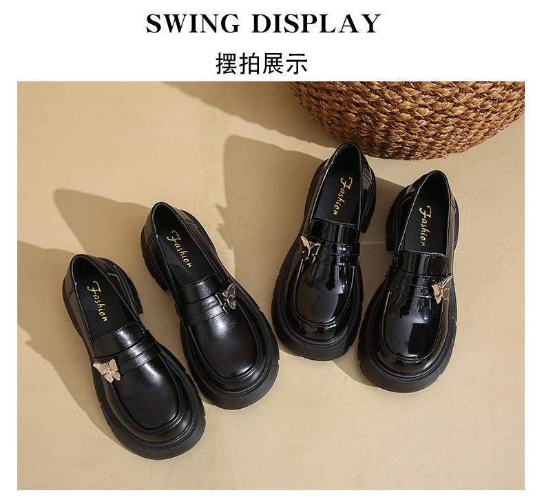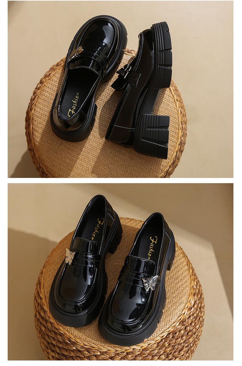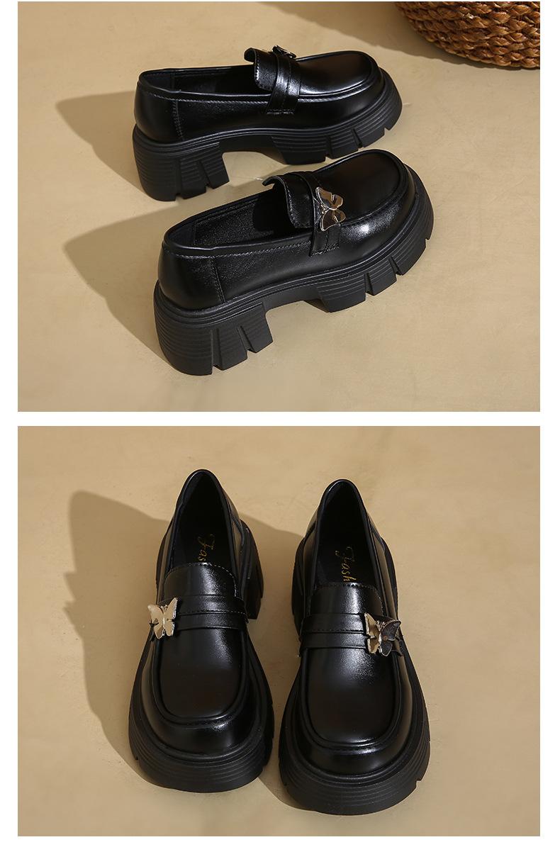 Zapatos de Cuero Pequeños de Estilo Británico con Suela Gruesa Francesa para Mujer Otoño 2025 Nuevo Negro Slip-On Mariposa Zapatos Individuales Mocasines Mujer