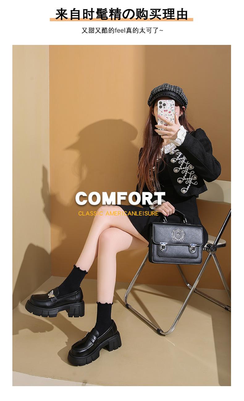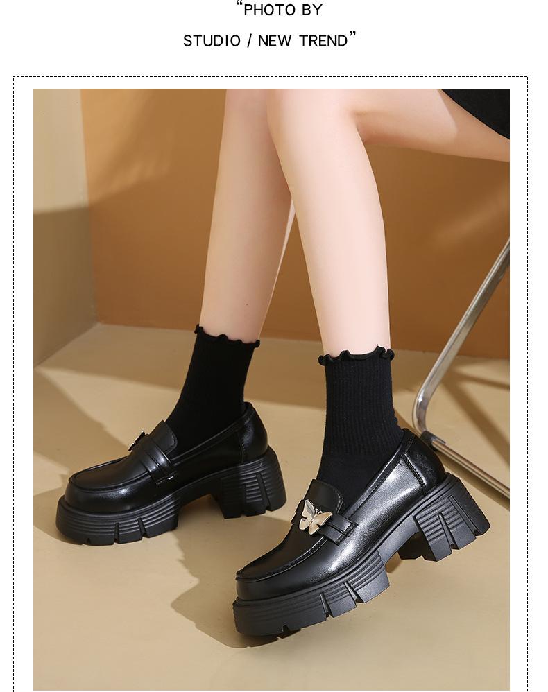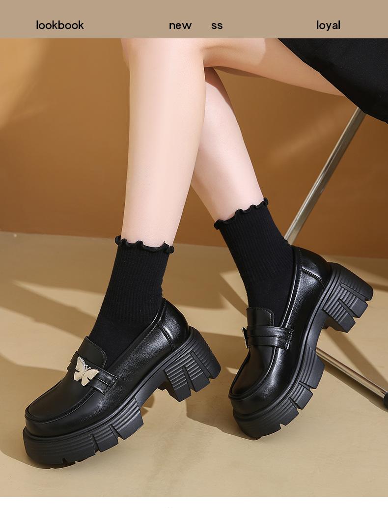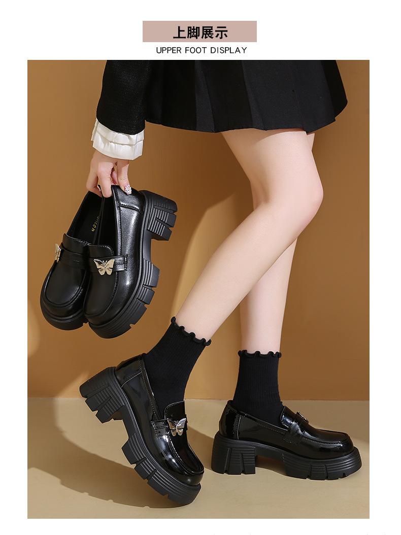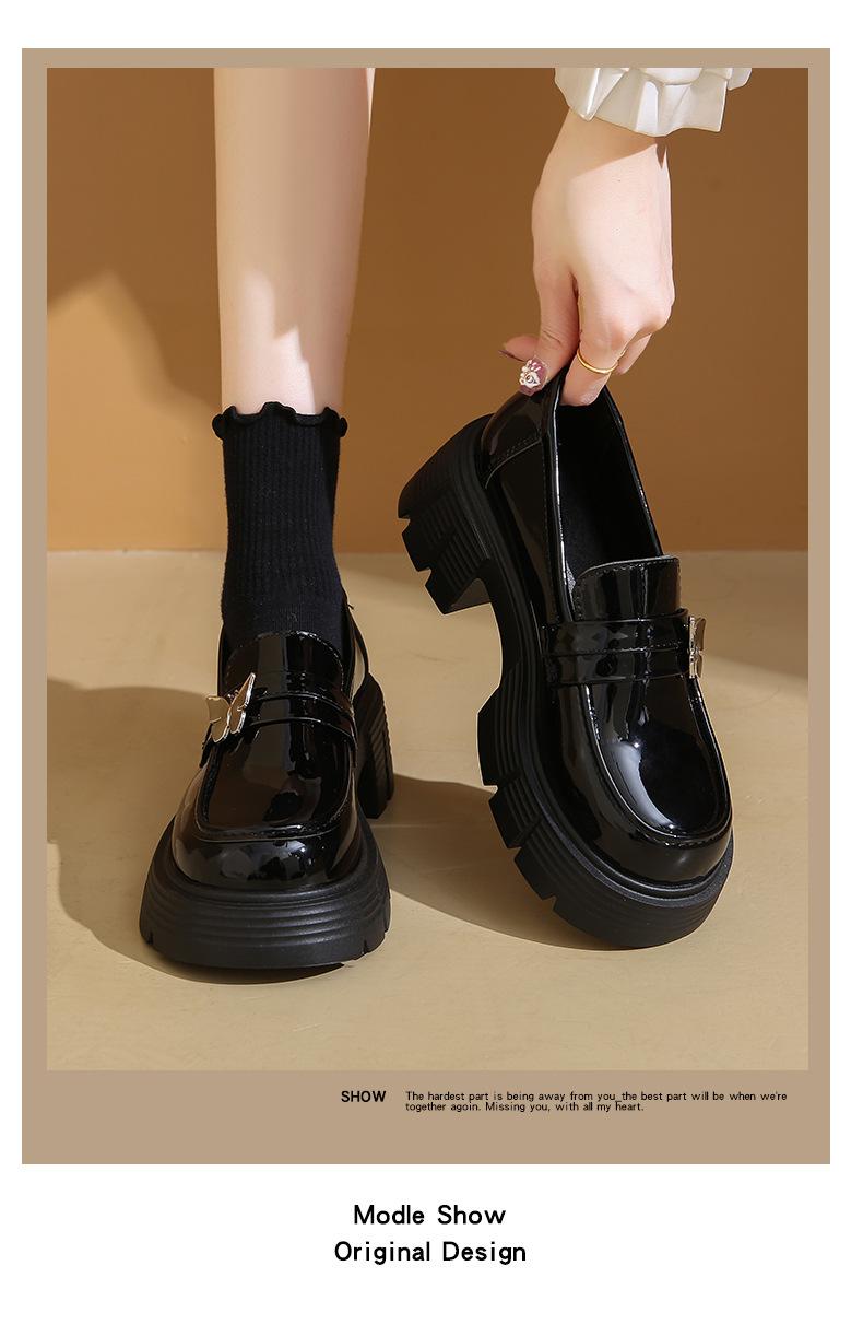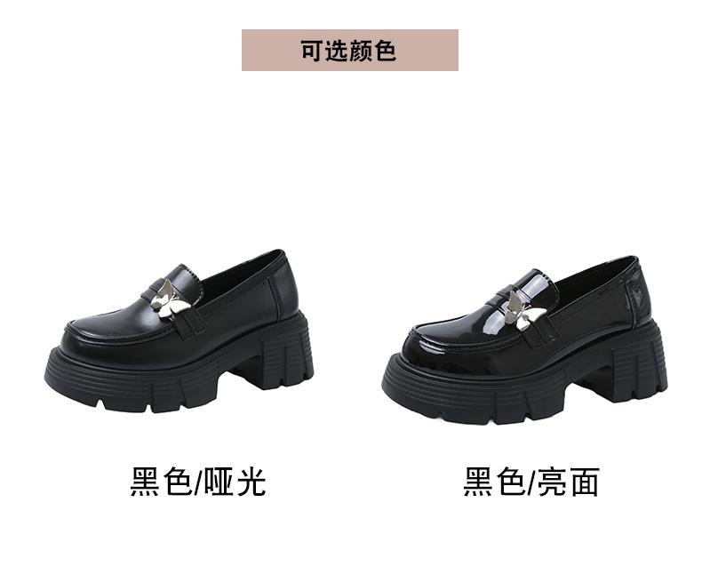 Zapatos de Cuero Pequeños de Estilo Británico con Suela Gruesa Francesa para Mujer Otoño 2025 Nuevo Negro Slip-On Mariposa Zapatos Individuales Mocasines Mujer