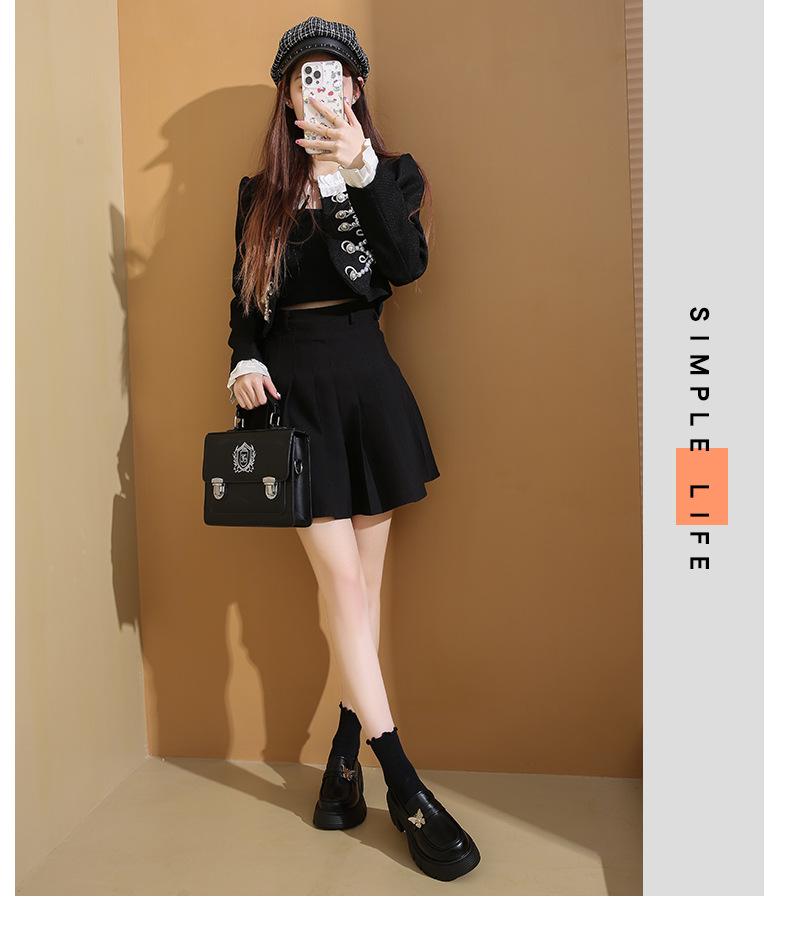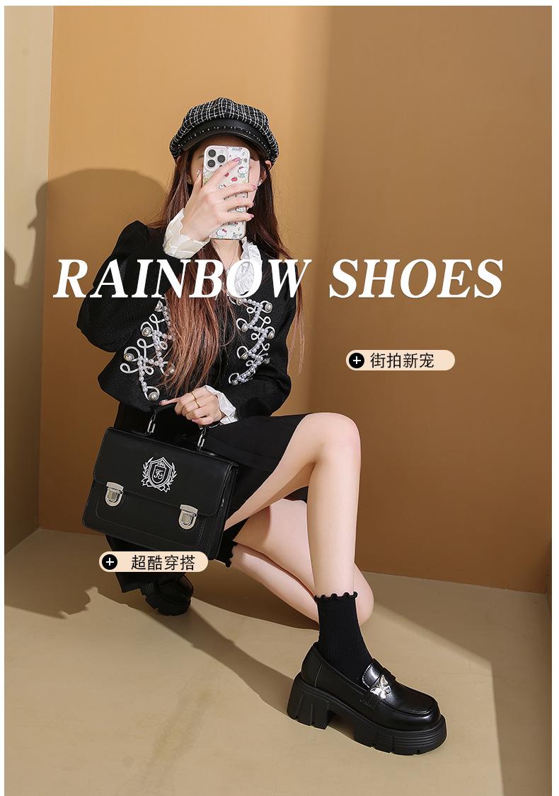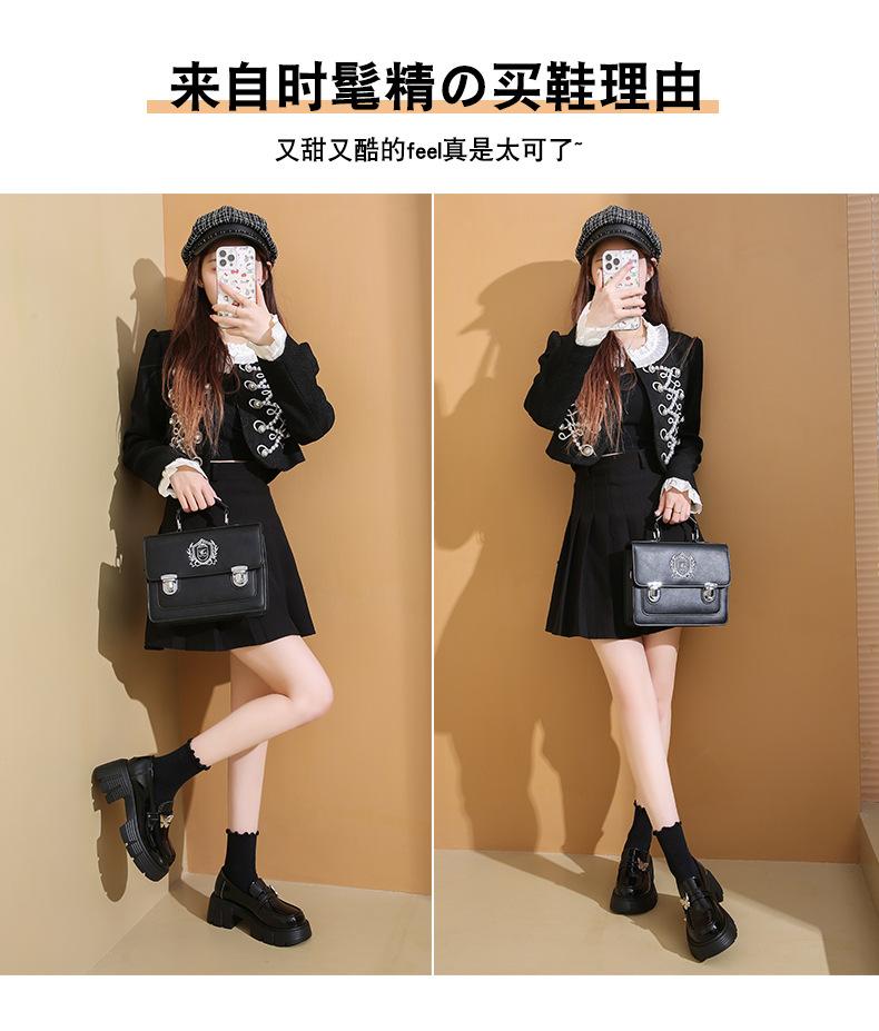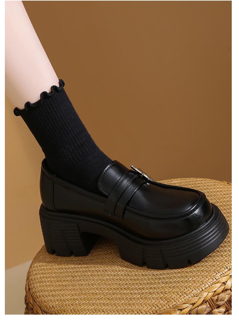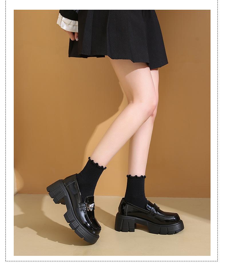 Zapatos de Cuero Pequeños de Estilo Británico con Suela Gruesa Francesa para Mujer Otoño 2025 Nuevo Negro Slip-On Mariposa Zapatos Individuales Mocasines Mujer