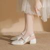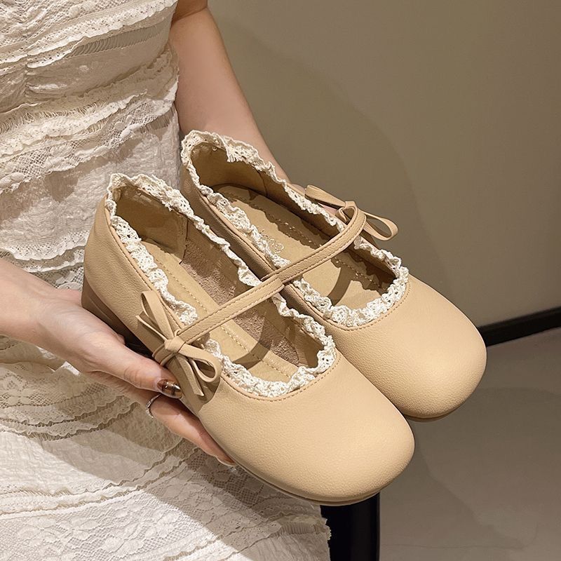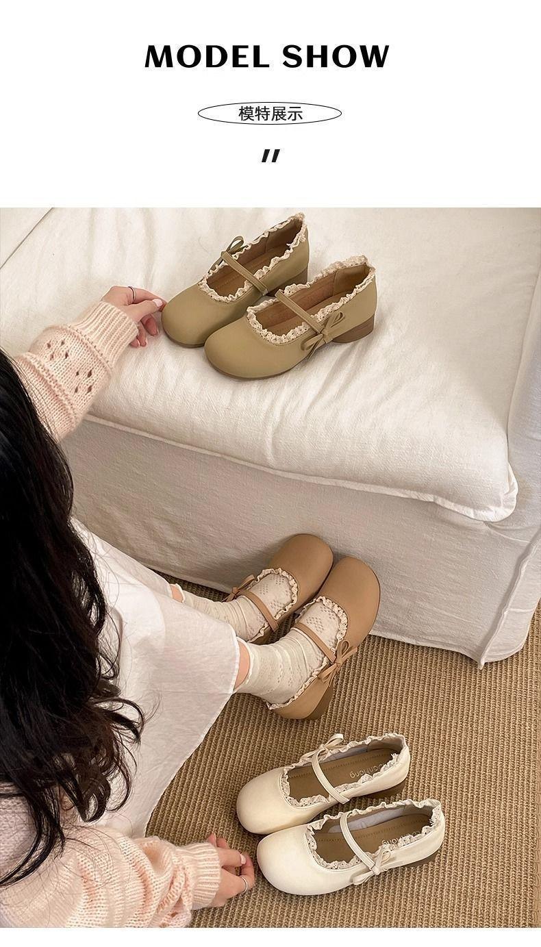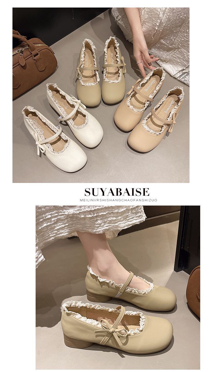 Zapatos Mary Jane franceses de tacón bajo, zapatos de cuero pequeños de boca baja para mujer, zapatos de abuelita de estilo suave nuevos para la primavera y el verano de 2025 para mujer