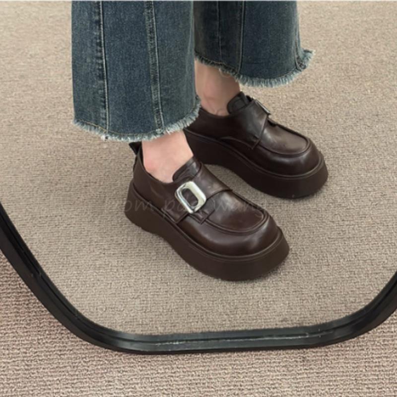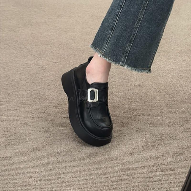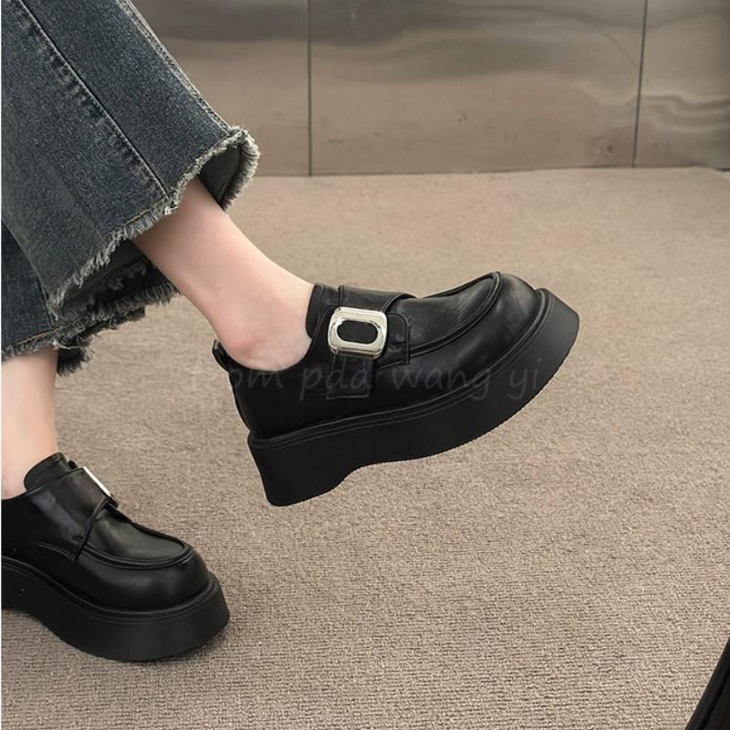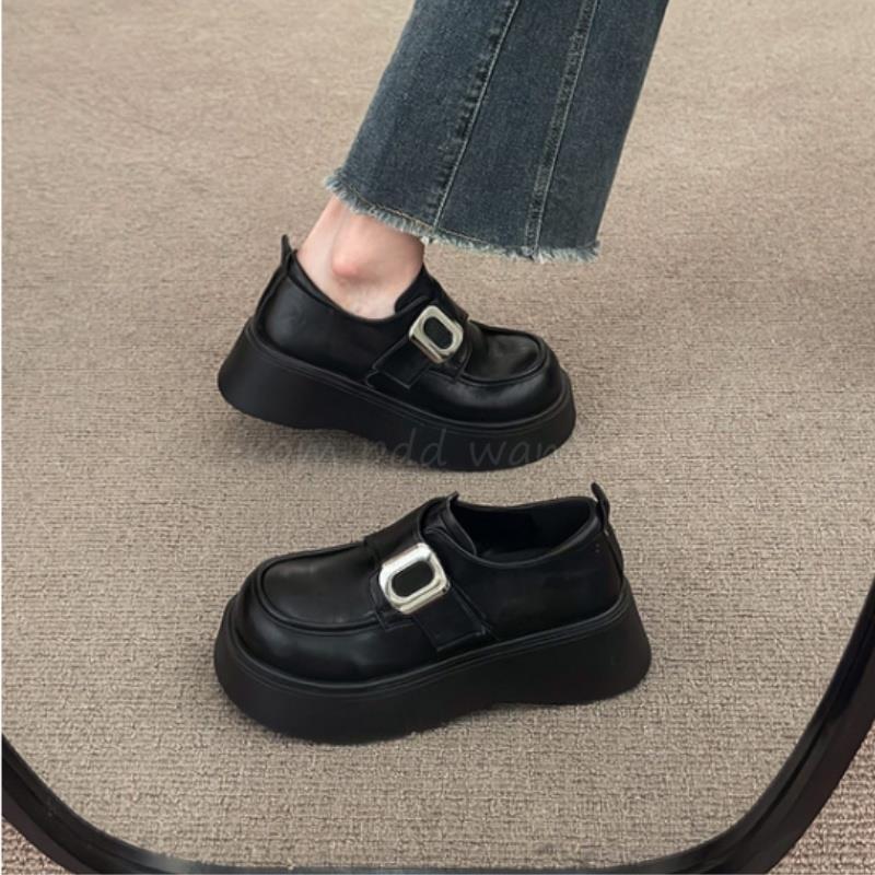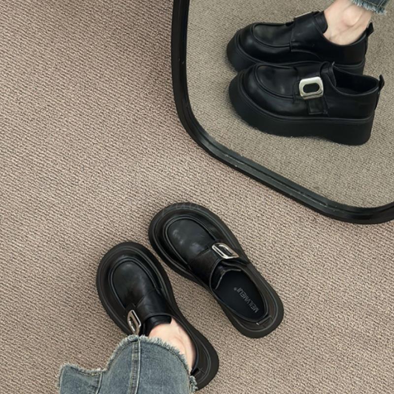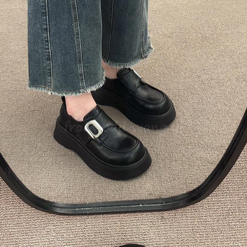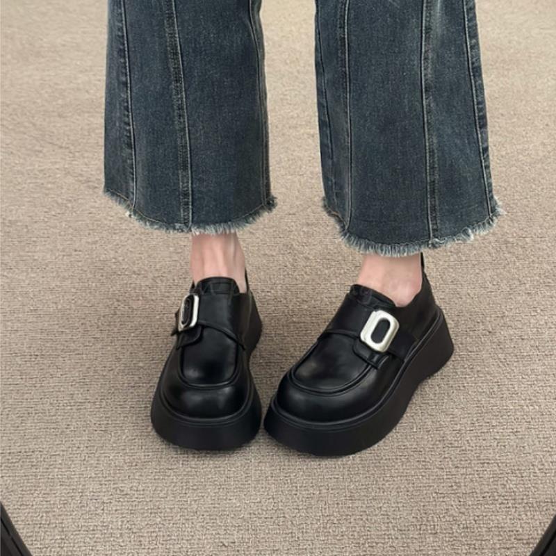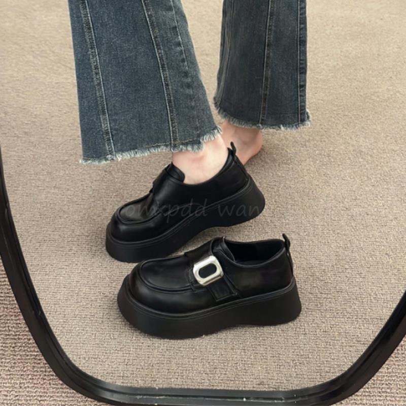 Mocasines negros de suela gruesa sin cordones versátiles zapatos individuales estilo británico retro mocasines mujer 2025 nuevo primavera y otoño