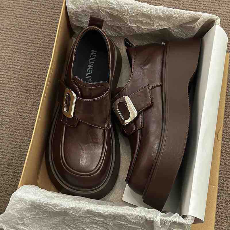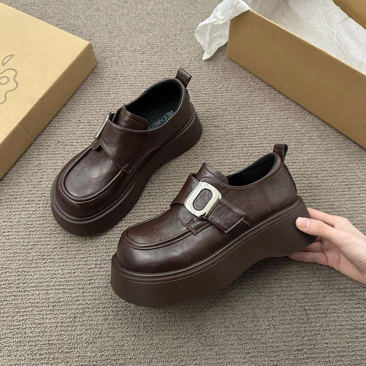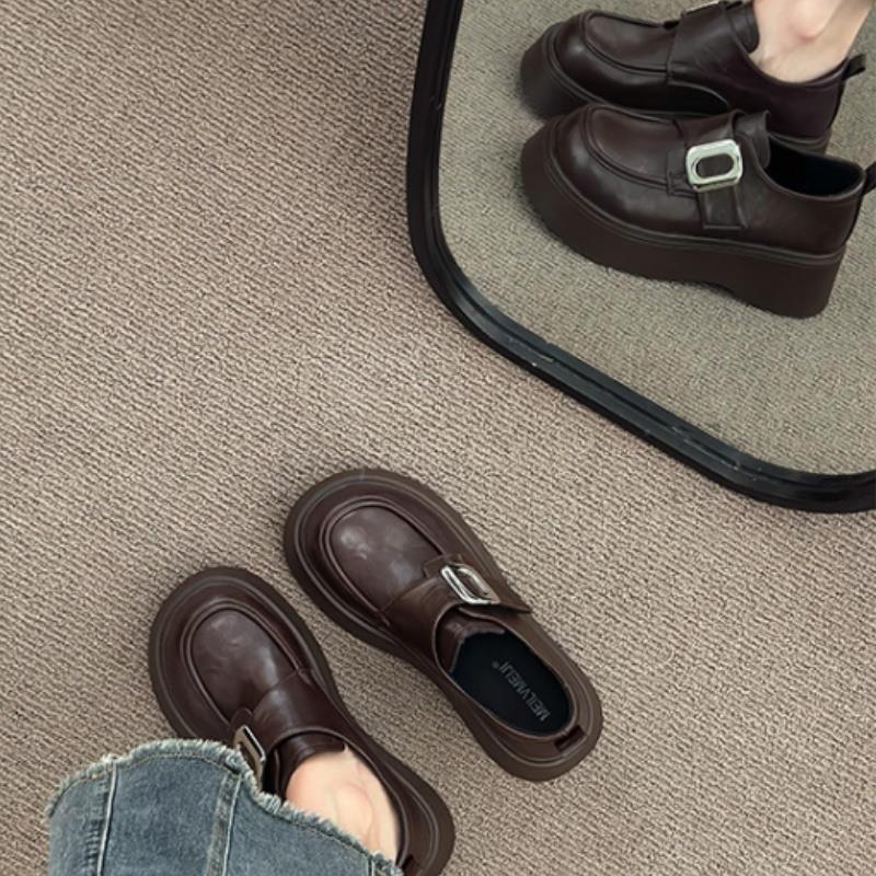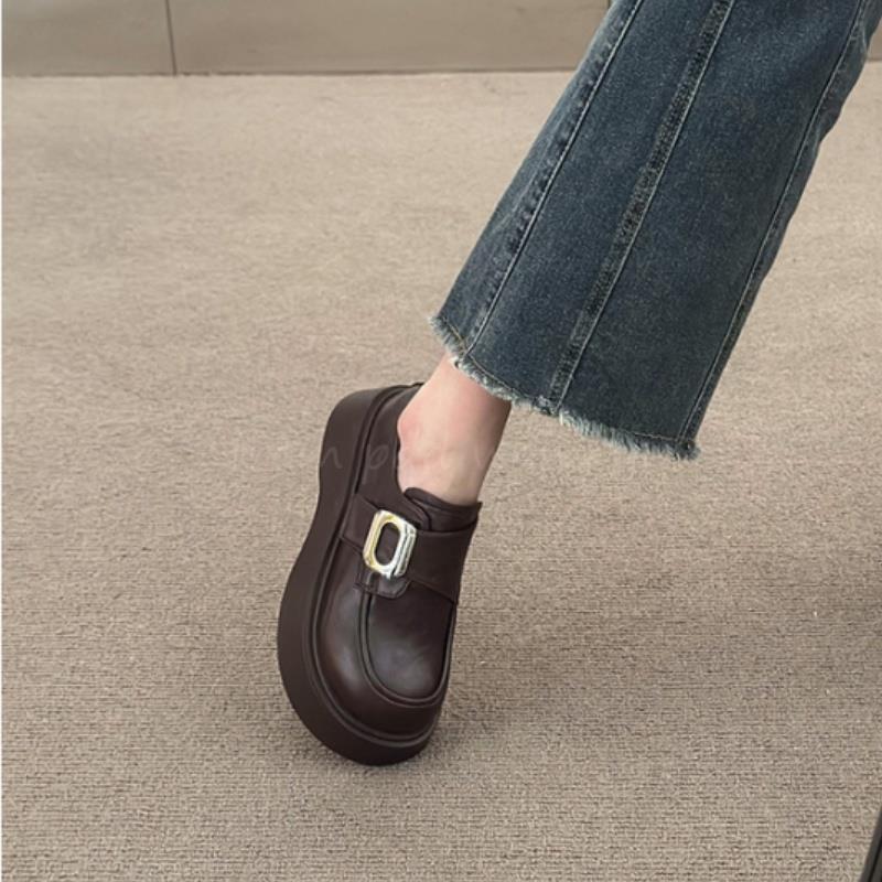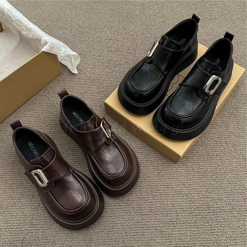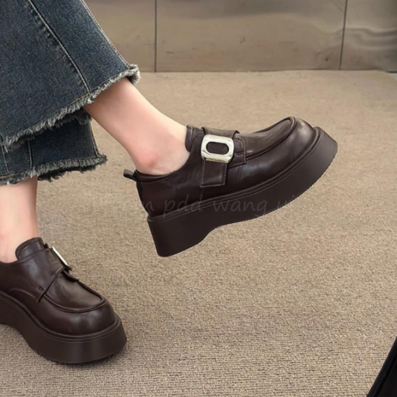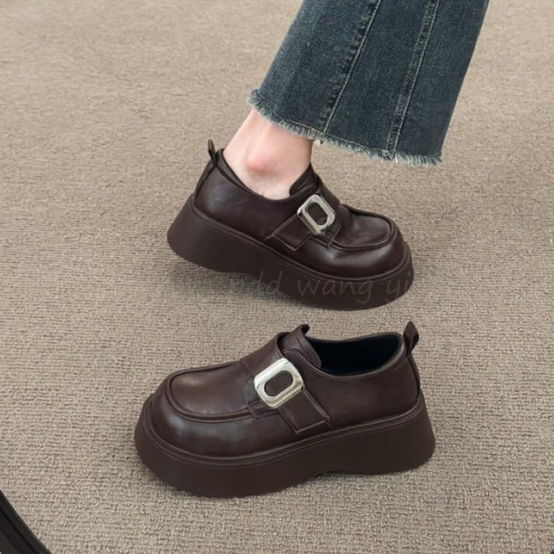 Mocasines negros de suela gruesa sin cordones versátiles zapatos individuales estilo británico retro mocasines mujer 2025 nuevo primavera y otoño