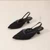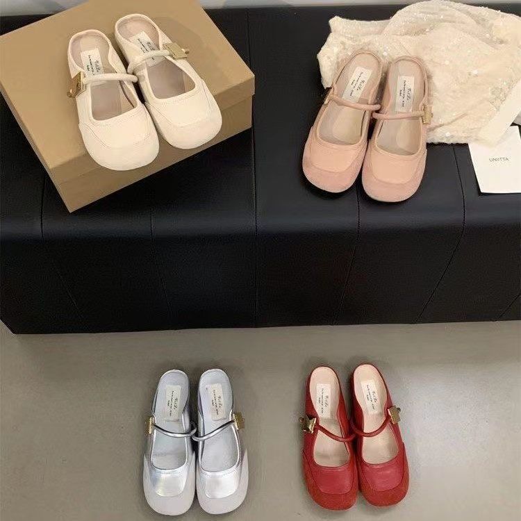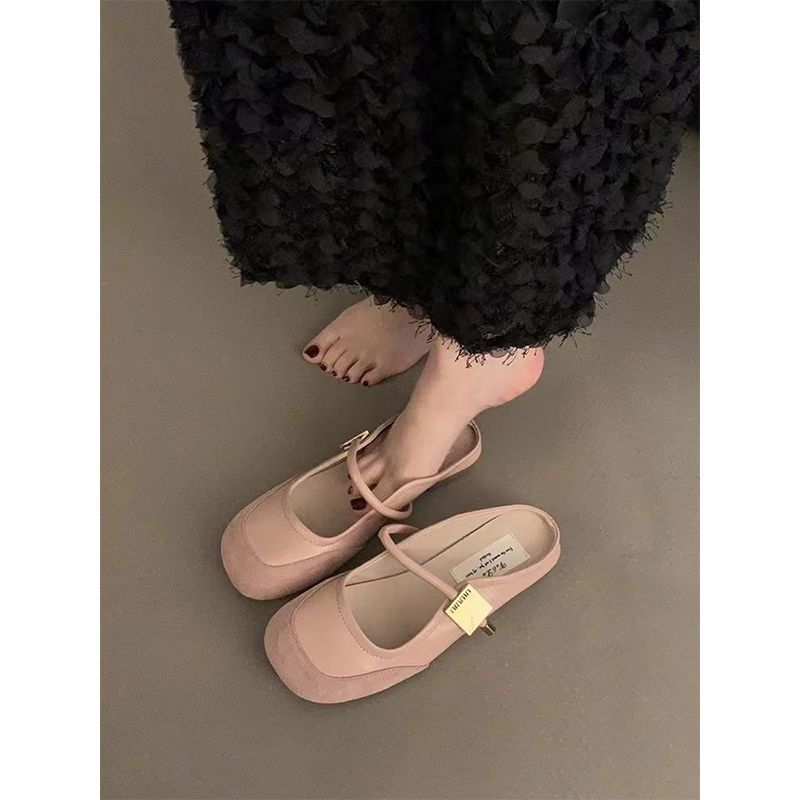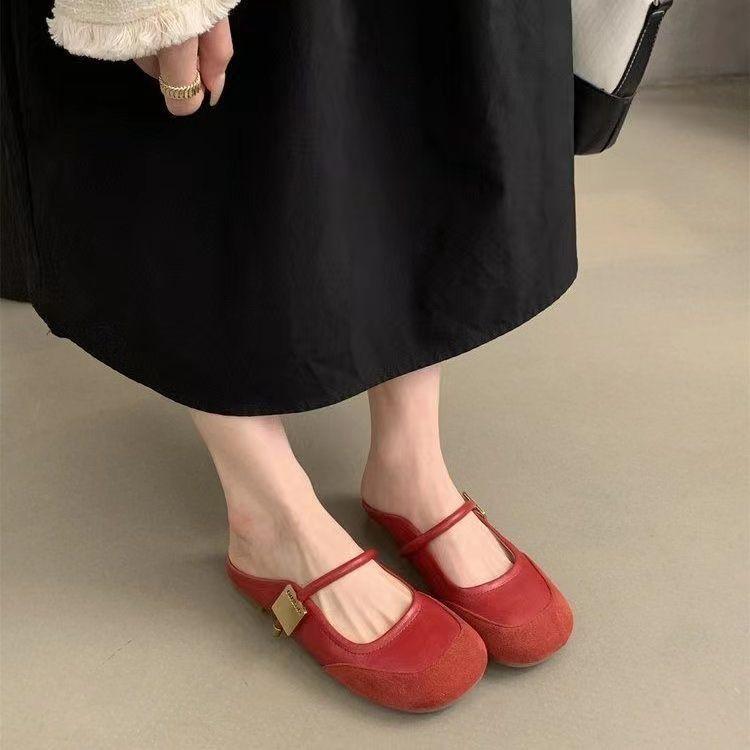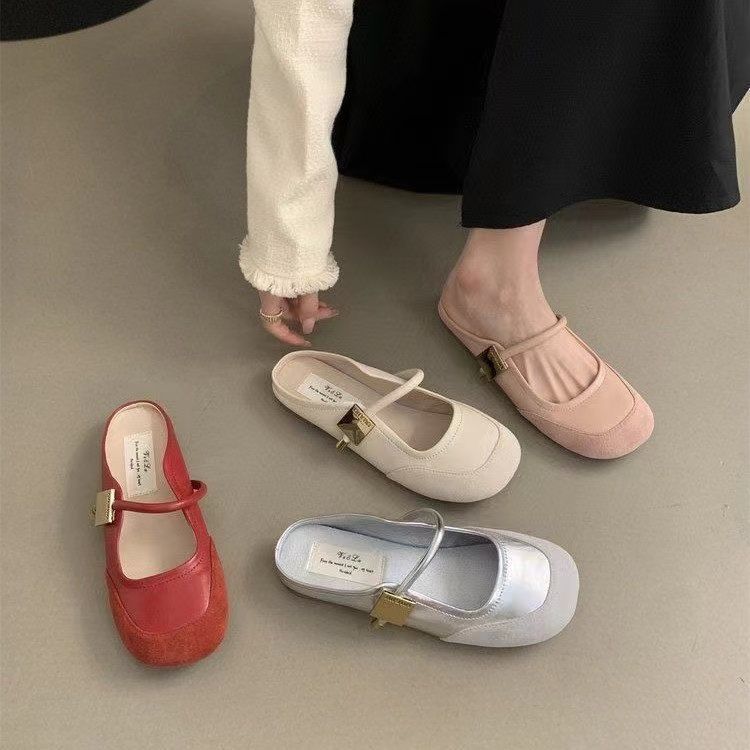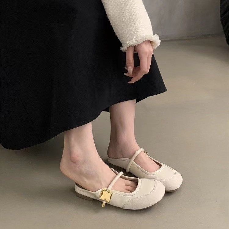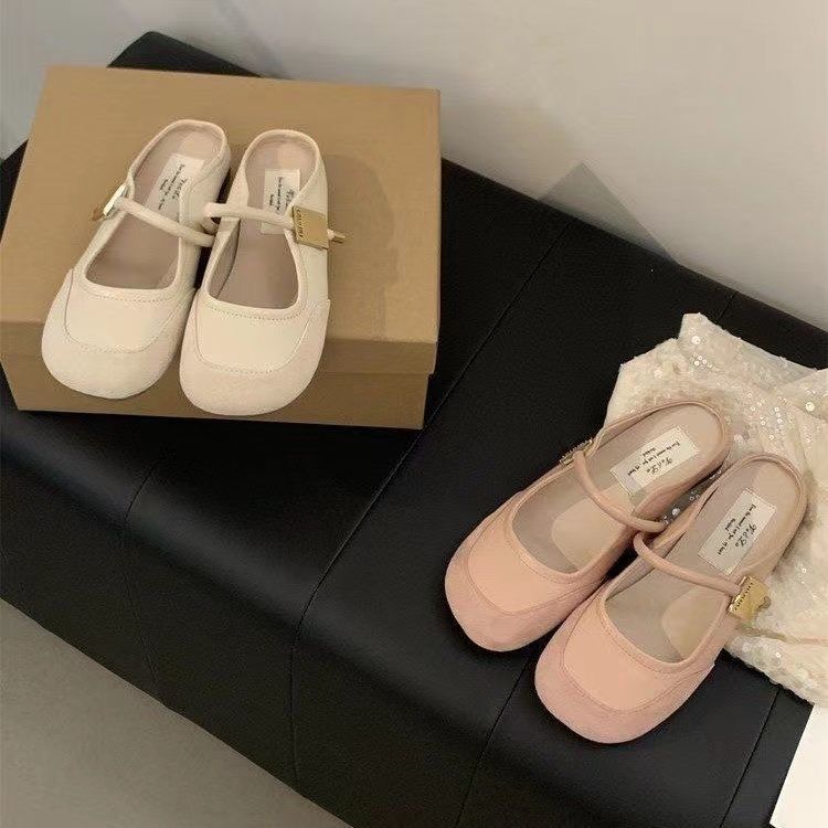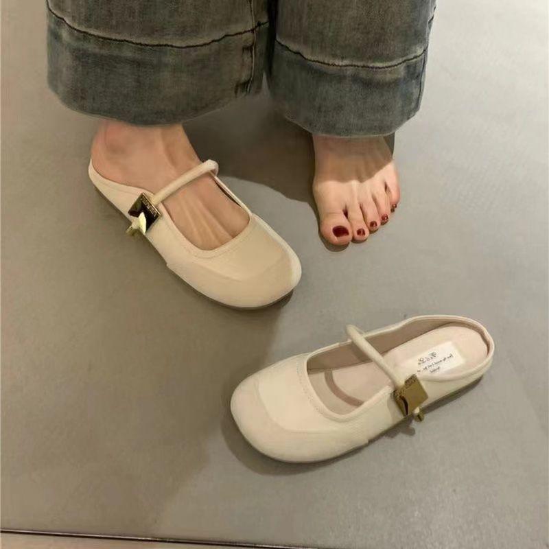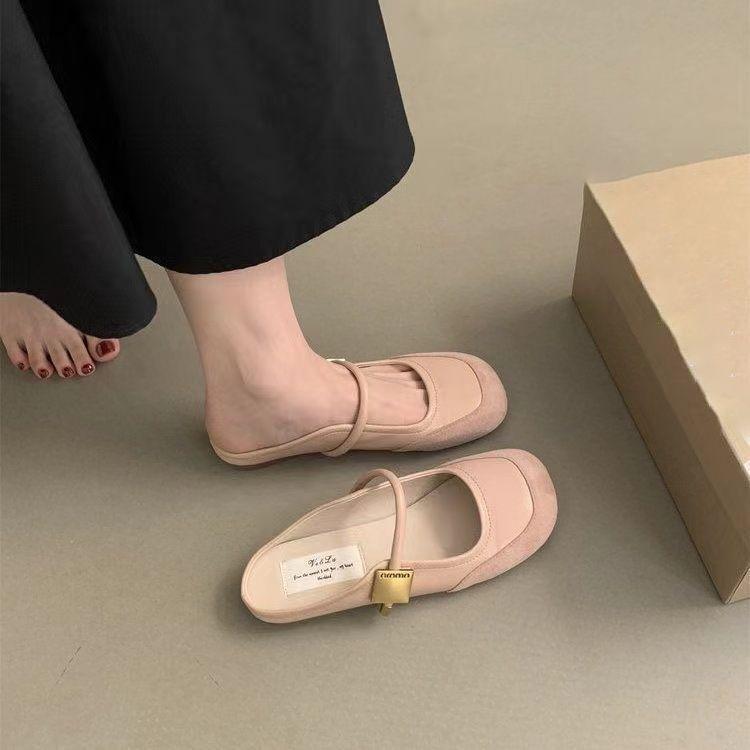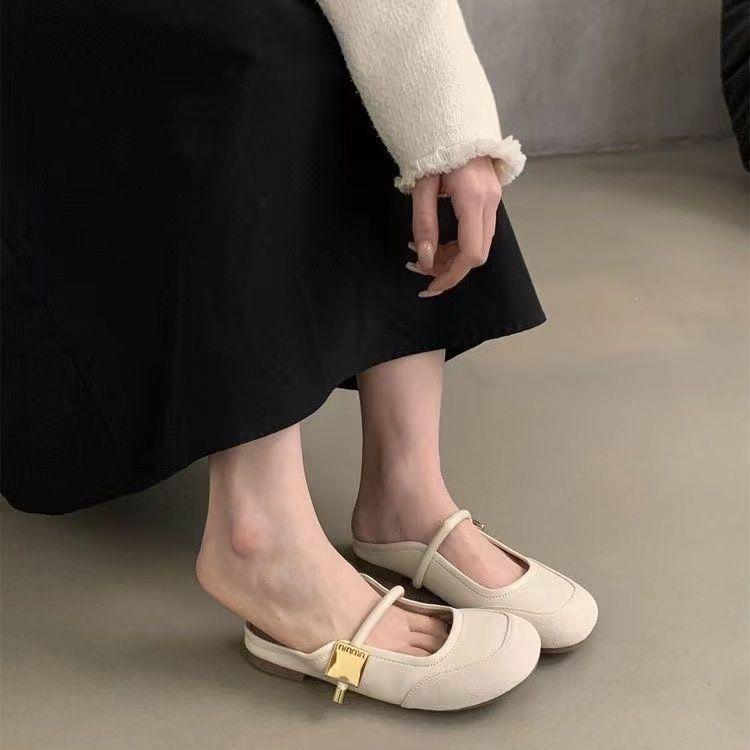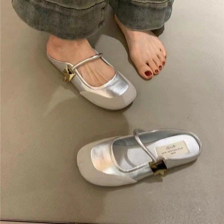 Zapatos franceses de moda de gran venta 2025 primavera/verano nuevo estilo estilo de hada suave de punta cerrada medias pantuflas para mujer para uso exterior