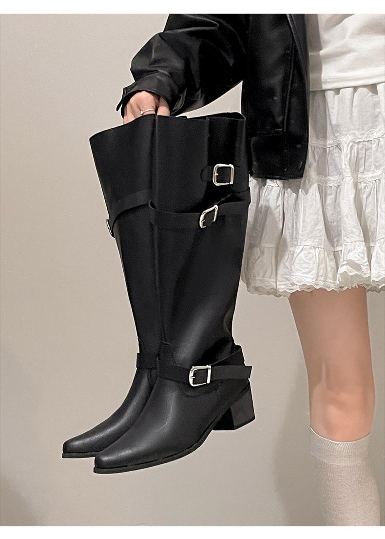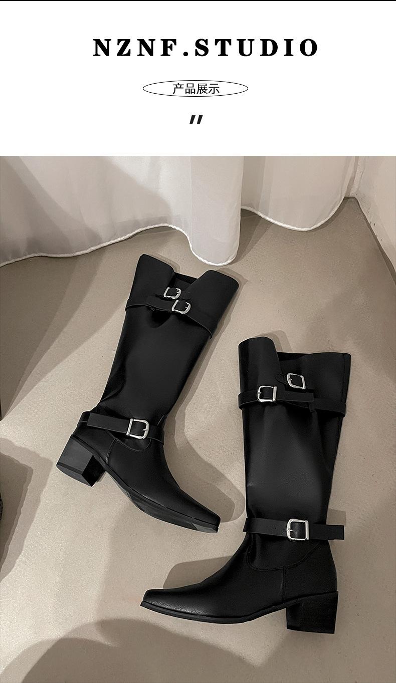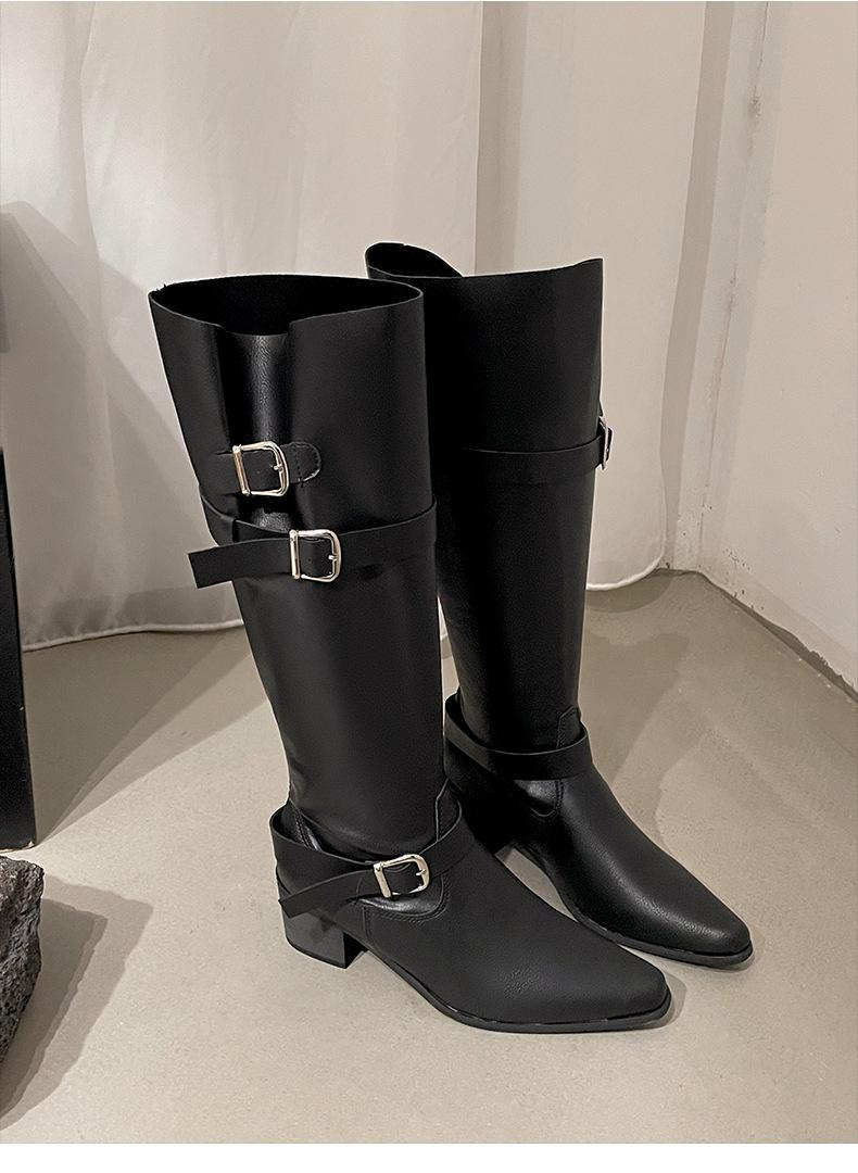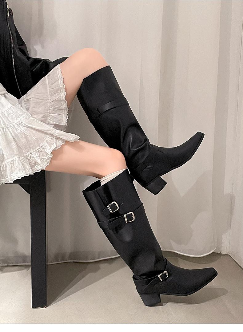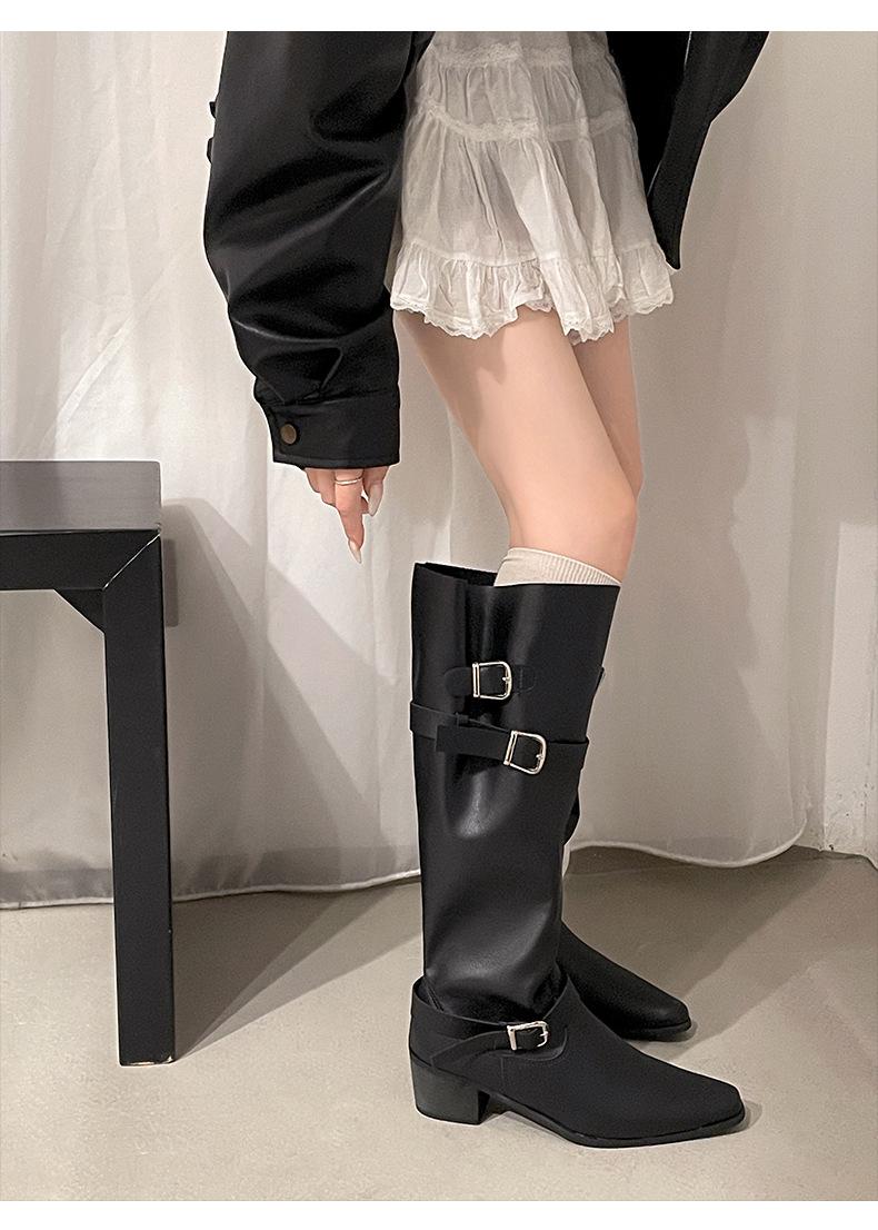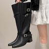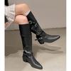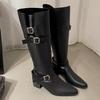 Botas de Caña Alta Negras de Estilo Reina con Tacón Grueso de Gama Alta para Mujer 2025 Nuevo Otoño Adelgazantes Aumentadoras de Altura Botas de Caballero