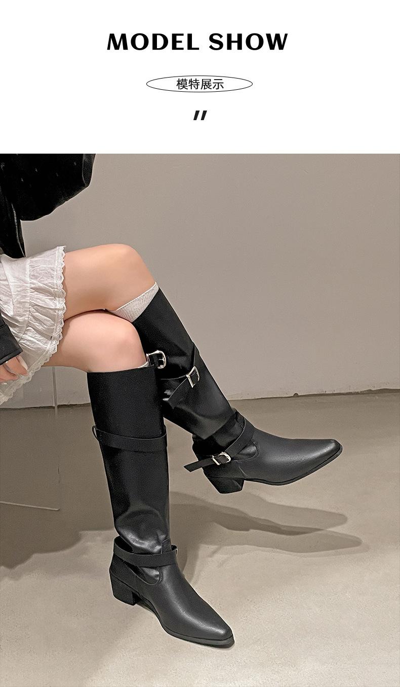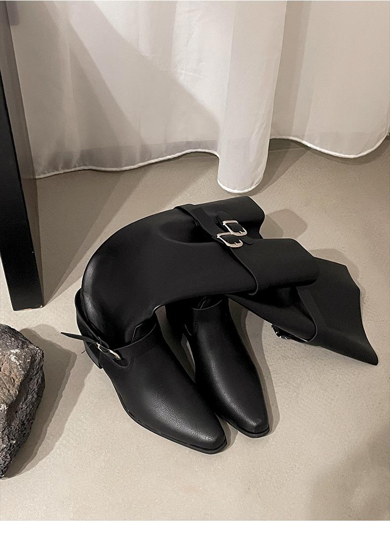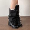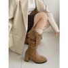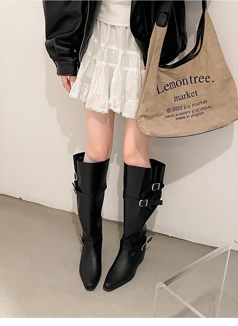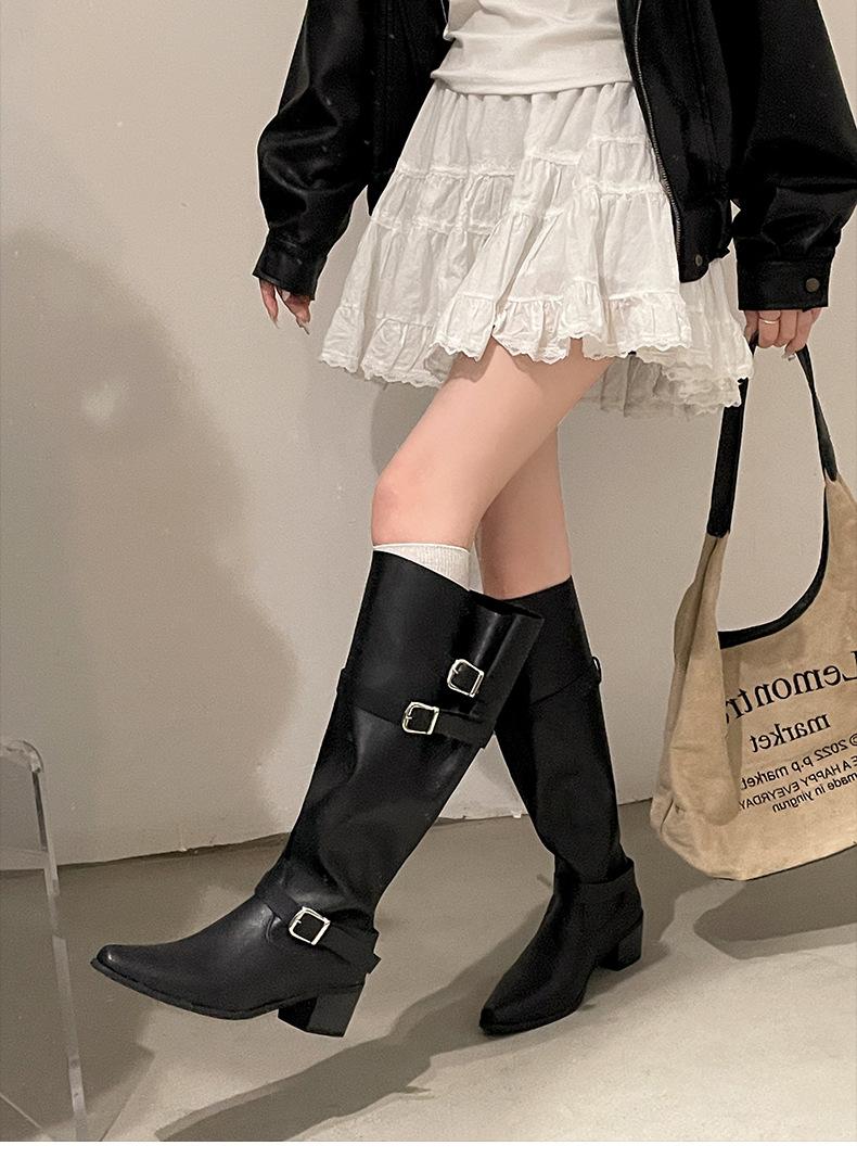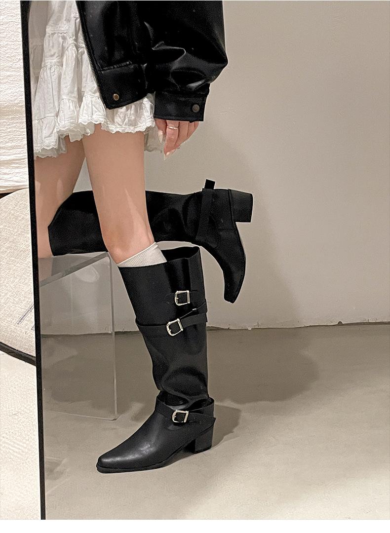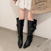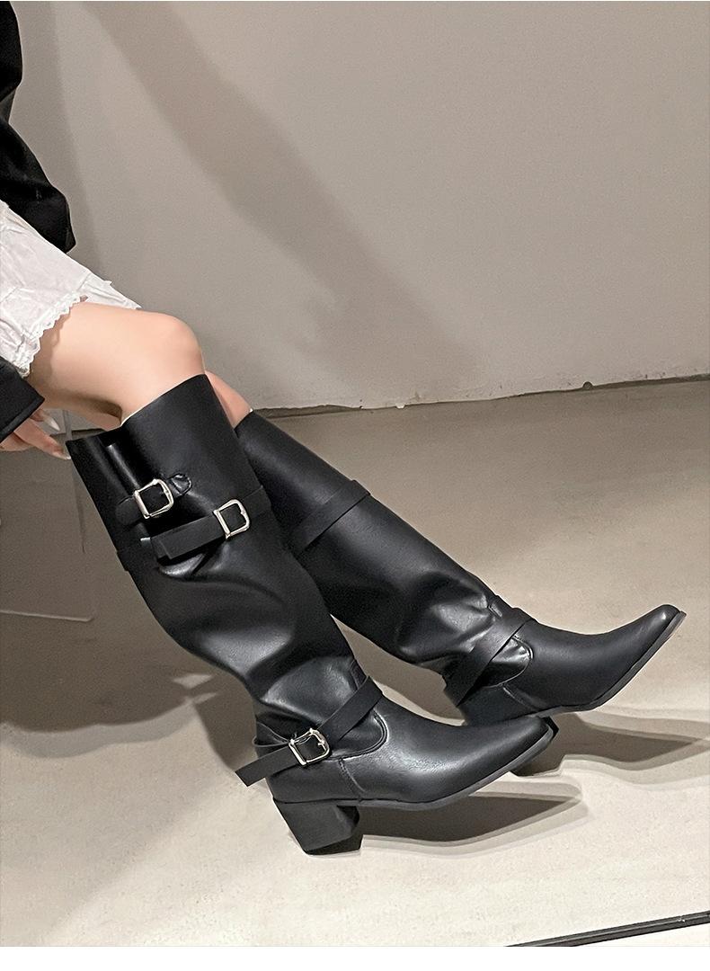 Botas de Caña Alta Negras de Estilo Reina con Tacón Grueso de Gama Alta para Mujer 2025 Nuevo Otoño Adelgazantes Aumentadoras de Altura Botas de Caballero