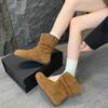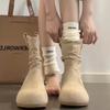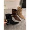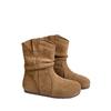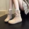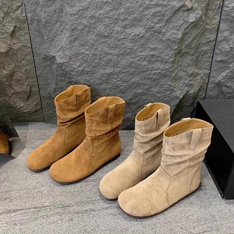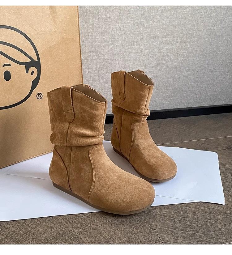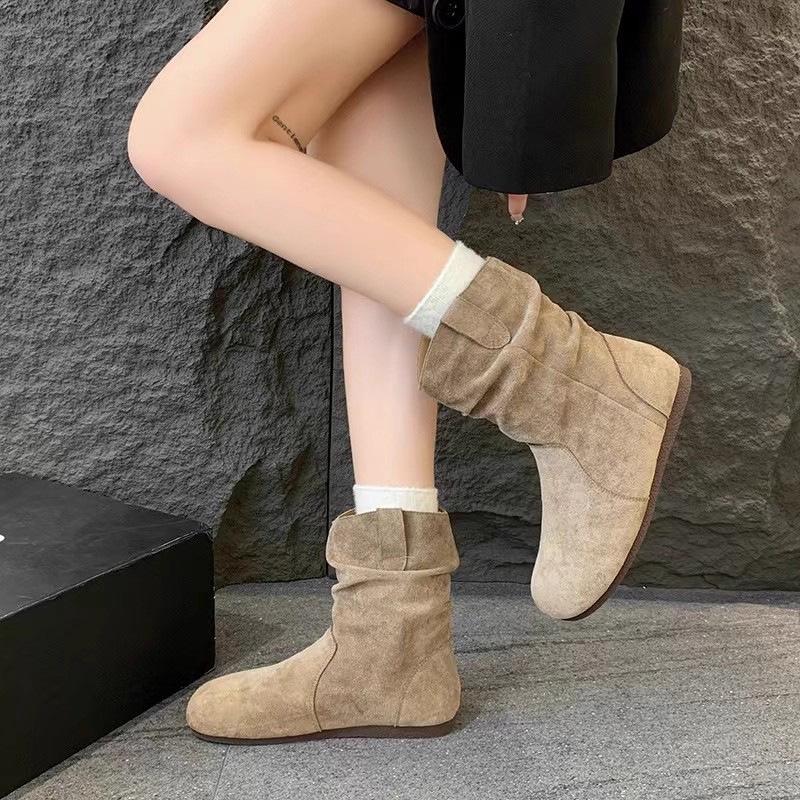 Nuevas Botas Apiladas de Moda 2025 Punta Redonda Versátiles Tacón Plano Botas Vaqueras Occidentales Botines de Ante Botas Individuales de Primavera y Otoño para Mujer