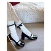 Zapatos Mary Jane para Mujer Primavera/Verano 2025 Nuevo Temperamento Nicho Francés Negro Una Tira Corte Bajo Tacón Grueso Tacones Altos