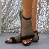 Sandalias planas de talla grande transfronterizas con clip para el dedo huecas para mujer 2025 verano estilo caliente moda sexy sandalias altas