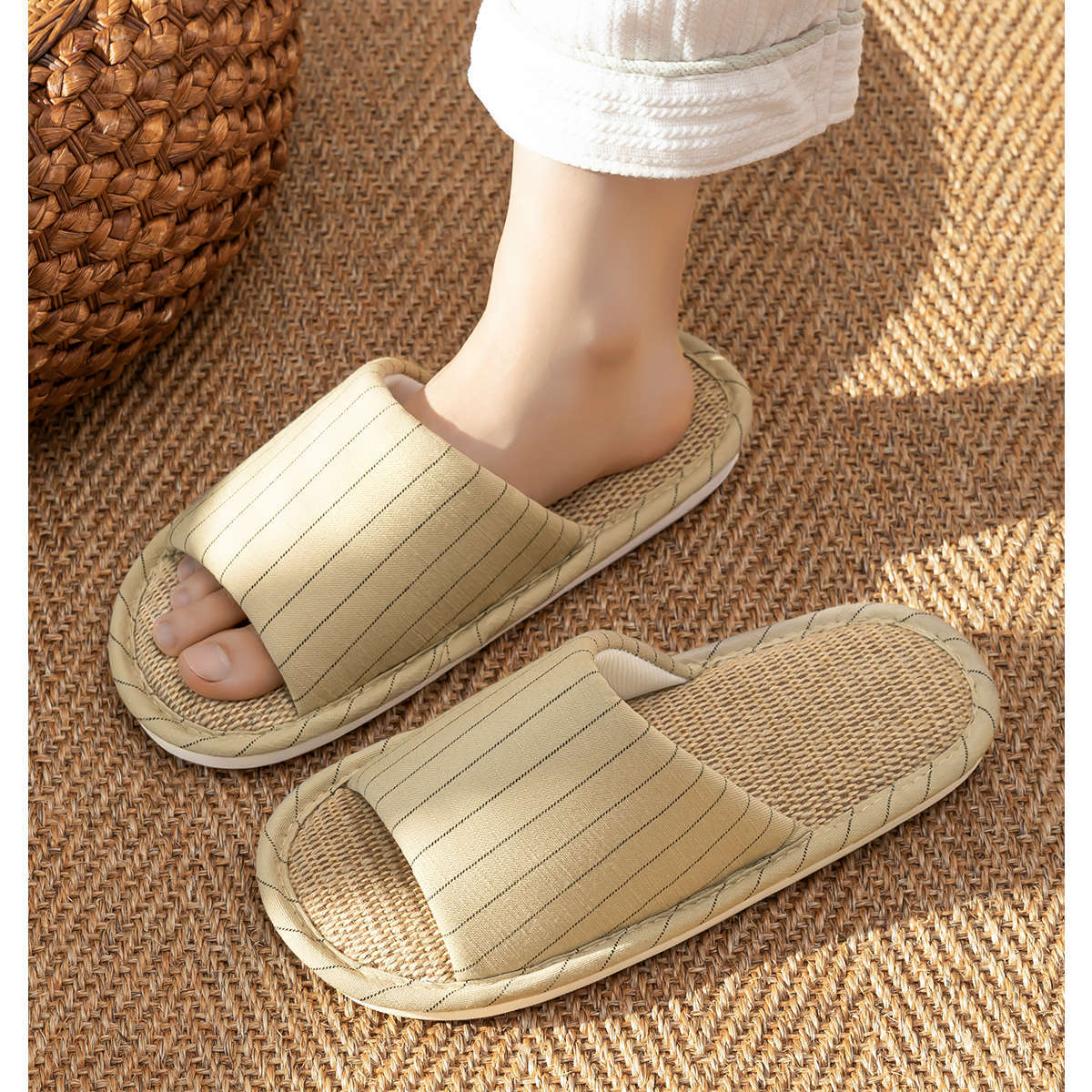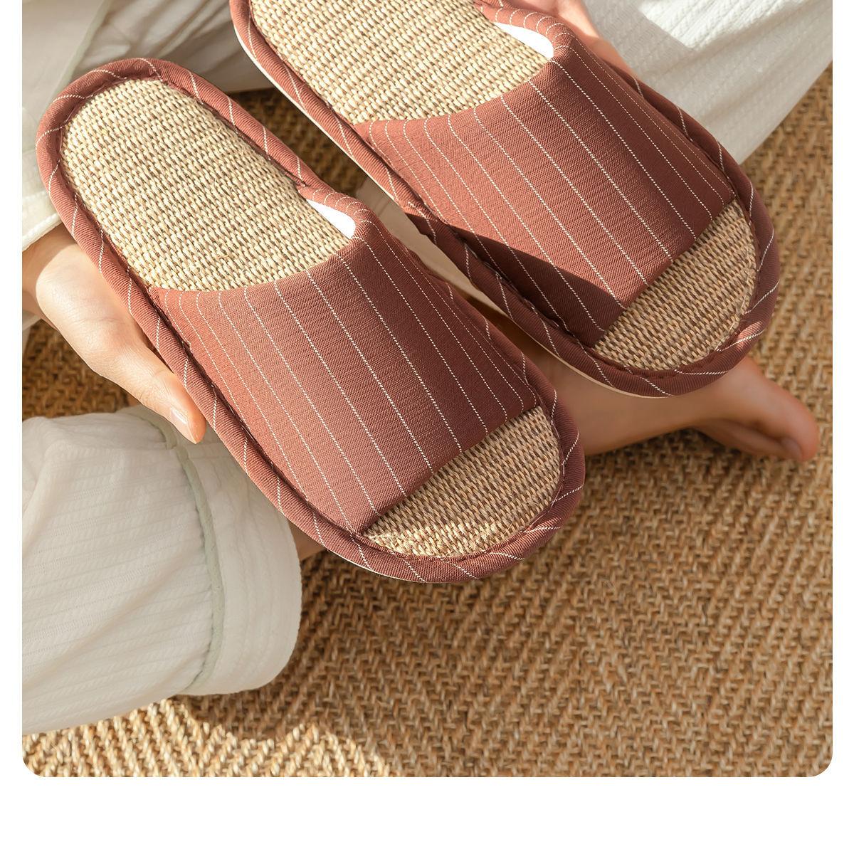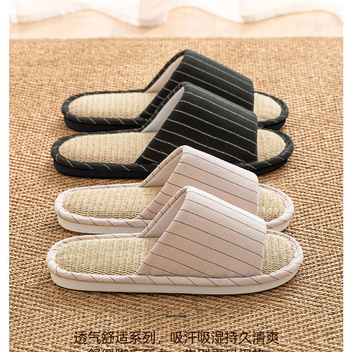 Pantuflas de Lino para Hombre Primavera y Otoño Interior Hogar Silenciosas Uso Doméstico Pantuflas de Algodón y Lino para las Cuatro Estaciones Nuevo Invierno y Verano