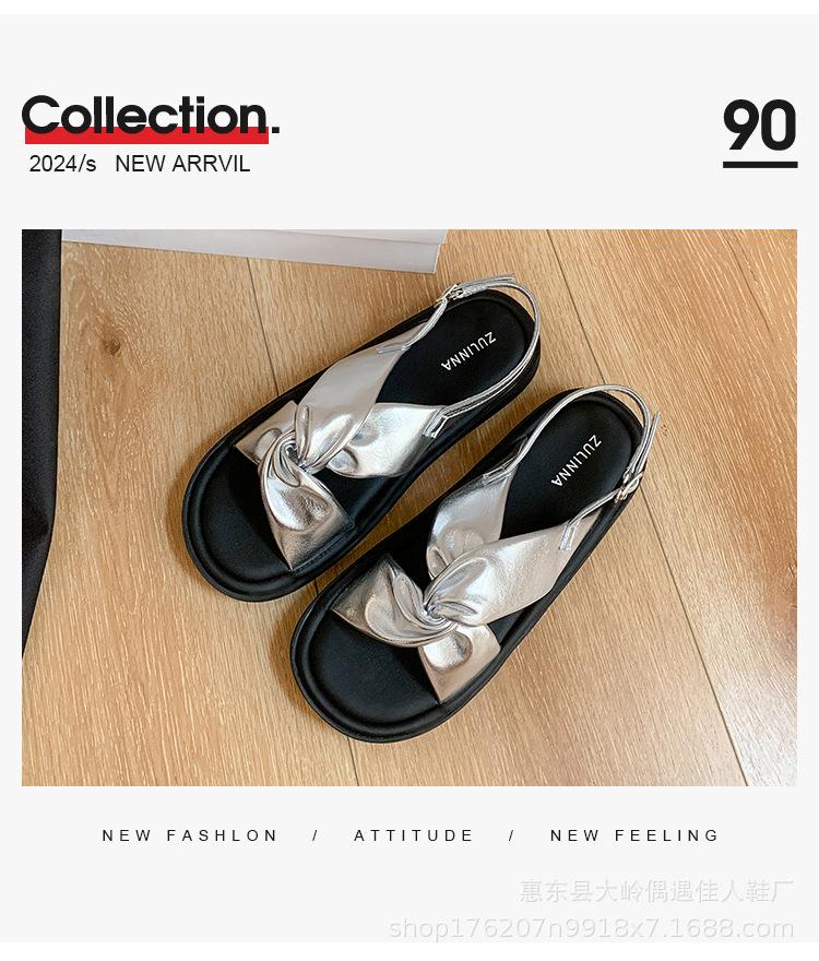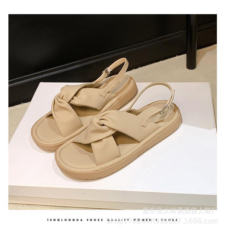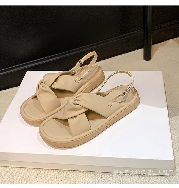Sandalias planas de suela suave para mujer, novedad de verano 2024, estilo hada, con tiras cruzadas, puntera abierta, informales, para playa.