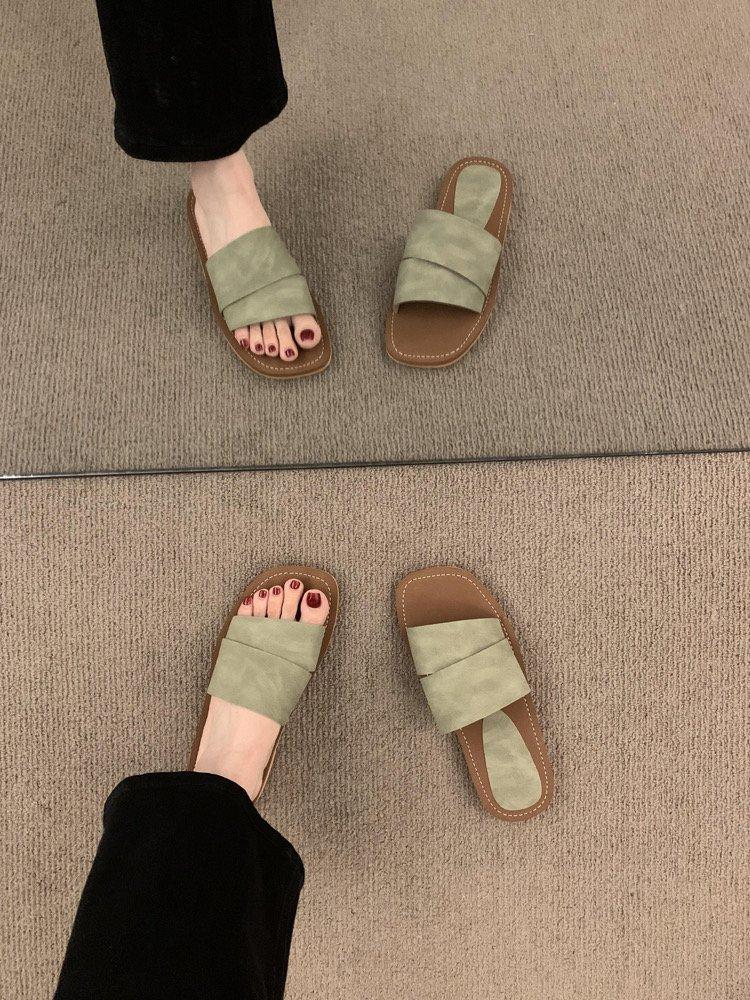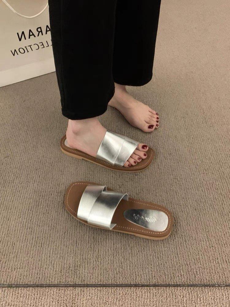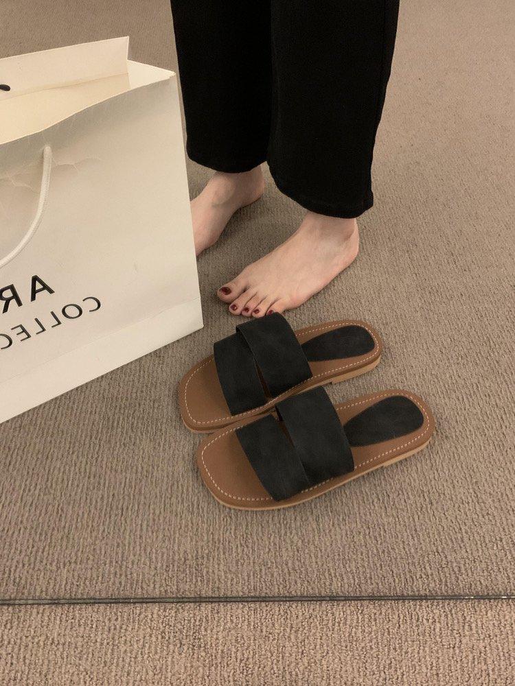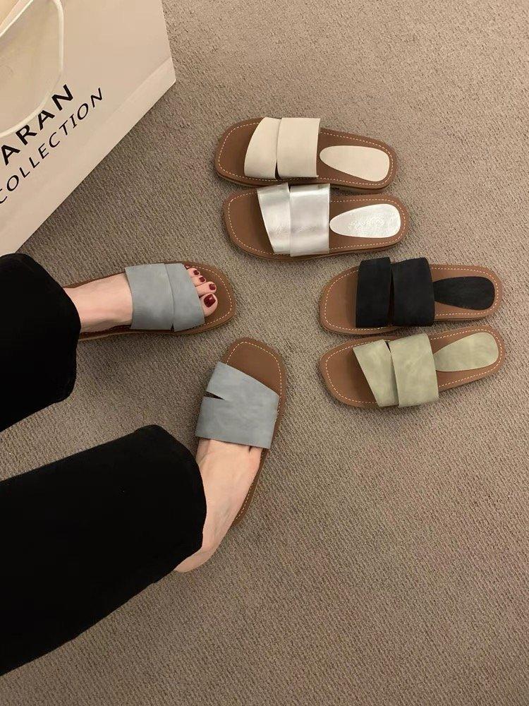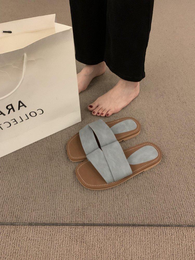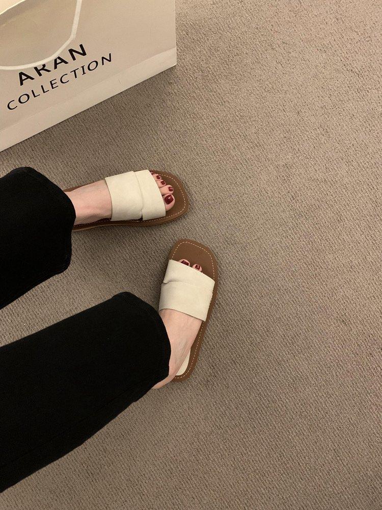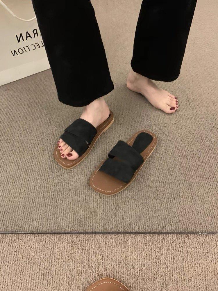Moda Ins Flats Zapatillas Romanas Zapatos de Mujer Ropa Exterior Sandalias de Verano para la Orilla del Mar Zapatos de Playa Chanclas de Suela Blanda