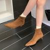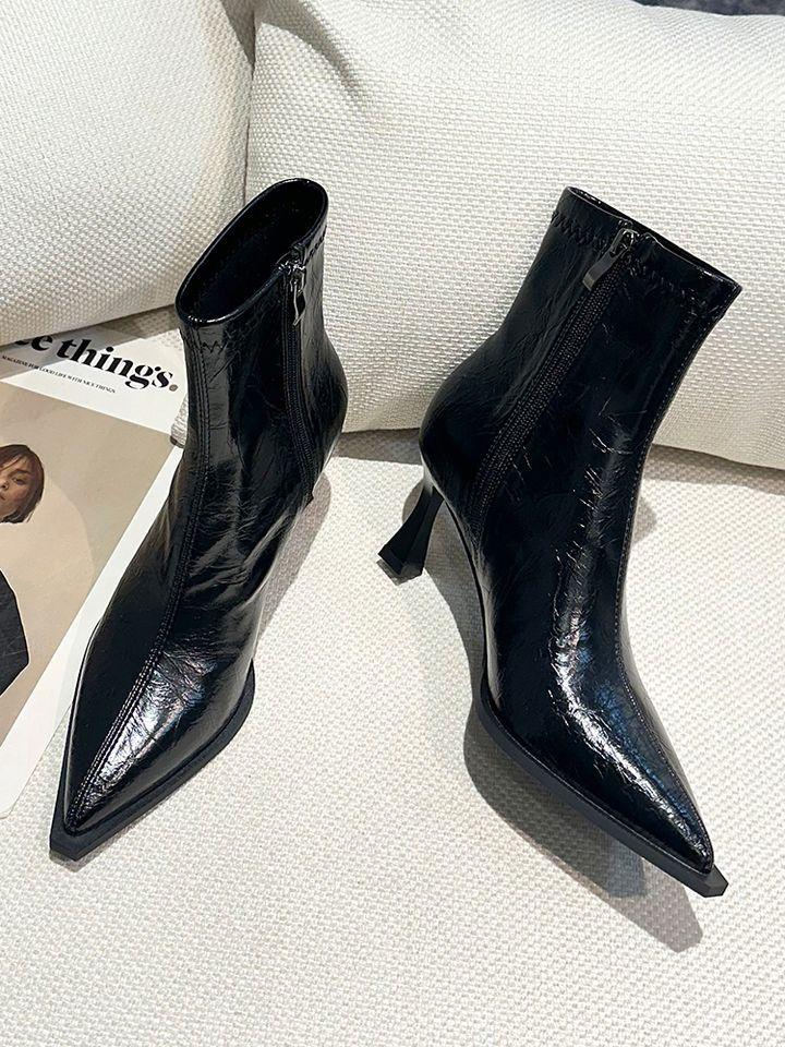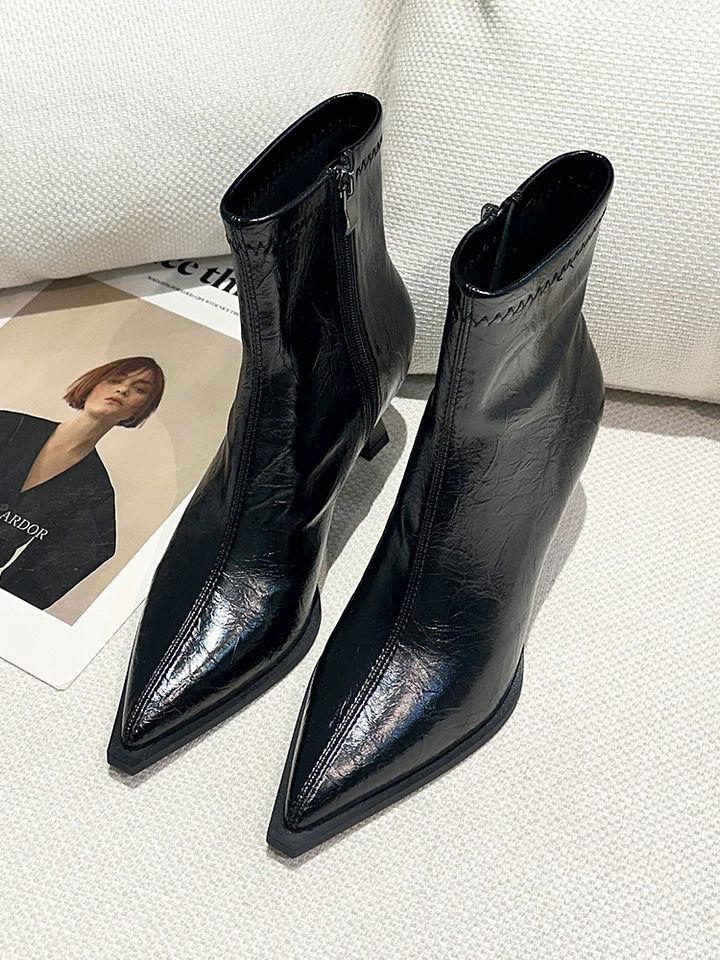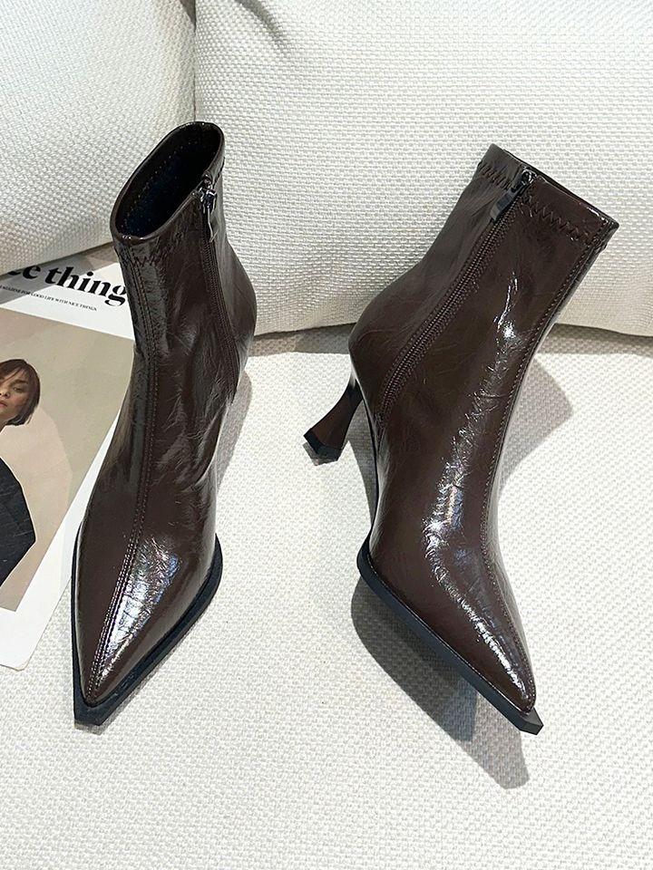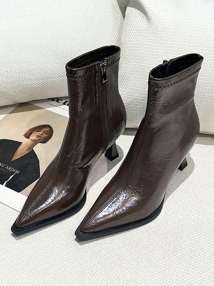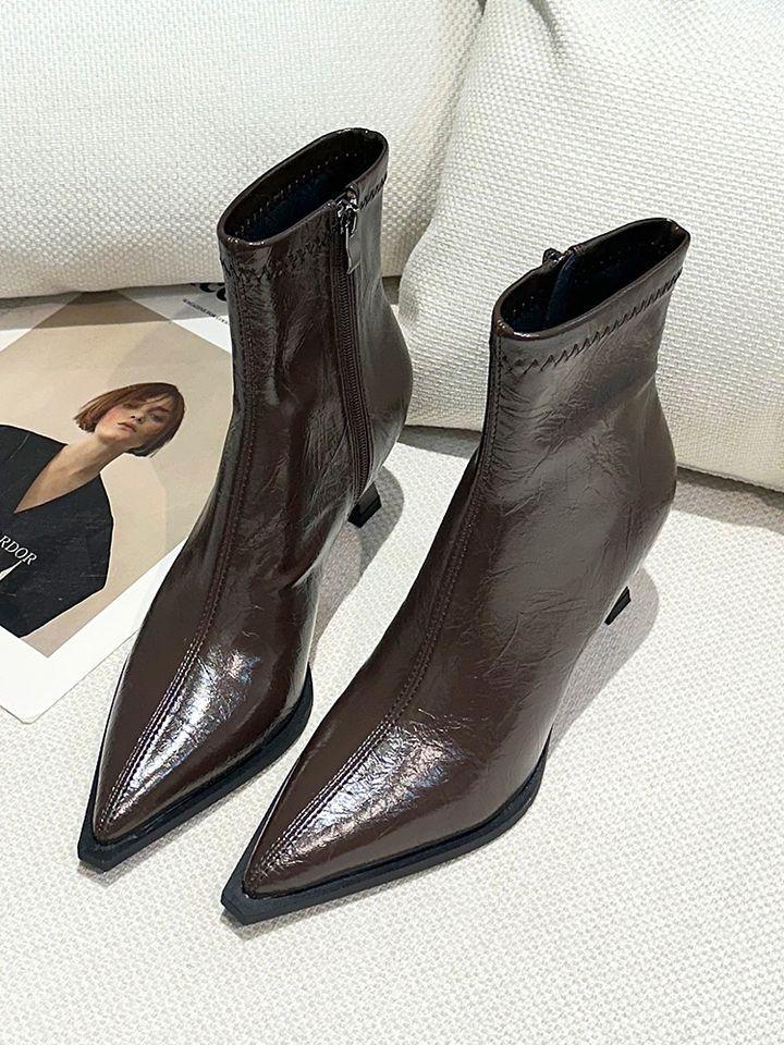 Botines Marrones de Tacón Alto con Punta Retro para Mujer Tacón de Aguja 2025 Primavera/Verano Nuevos Versátiles Tacón Medio Adelgazantes Botas de Cuero para Mujer