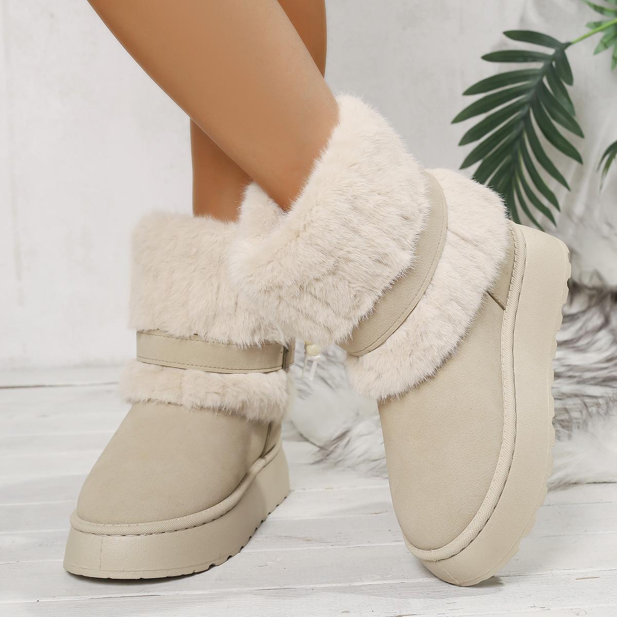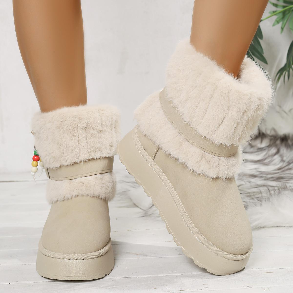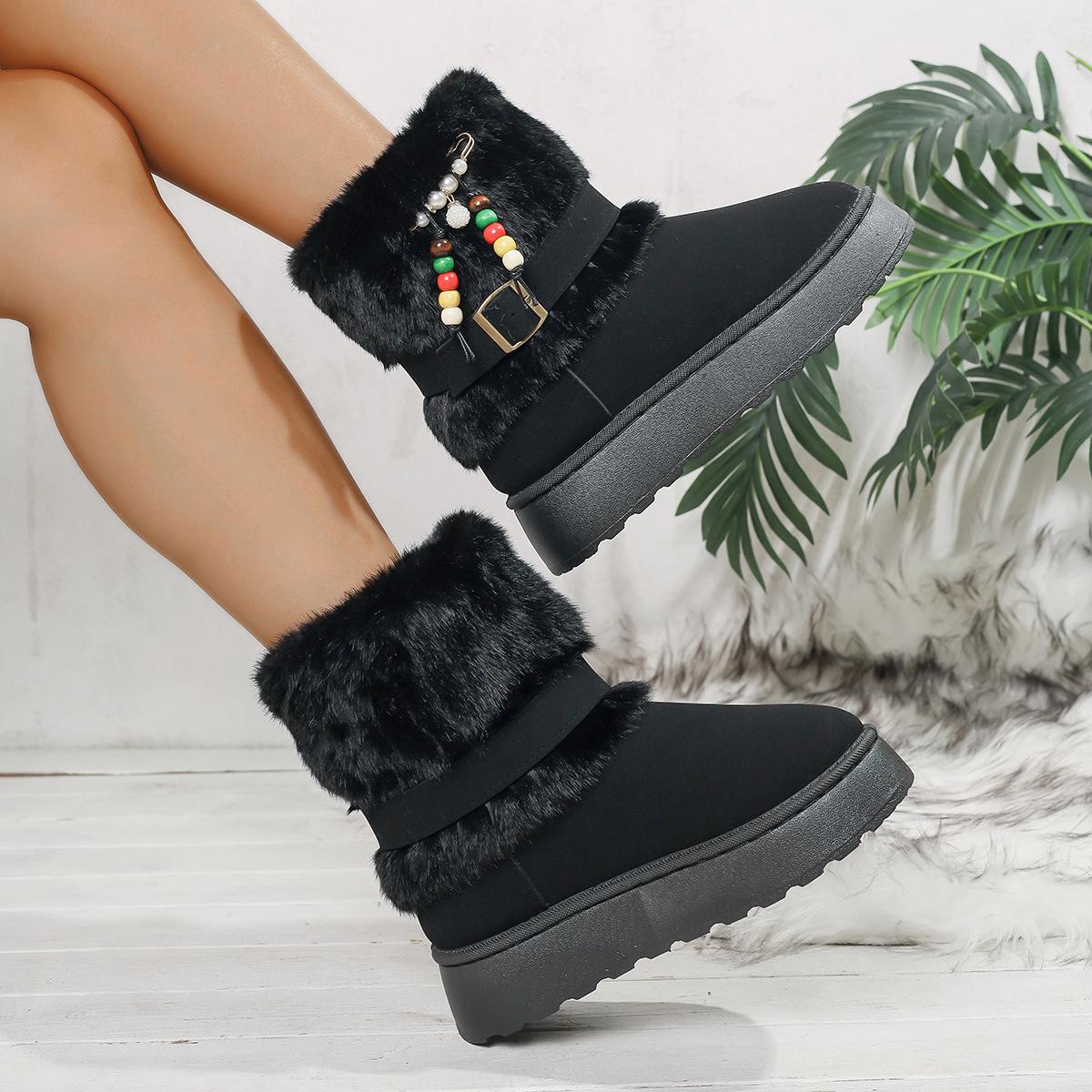 2025 Invierno Talla Grande con Cuentas Boca de Piel Zapatos de Algodón Gruesos Mujer Transfronterizos Punta Redonda Forro Polar Suela Gruesa Botas de Nieve Cálidas wish