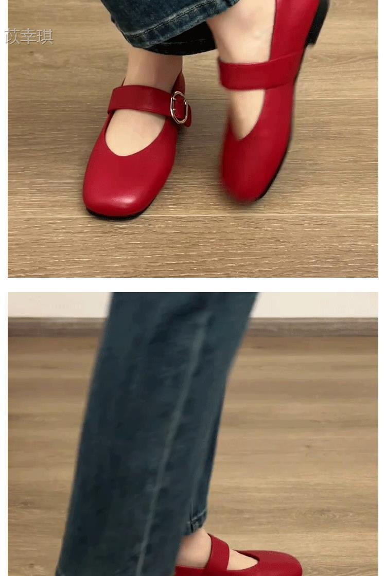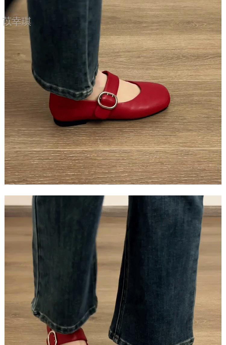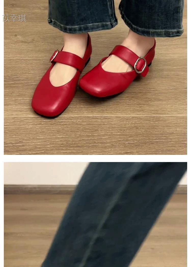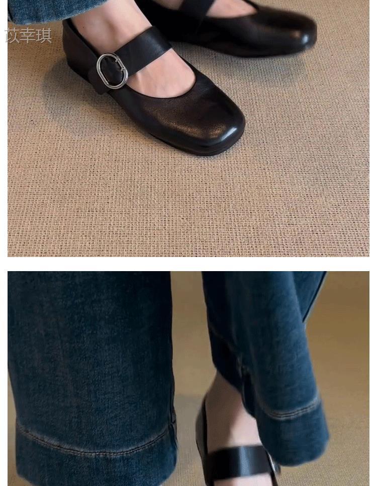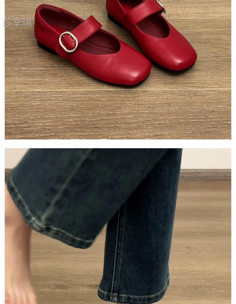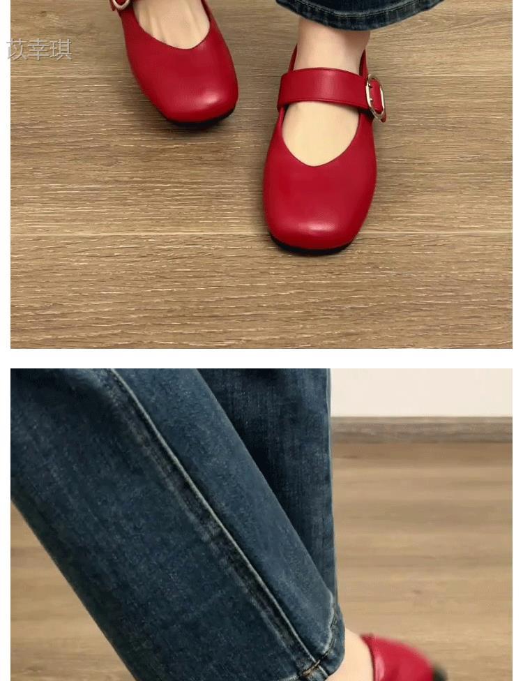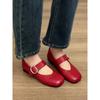 Zapatos Mary Janes de Piel Genuina Roja de Cordero Nuevo para Mujer, Estilo Caliente, Suela Suave, Temperamento Francés, Escote Bajo, Planos, Sencillos