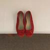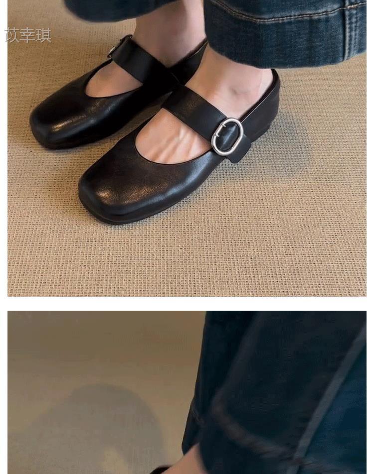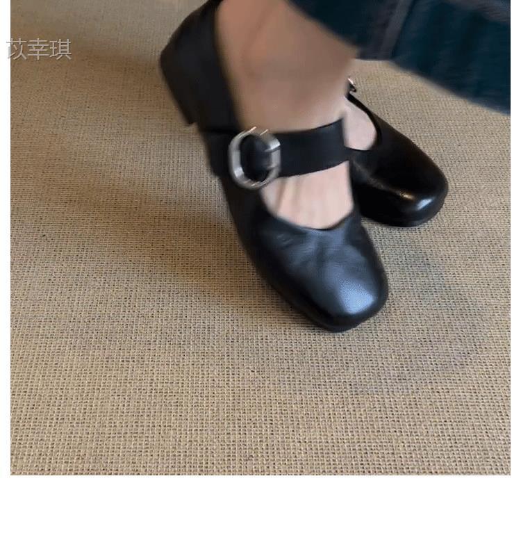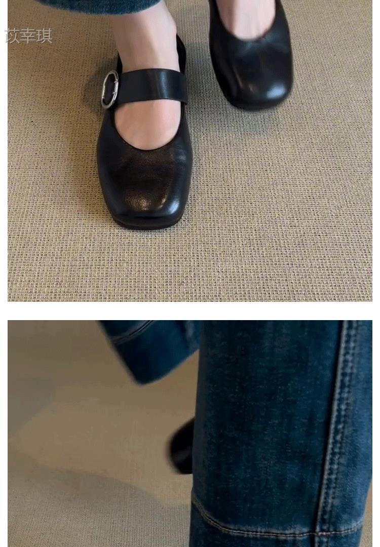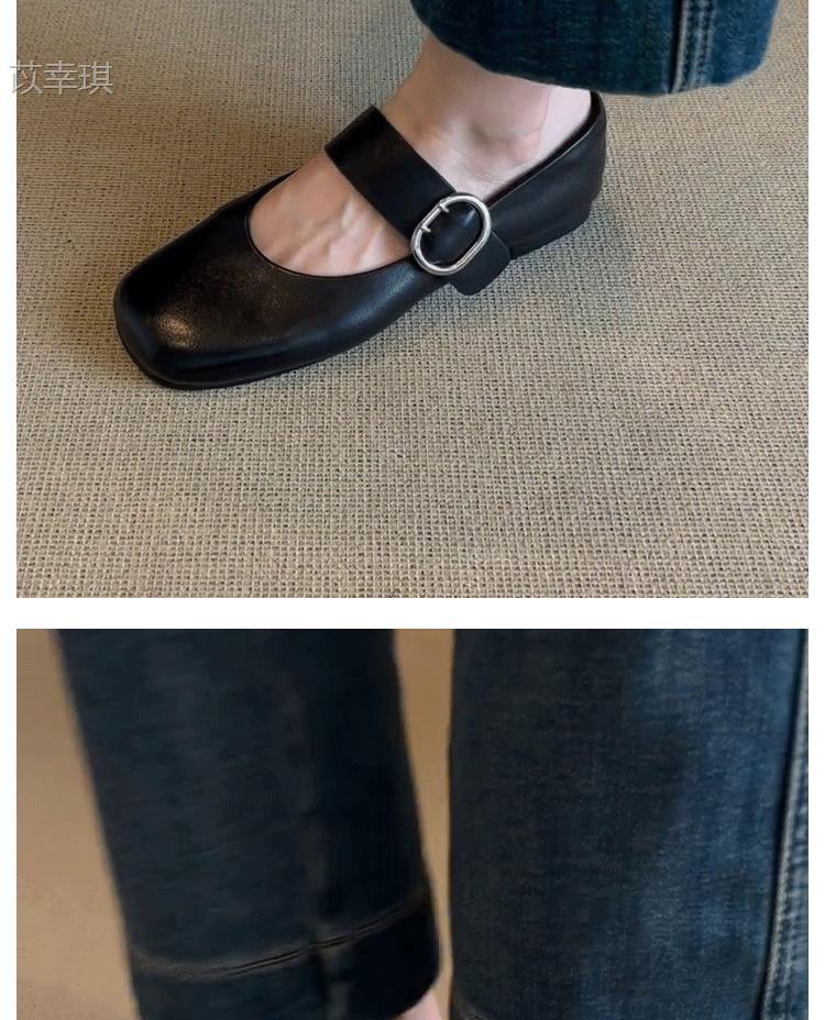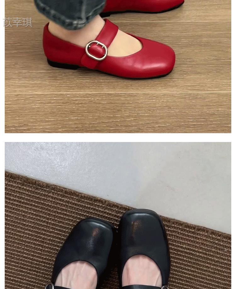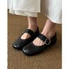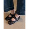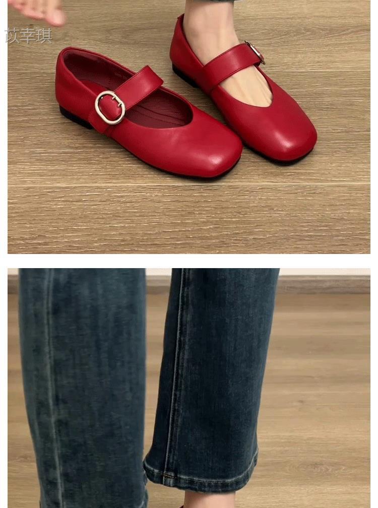 Zapatos Mary Janes de Piel Genuina Roja de Cordero Nuevo para Mujer, Estilo Caliente, Suela Suave, Temperamento Francés, Escote Bajo, Planos, Sencillos