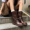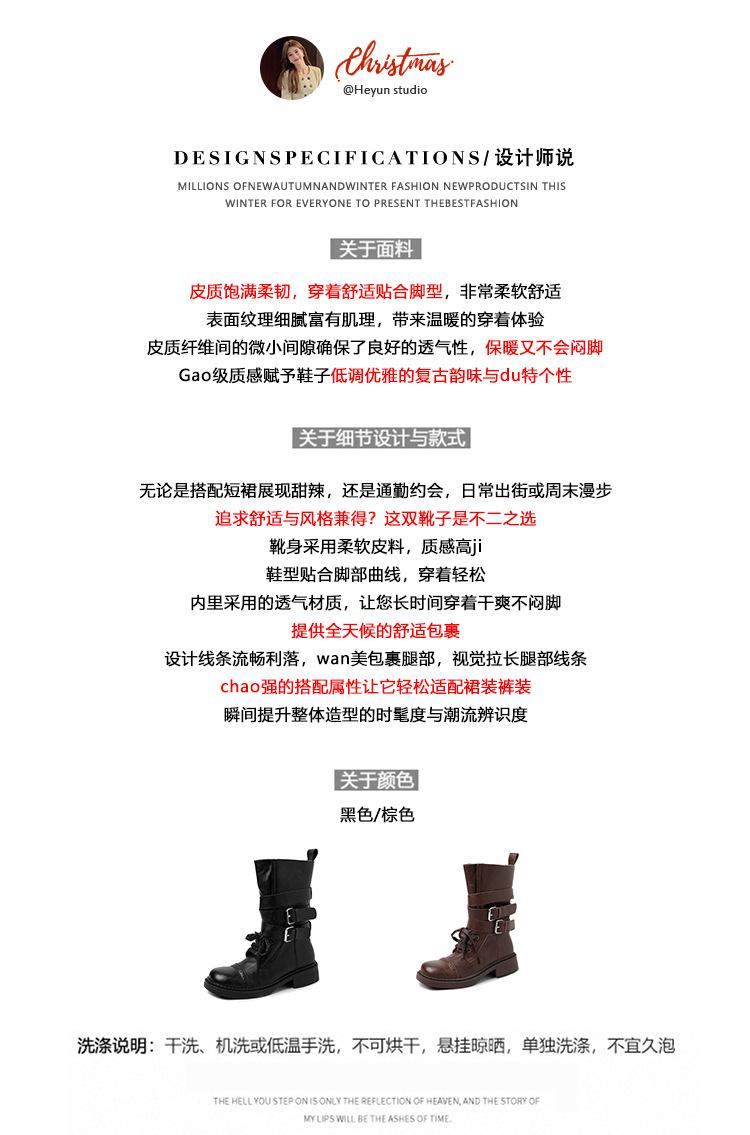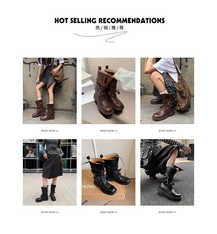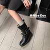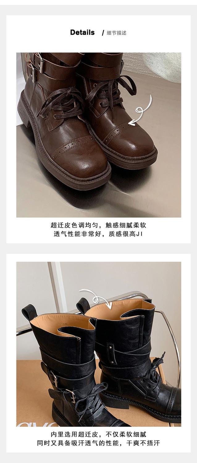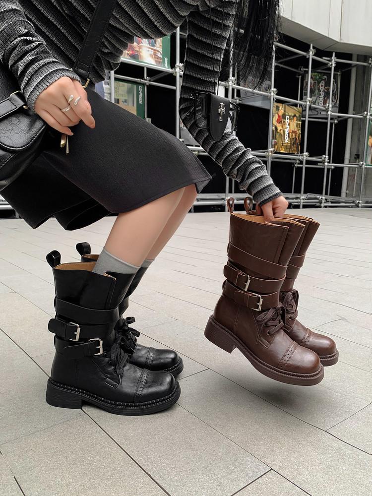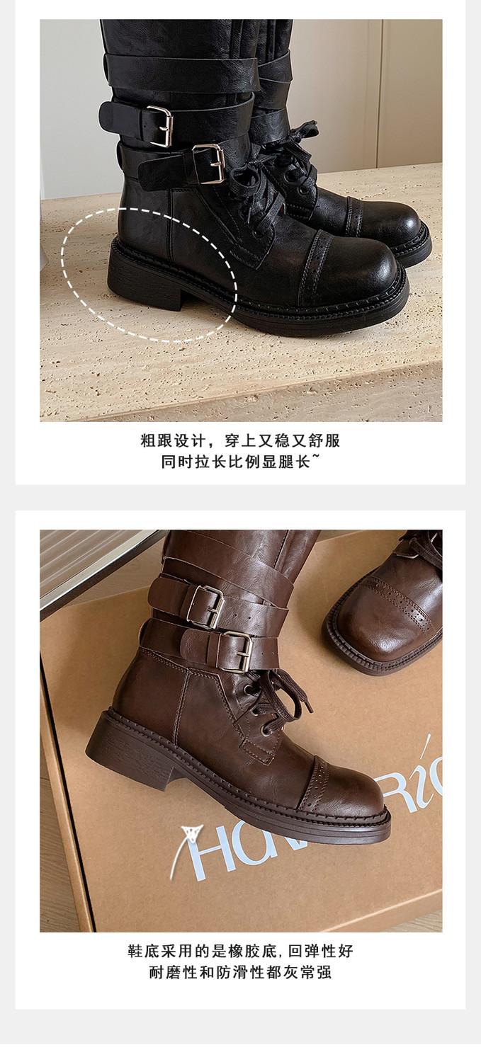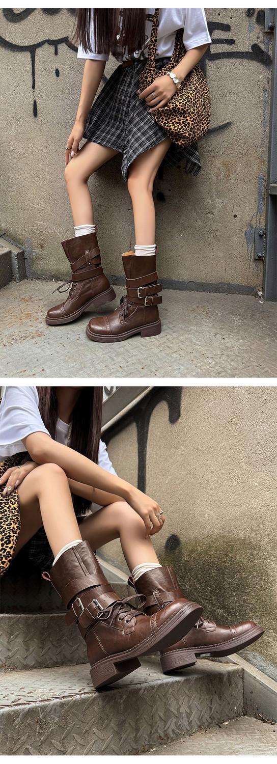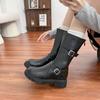 Botas de Caballero Retro de Media Caña con Suela Gruesa para Mujer con Hebillas Botas de Motociclista 2025 Nuevo Otoño Botas Martin Botines Botas de Media Caña