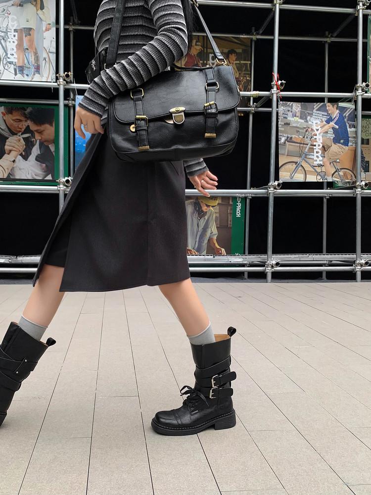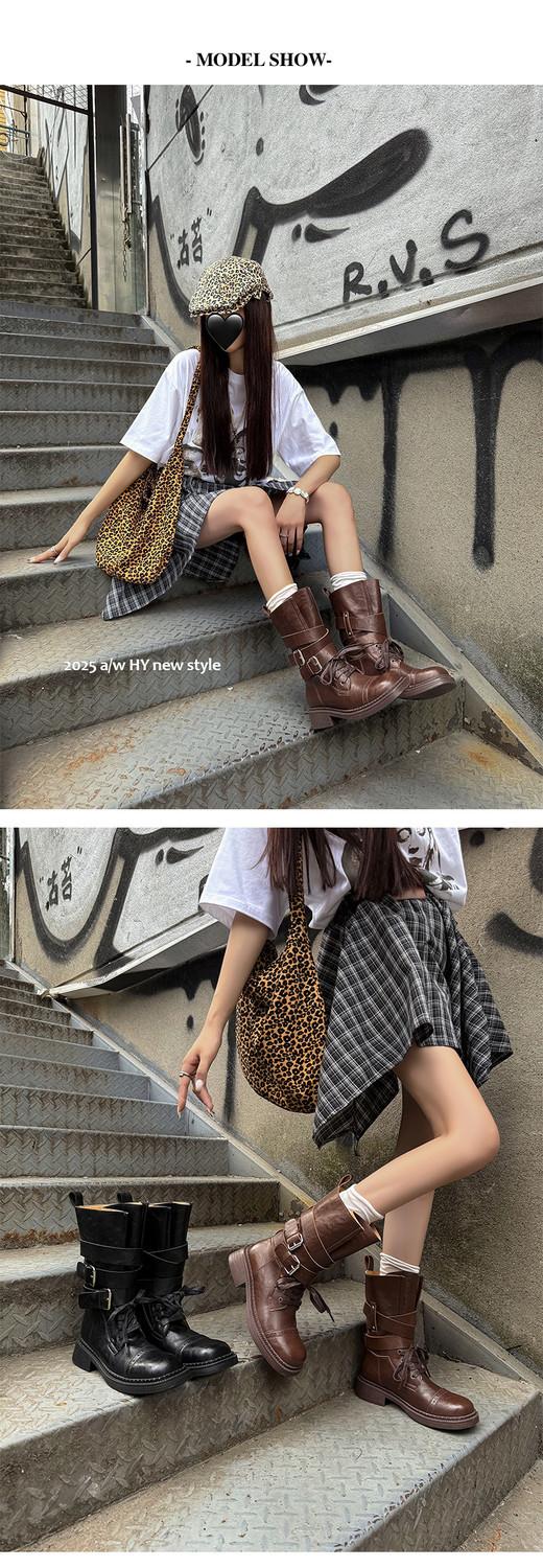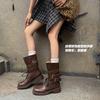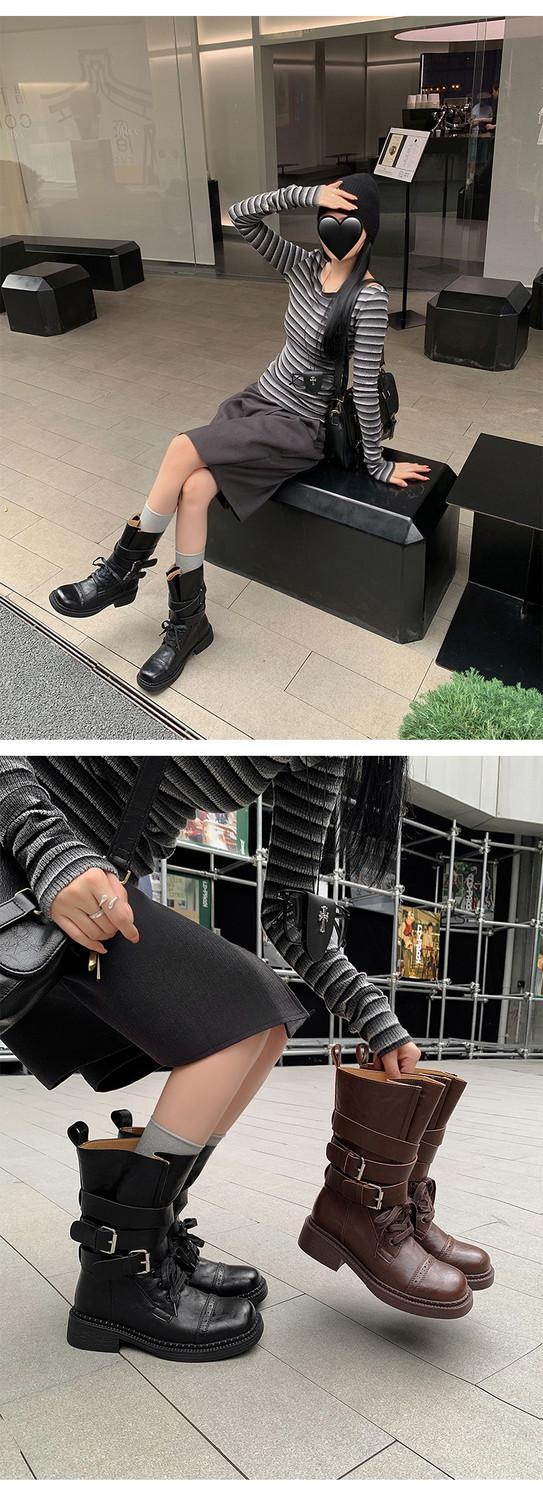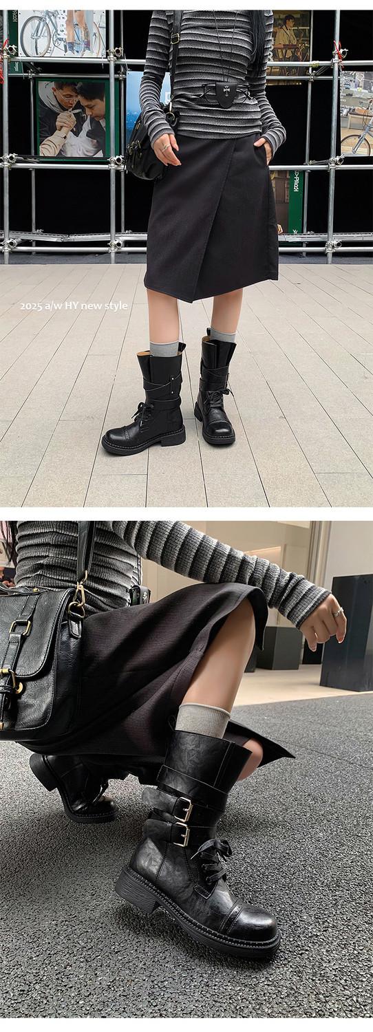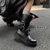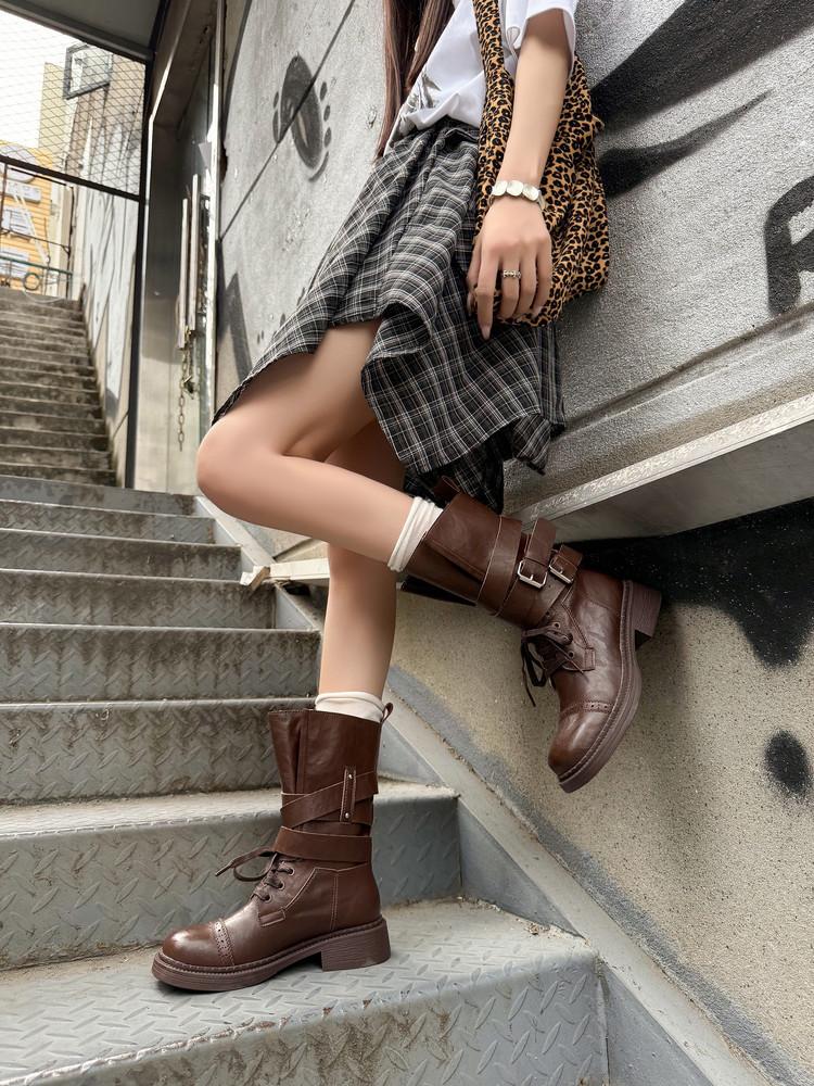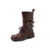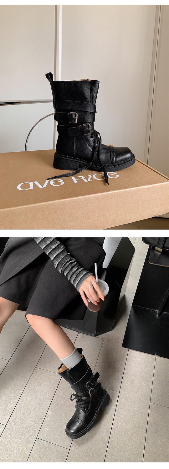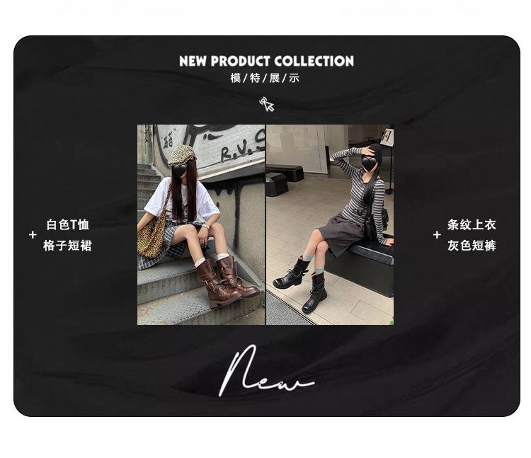 Botas de Caballero Retro de Media Caña con Suela Gruesa para Mujer con Hebillas Botas de Motociclista 2025 Nuevo Otoño Botas Martin Botines Botas de Media Caña
