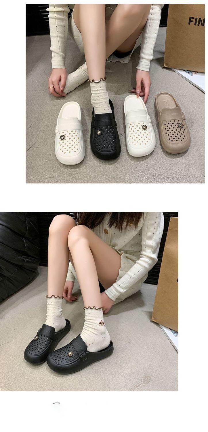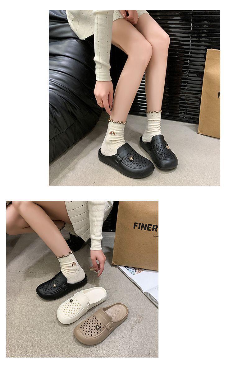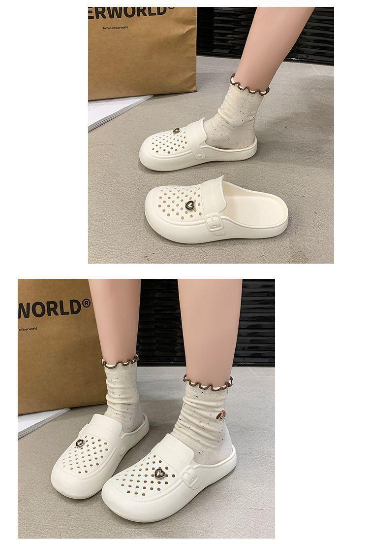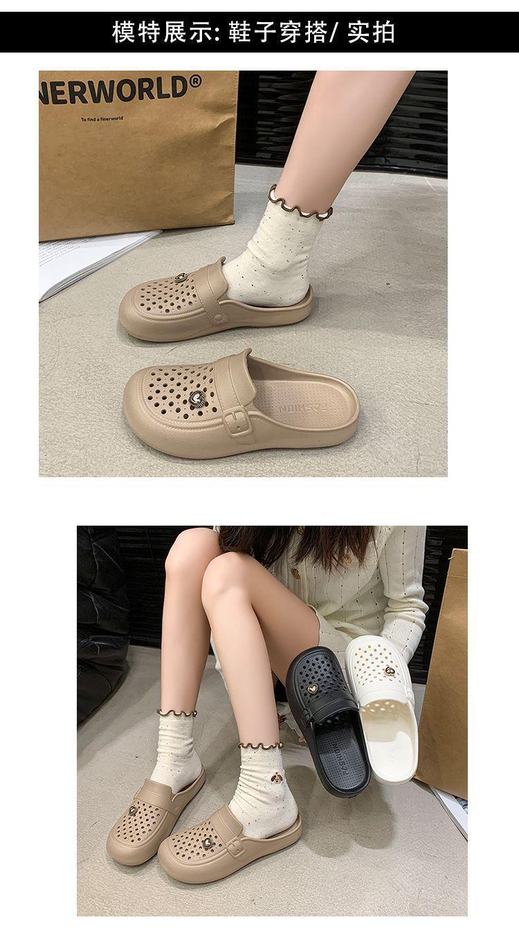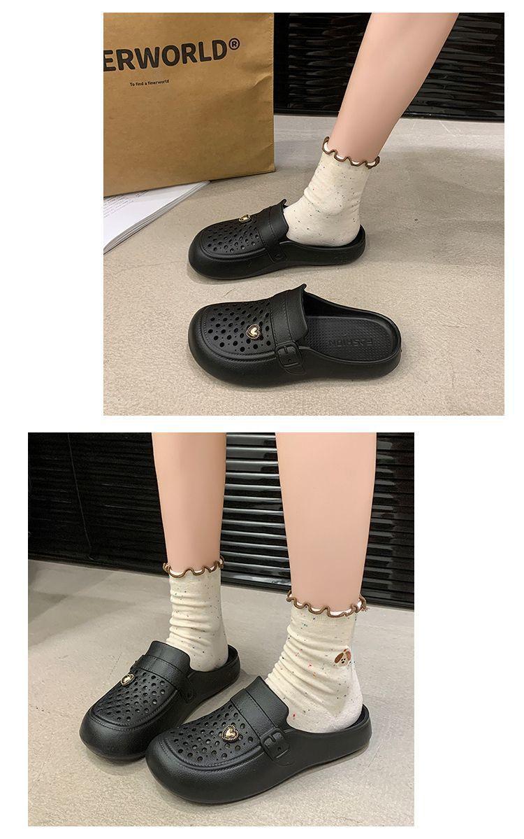 Zapatos de Agujeros Ropa de Mujer Sandalias de Playa de Suela Gruesa 2025 Verano Nueva Moda Slip-on Antideslizantes Pantuflas Medias de Punta Cerrada