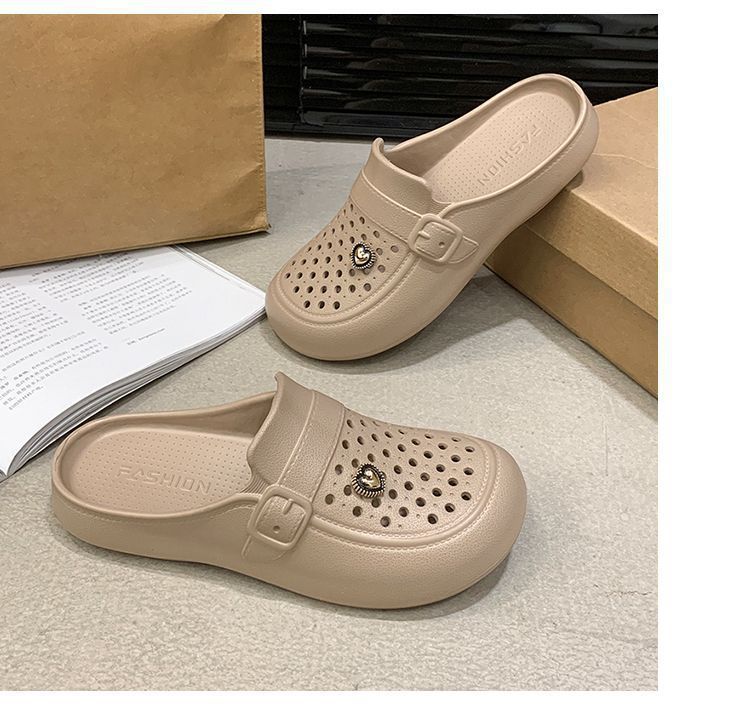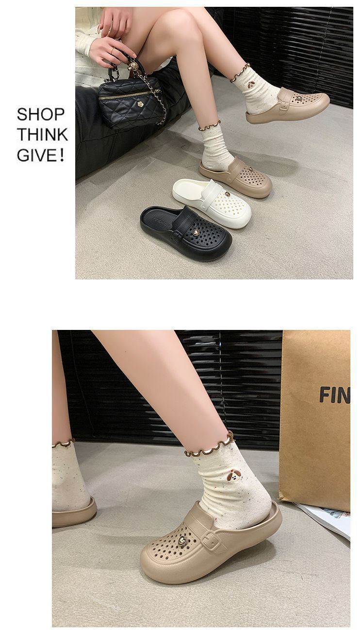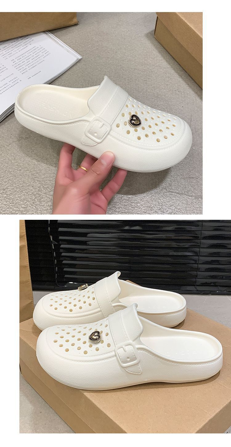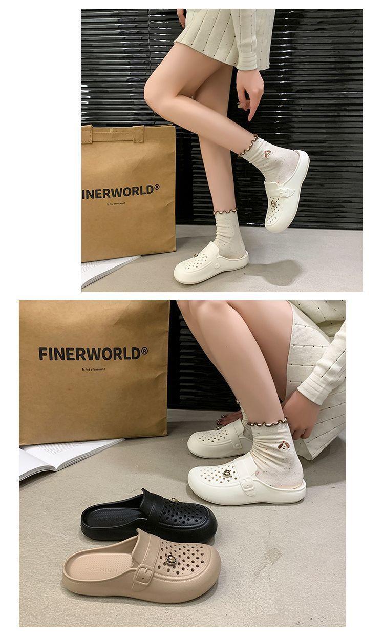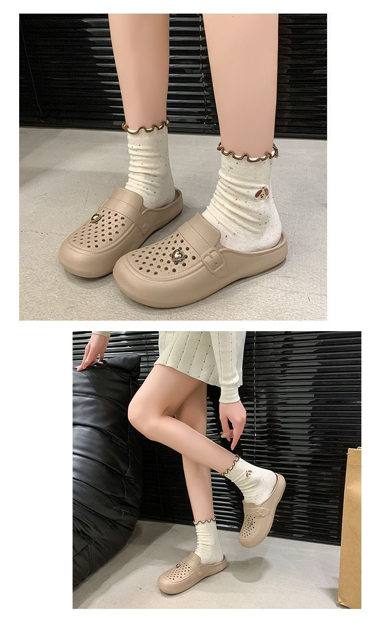 Zapatos de Agujeros Ropa de Mujer Sandalias de Playa de Suela Gruesa 2025 Verano Nueva Moda Slip-on Antideslizantes Pantuflas Medias de Punta Cerrada