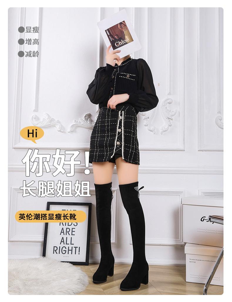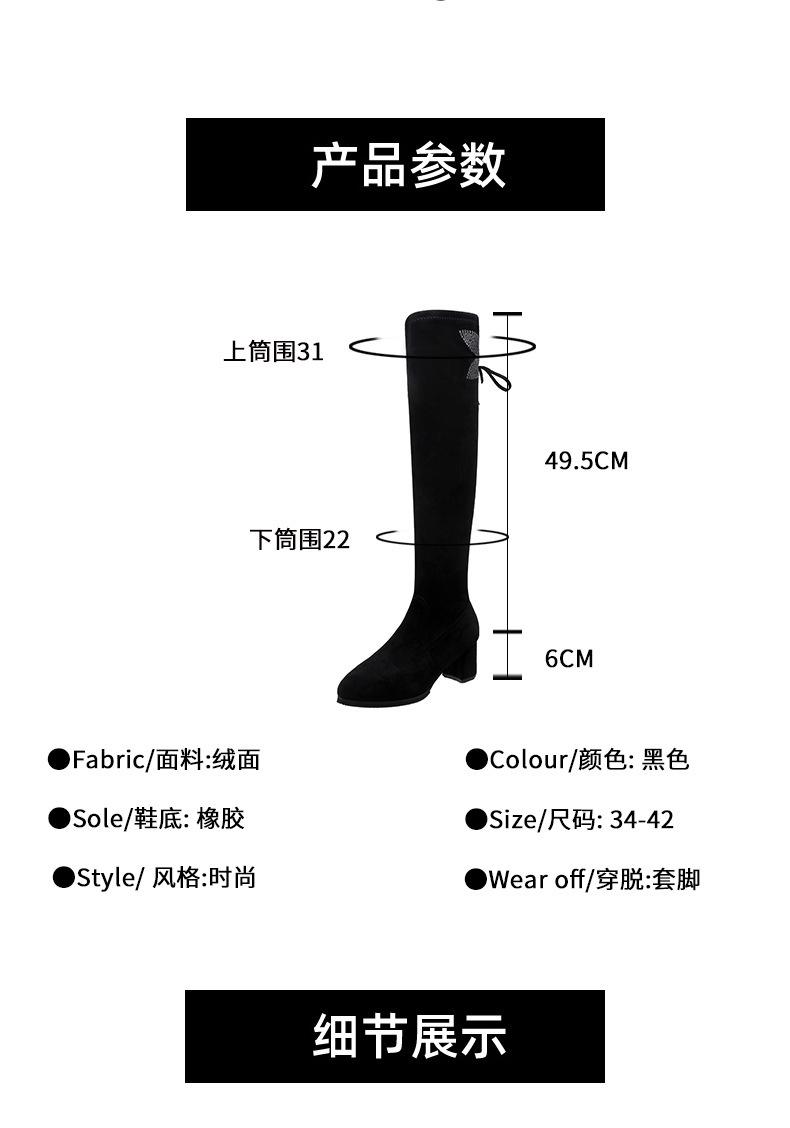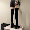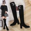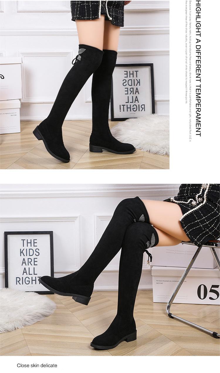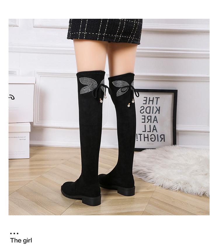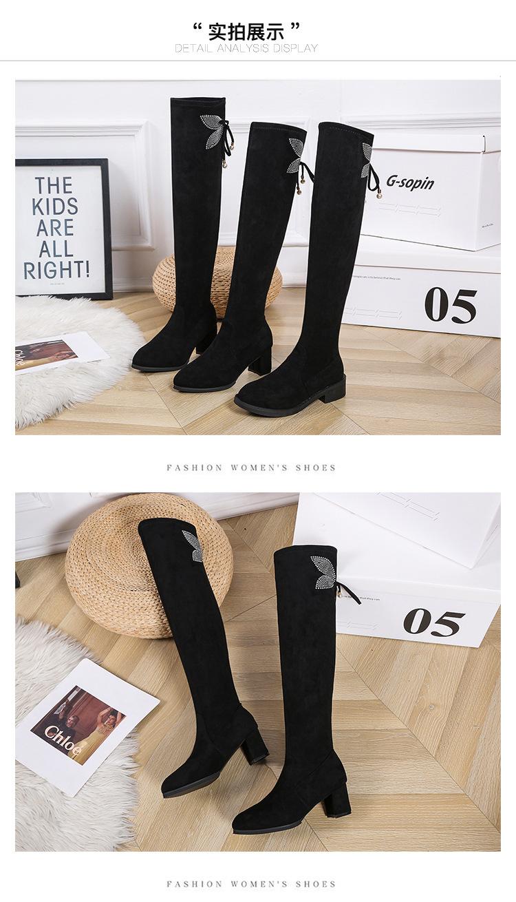 Botas por encima de la rodilla para mujer otoño e invierno 2023 Nuevas botas de tacón grueso con lazo de pedrería de tacón alto adelgazantes elásticas