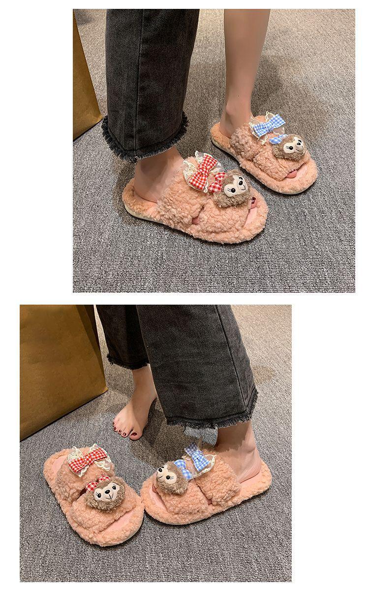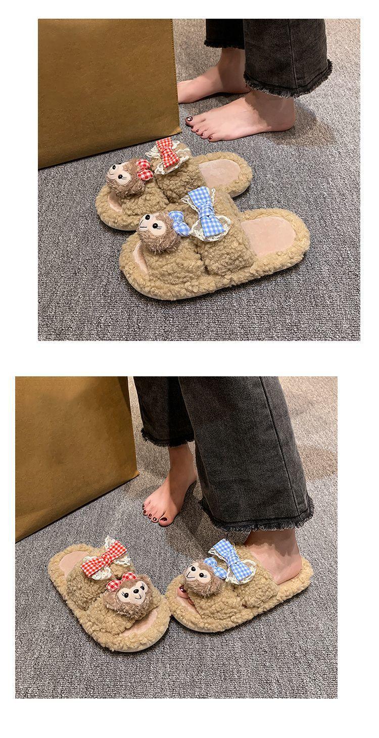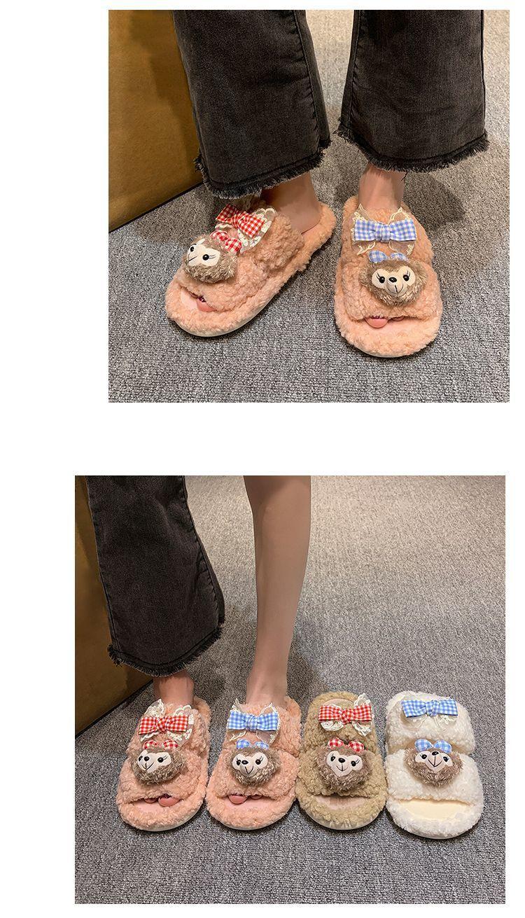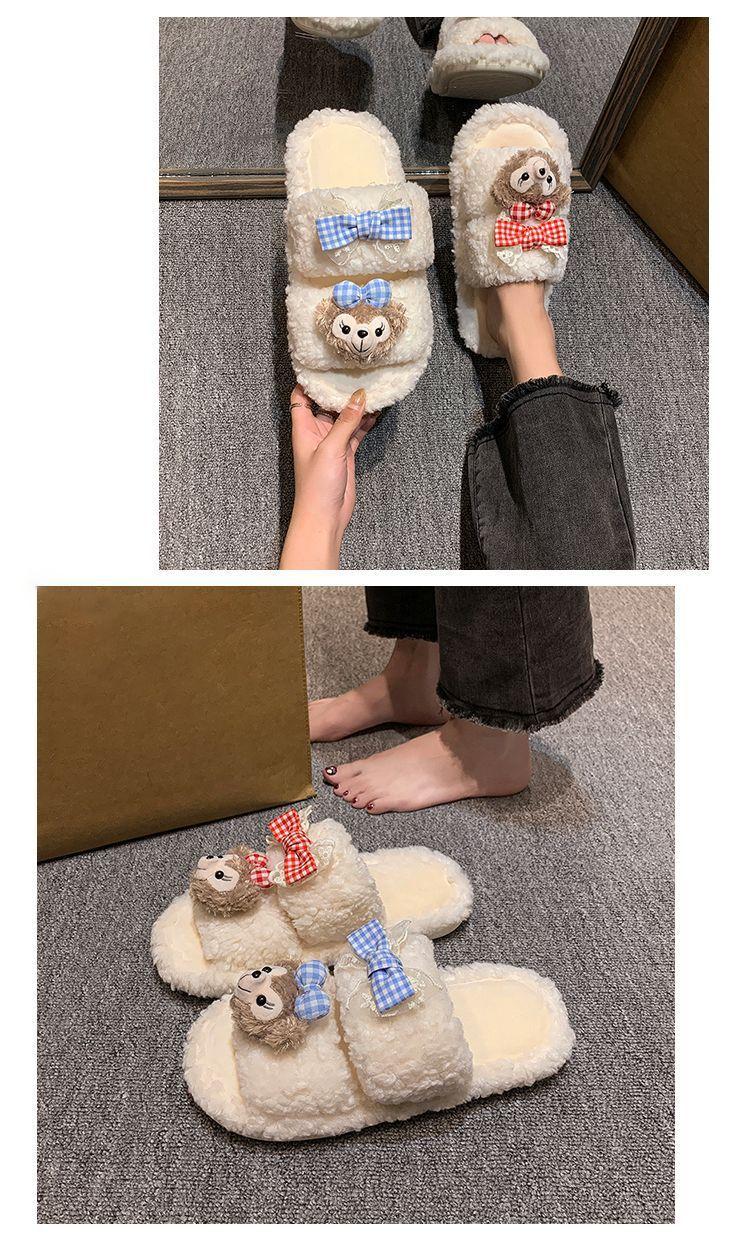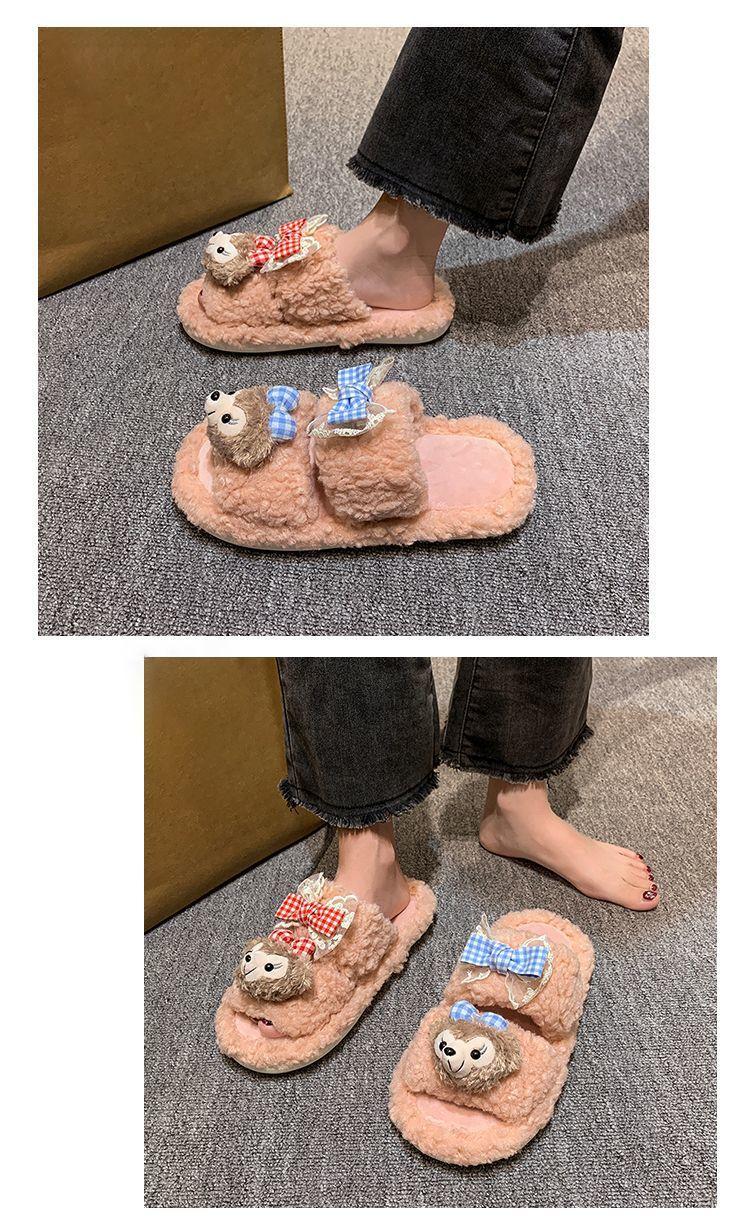 Zapatillas de Algodón de Moda Versátiles Cómodas Cálidas de Una Tira para Mujer 2025 Otoño/Invierno Nuevas Zapatillas de Dibujos Animados Lindas Peludas