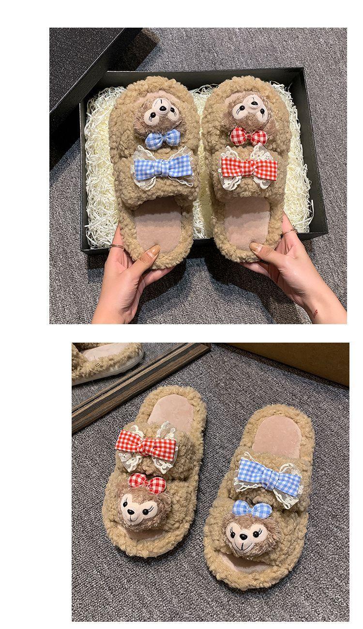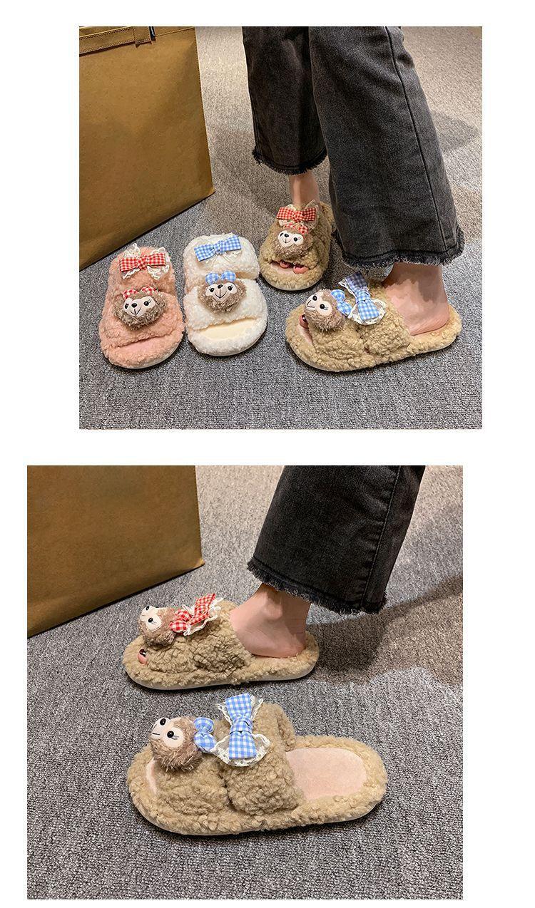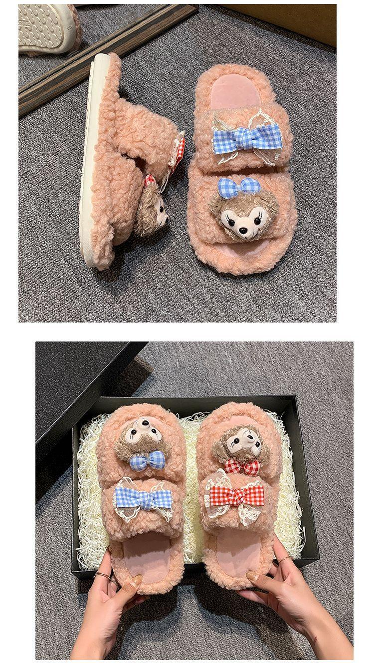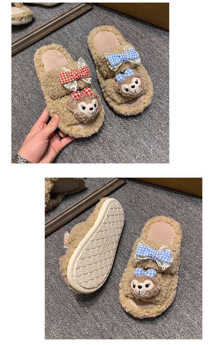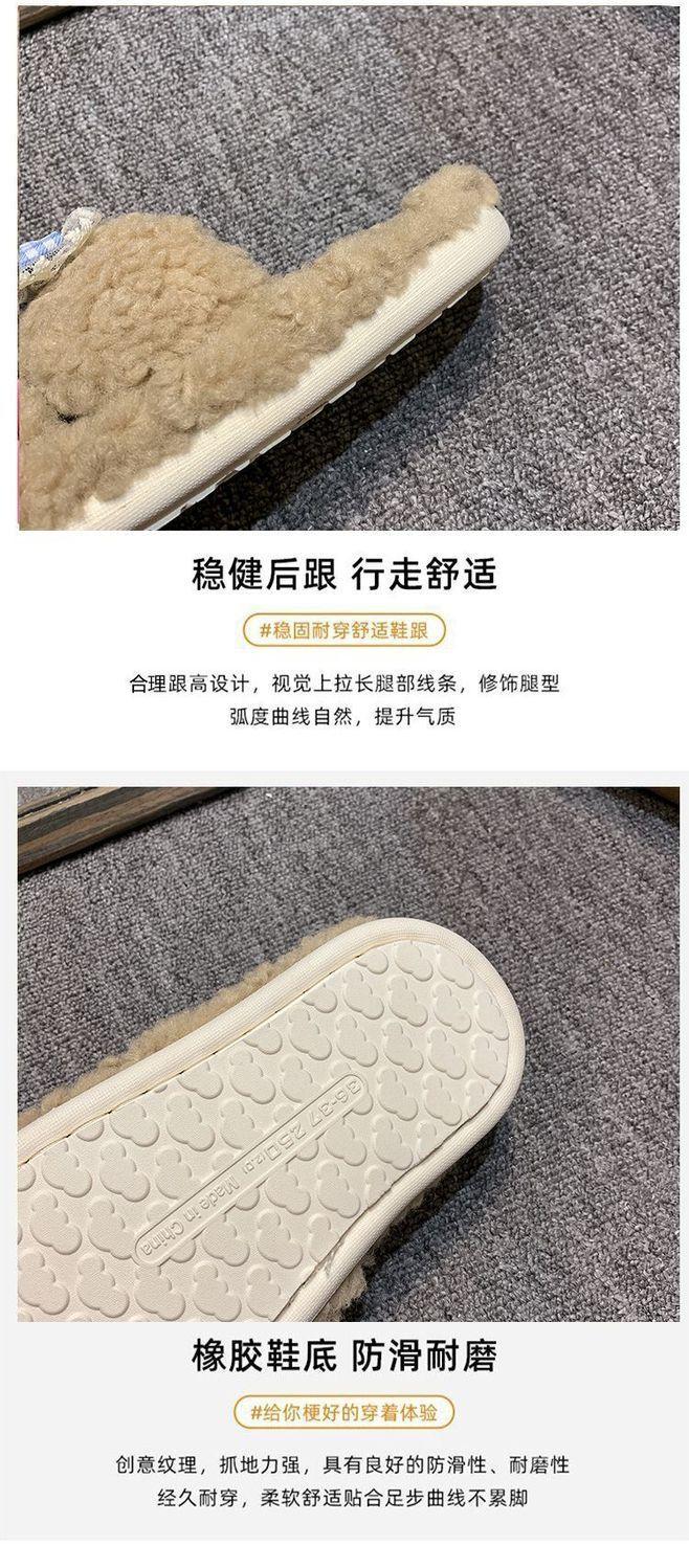 Zapatillas de Algodón de Moda Versátiles Cómodas Cálidas de Una Tira para Mujer 2025 Otoño/Invierno Nuevas Zapatillas de Dibujos Animados Lindas Peludas