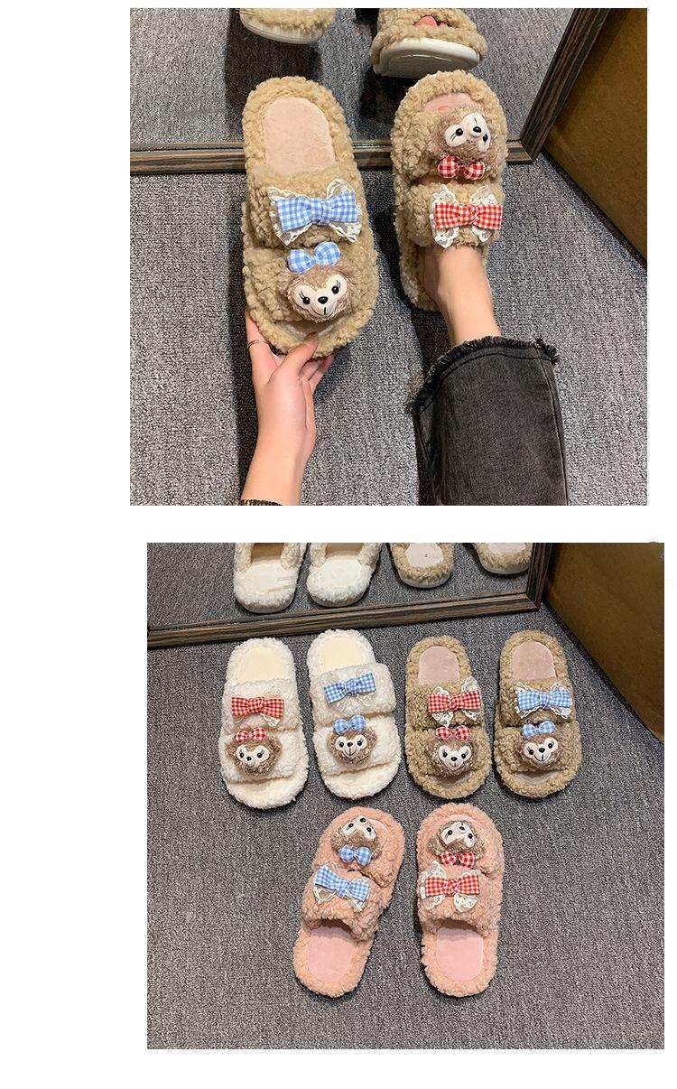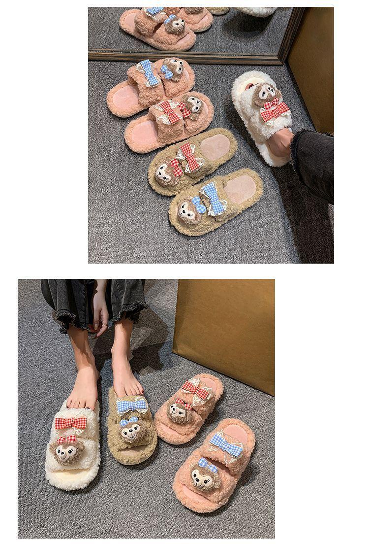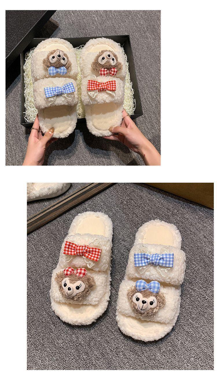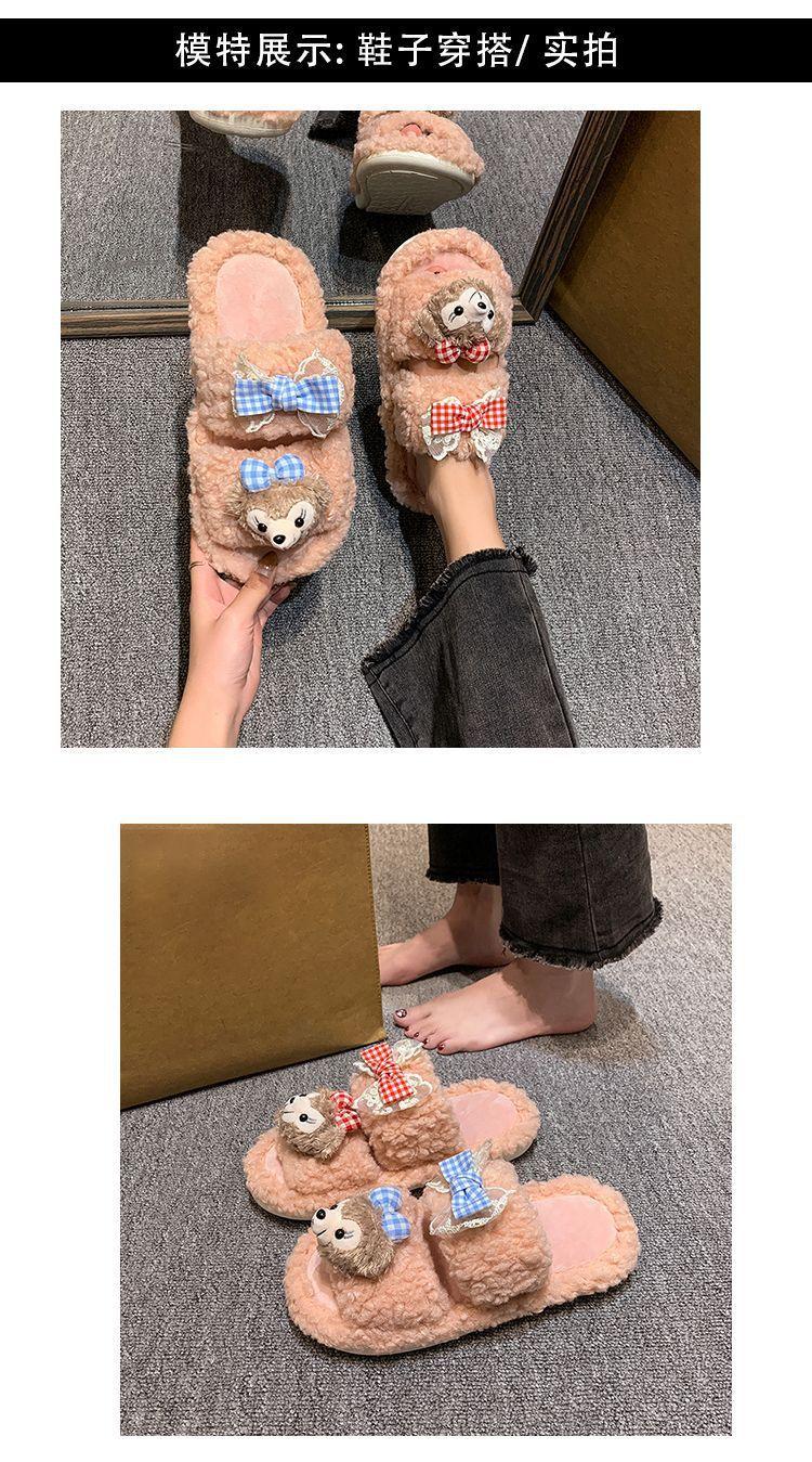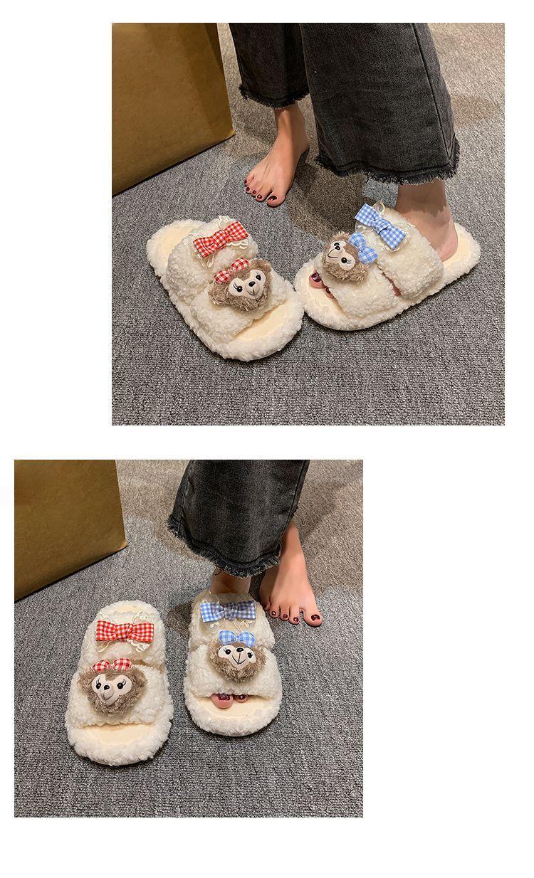 Zapatillas de Algodón de Moda Versátiles Cómodas Cálidas de Una Tira para Mujer 2025 Otoño/Invierno Nuevas Zapatillas de Dibujos Animados Lindas Peludas