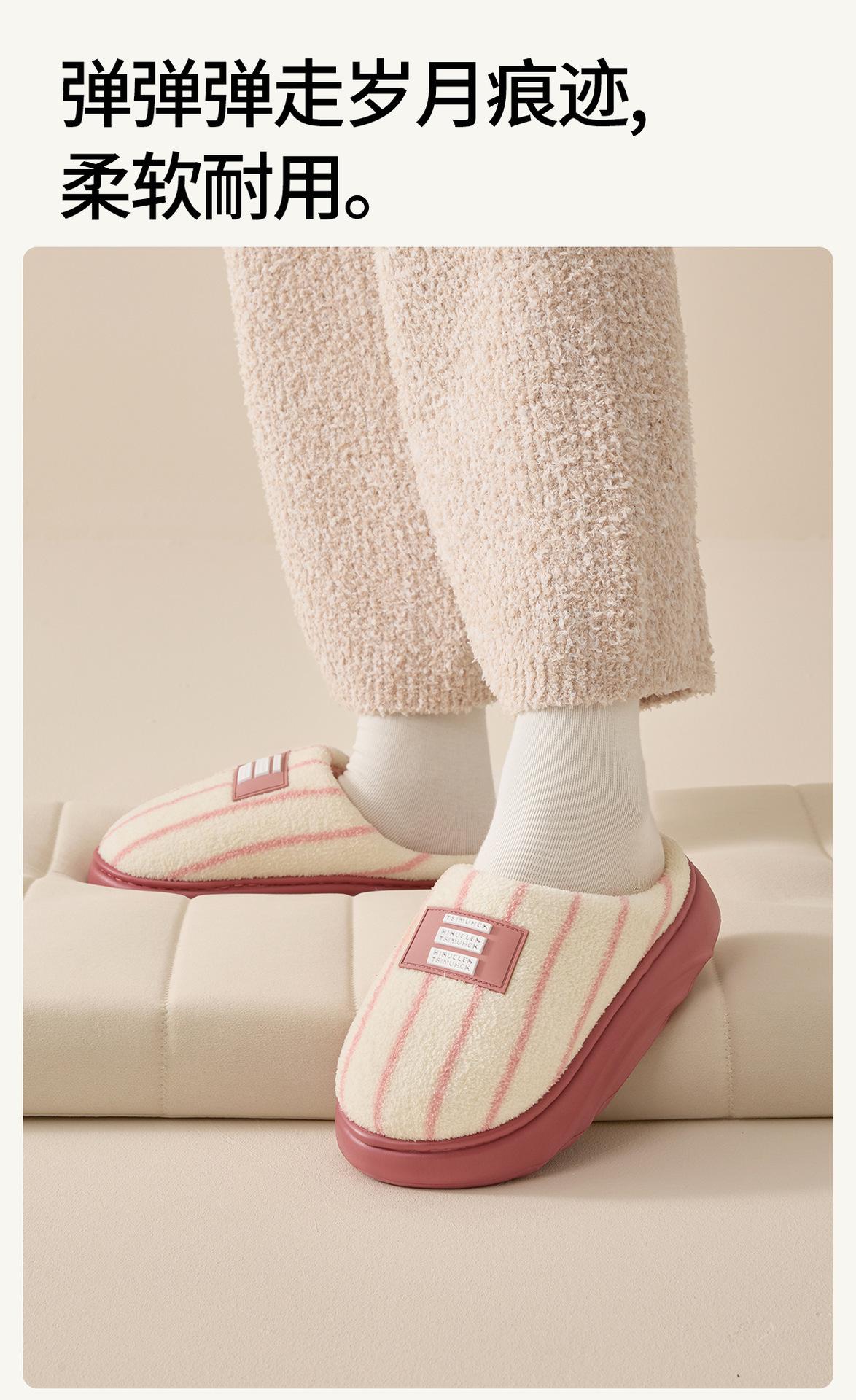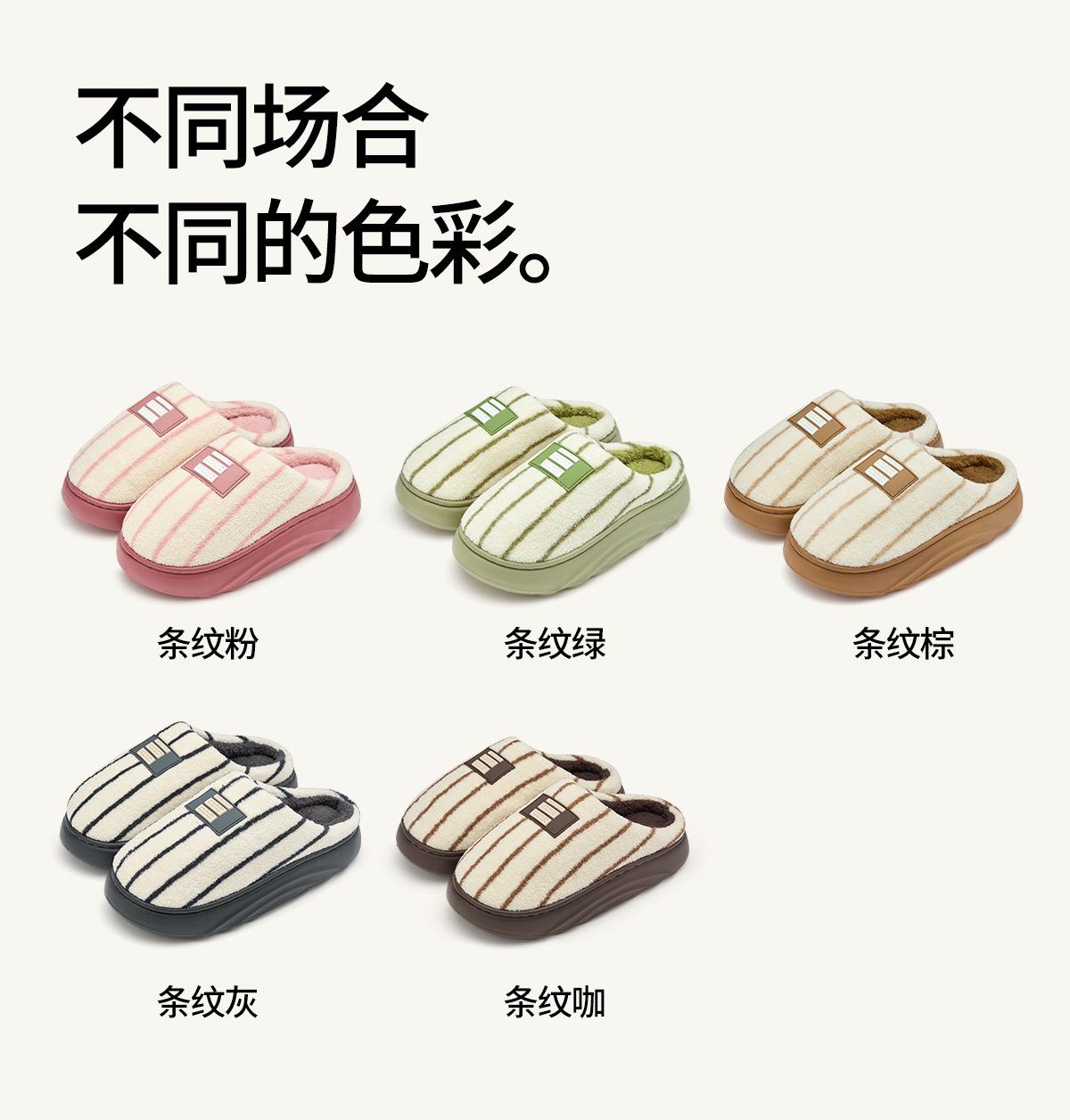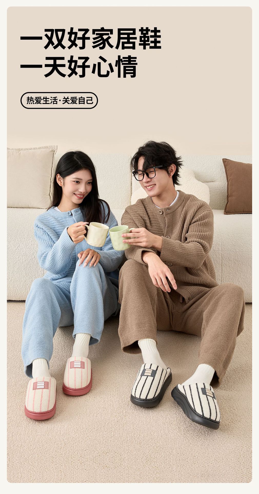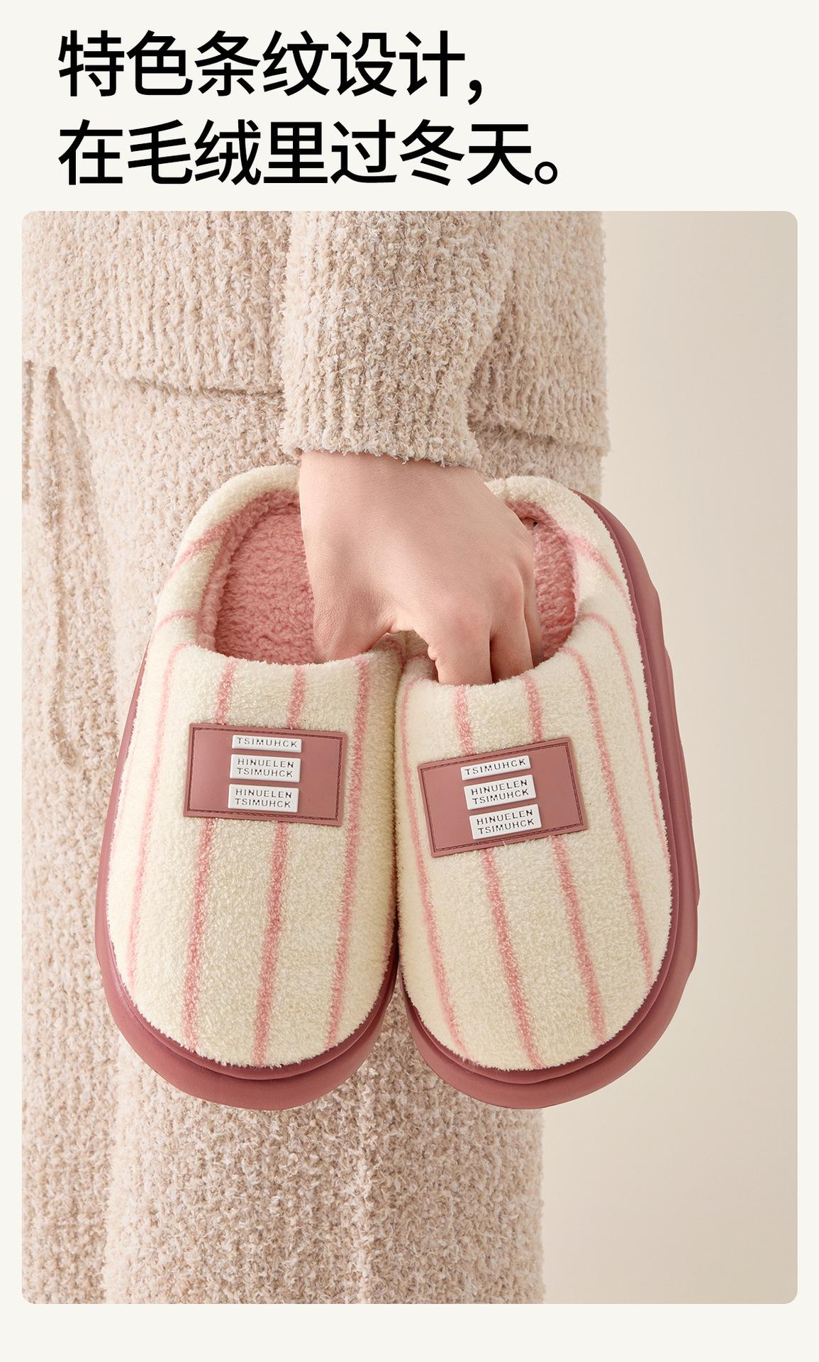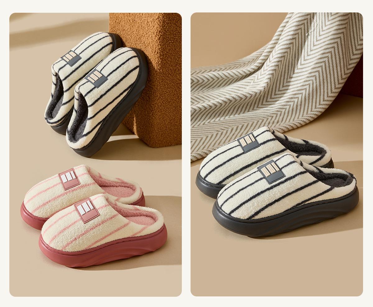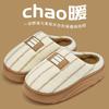 Pantuflas de algodón a rayas para hombre invierno nuevo pareja interior hogar antideslizantes suela gruesa cálidas felpa simple pantuflas de algodón para mujer invierno