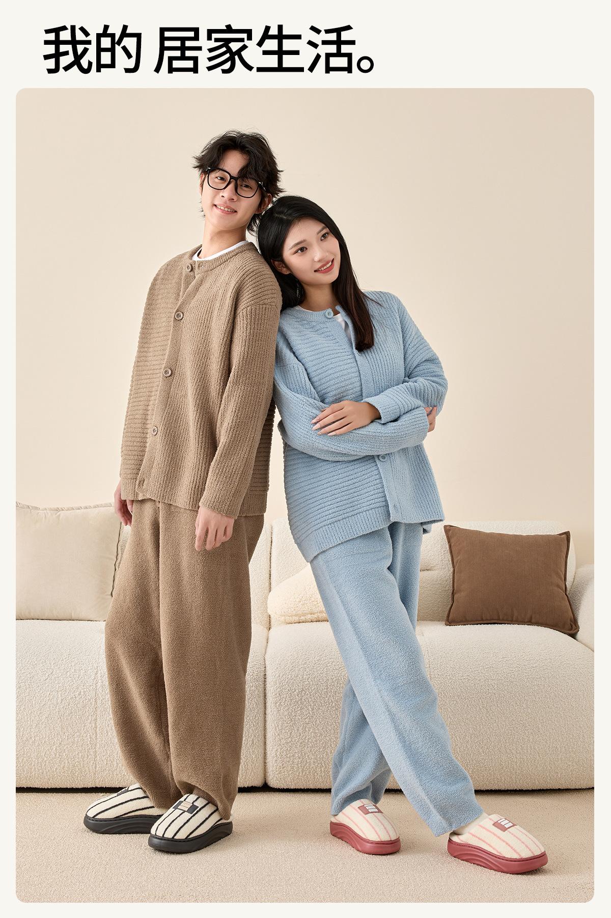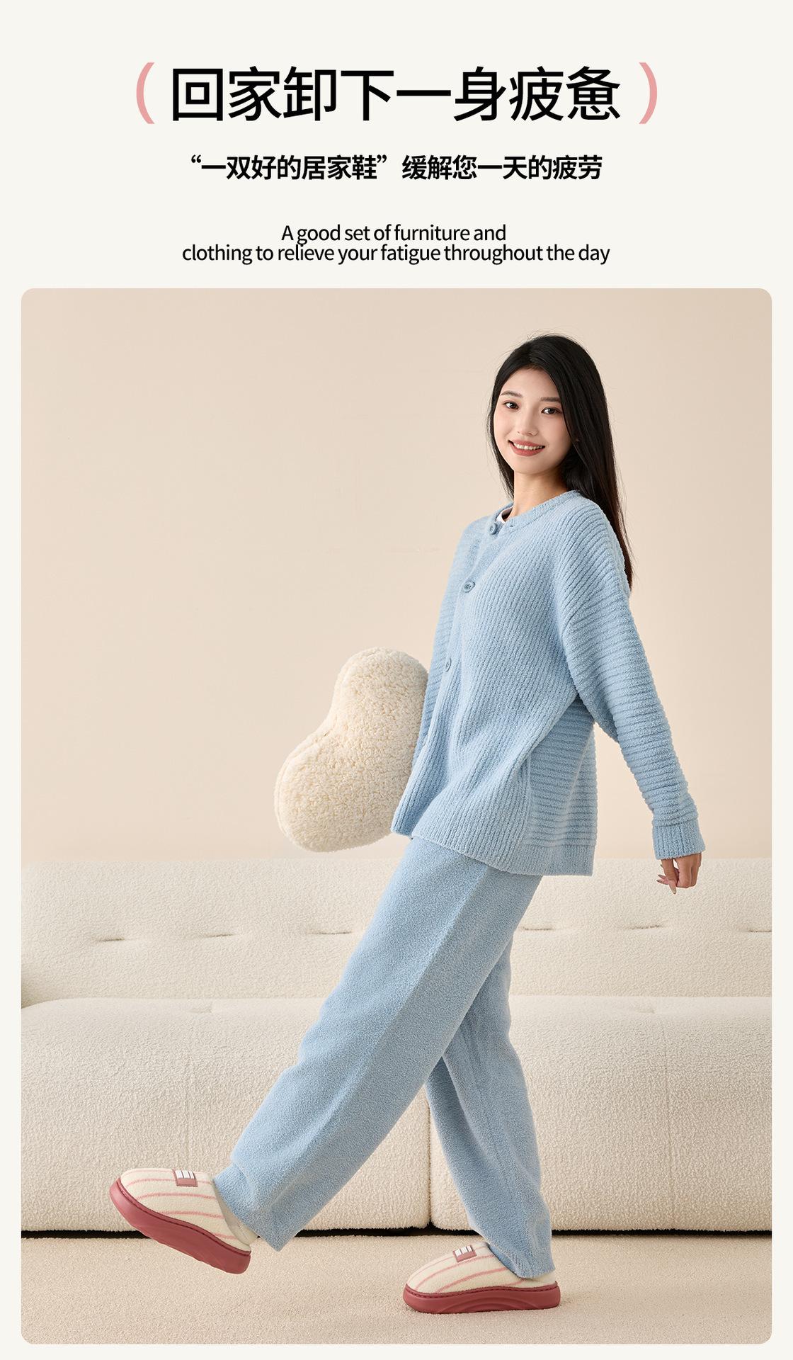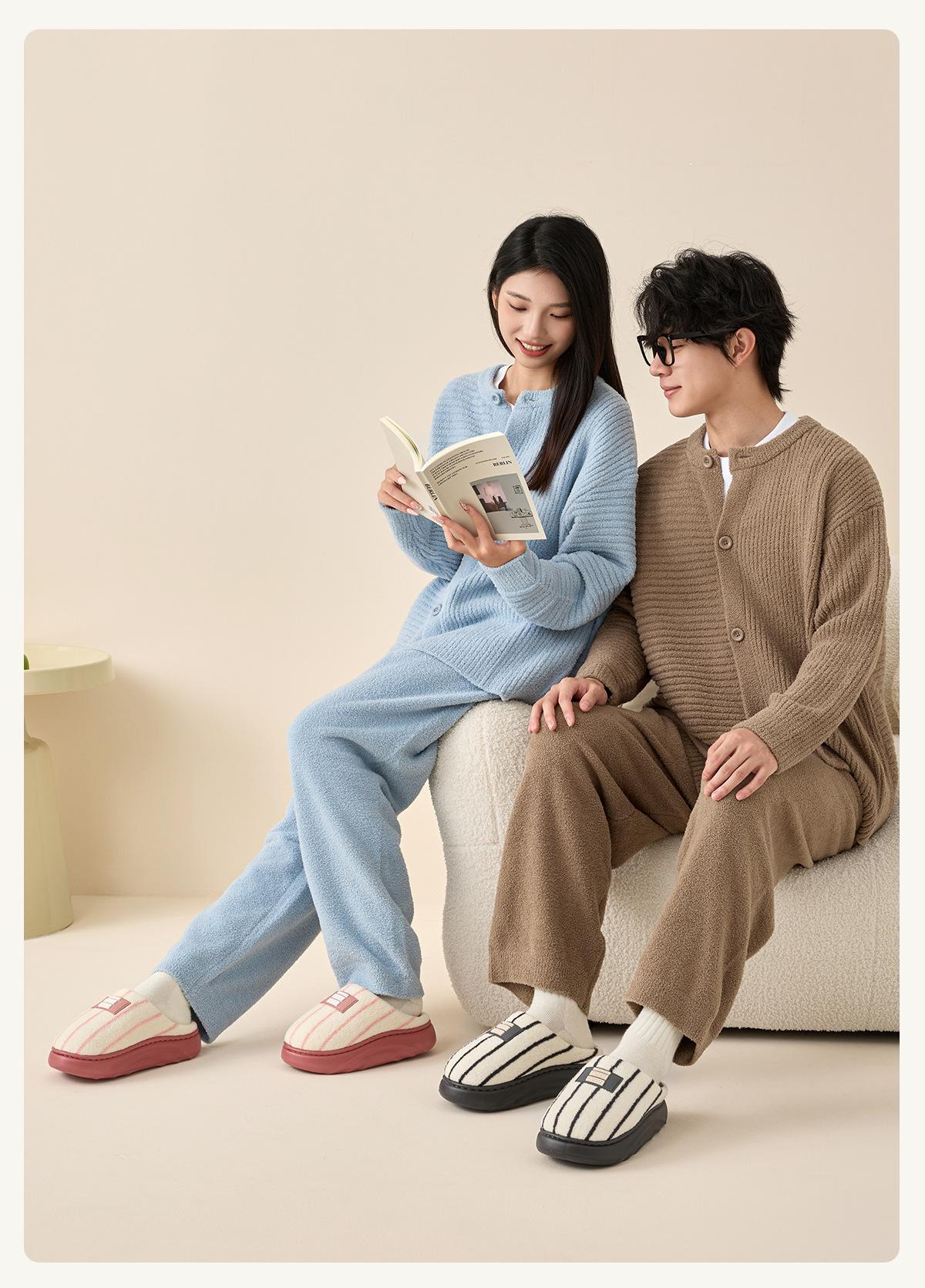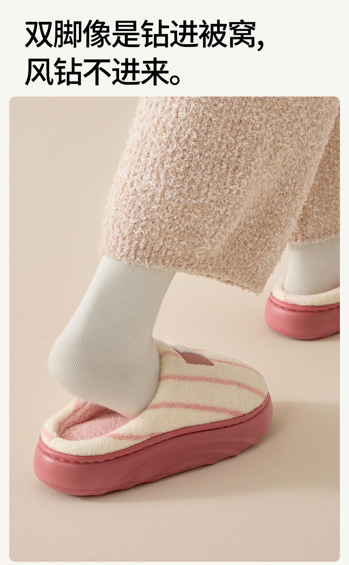 Pantuflas de algodón a rayas para hombre invierno nuevo pareja interior hogar antideslizantes suela gruesa cálidas felpa simple pantuflas de algodón para mujer invierno